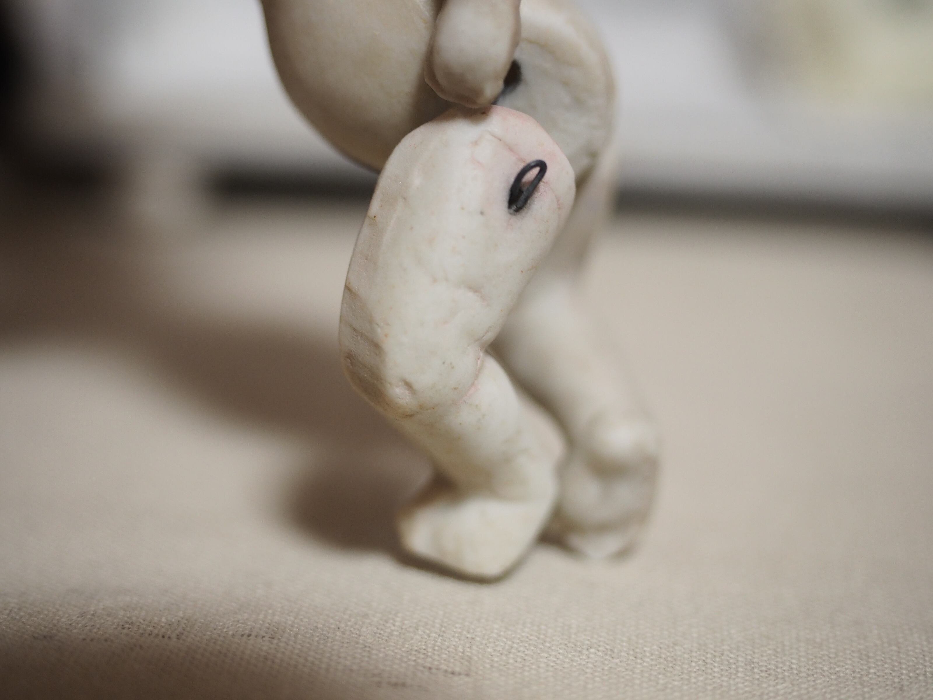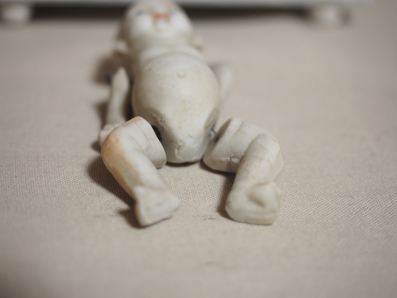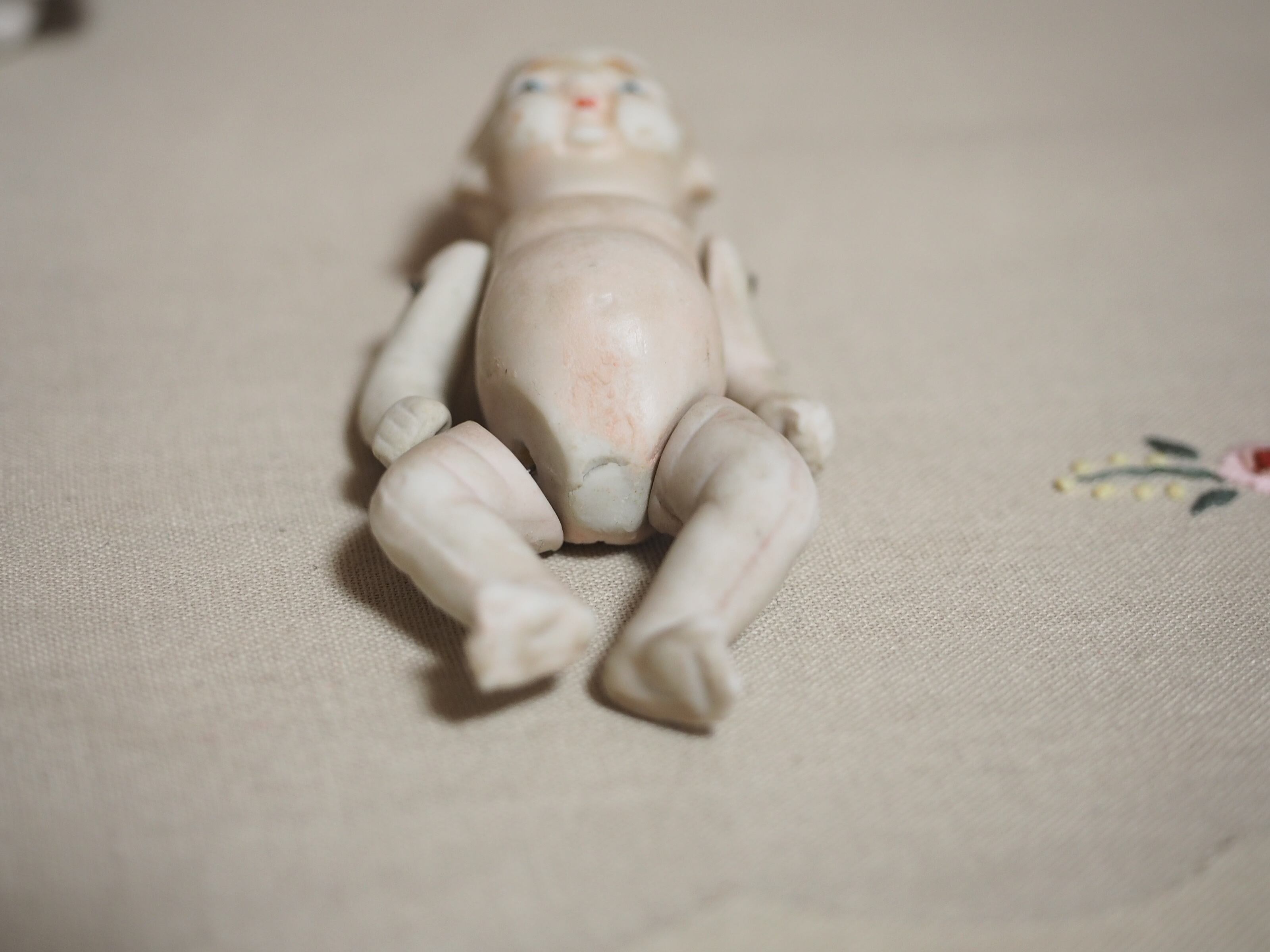 おへそがかわいいボディにぎゅっと握った手、手のひらや足の裏のふくらみも成形された細やかな作りです。