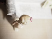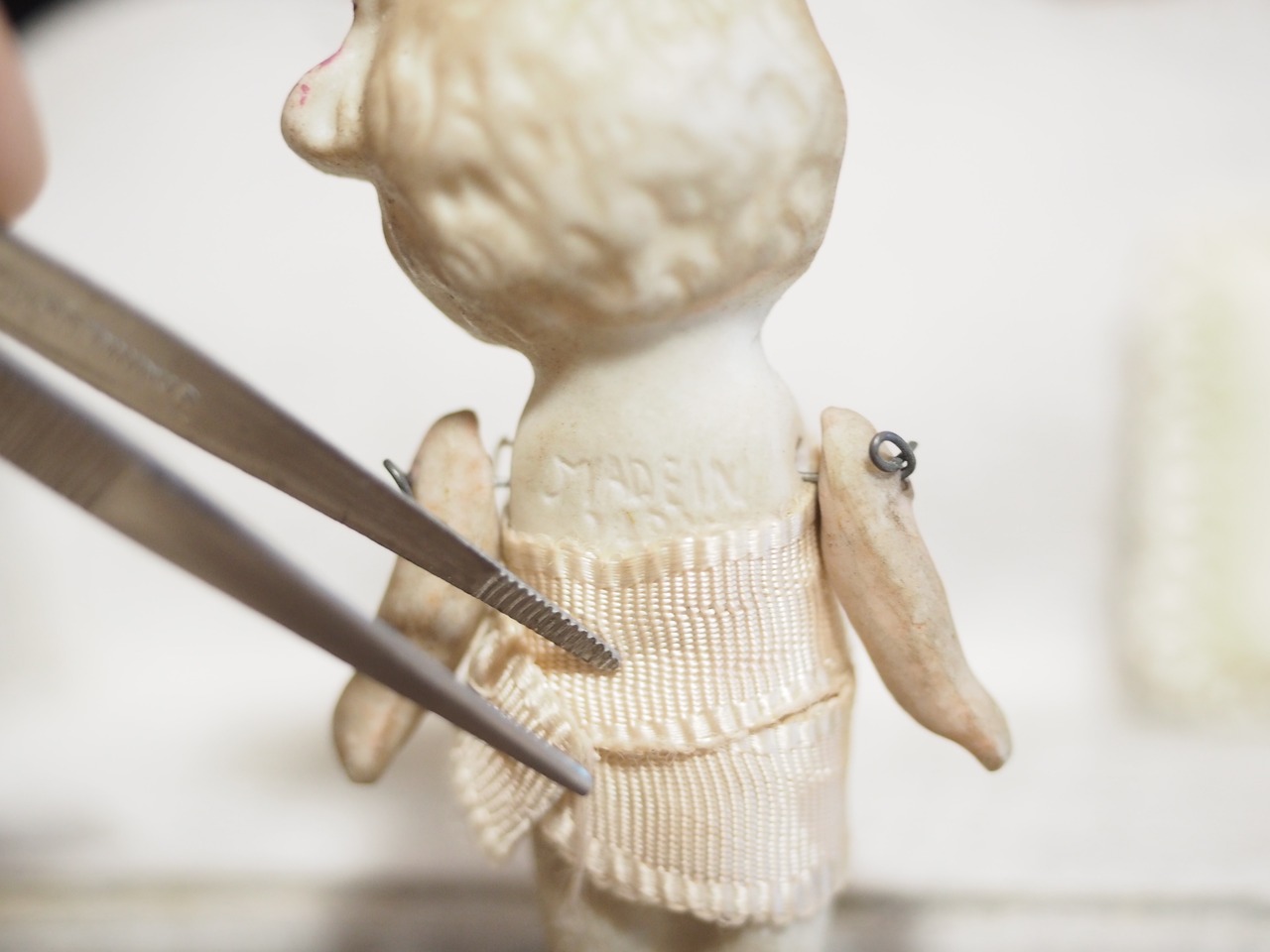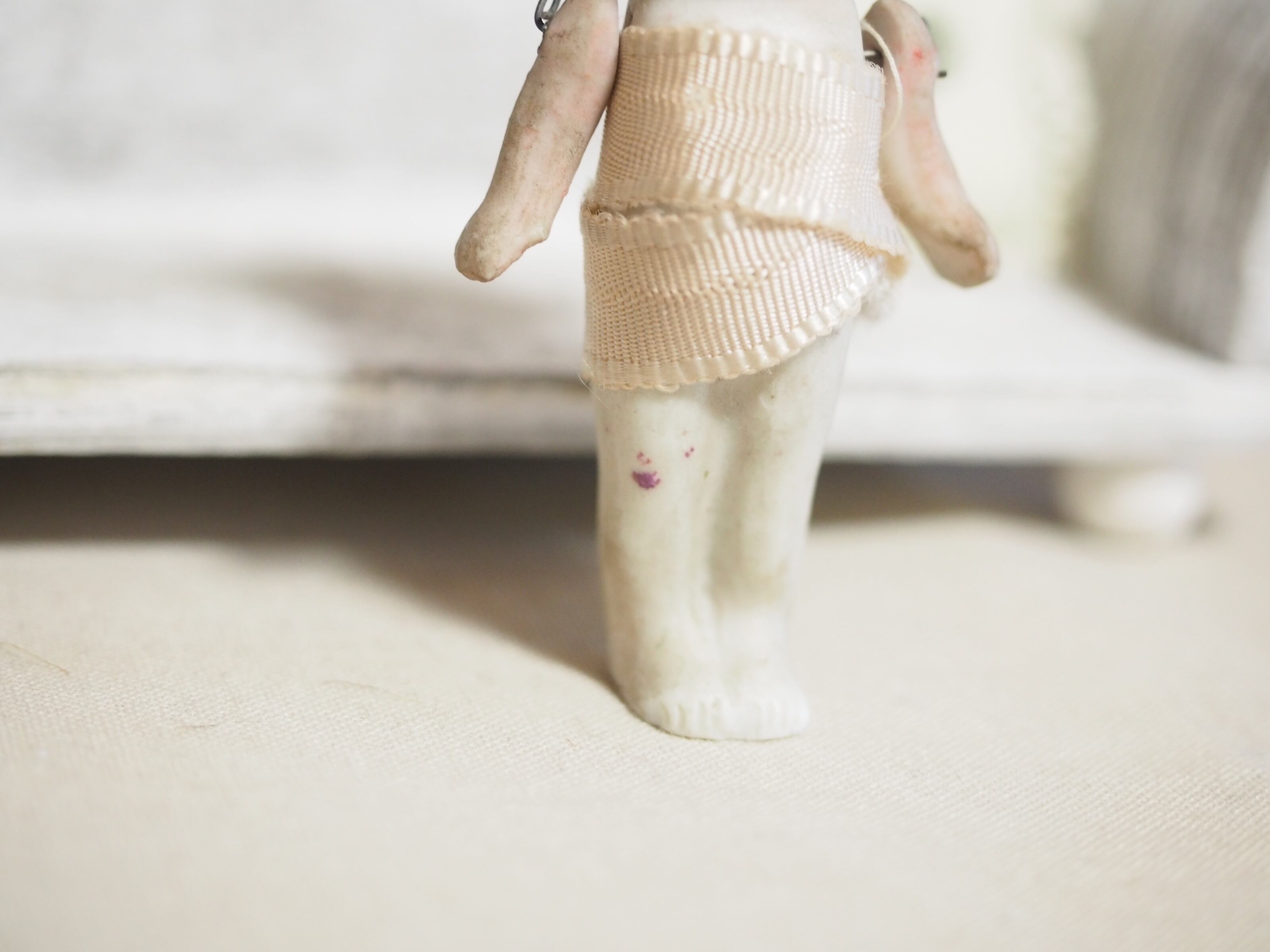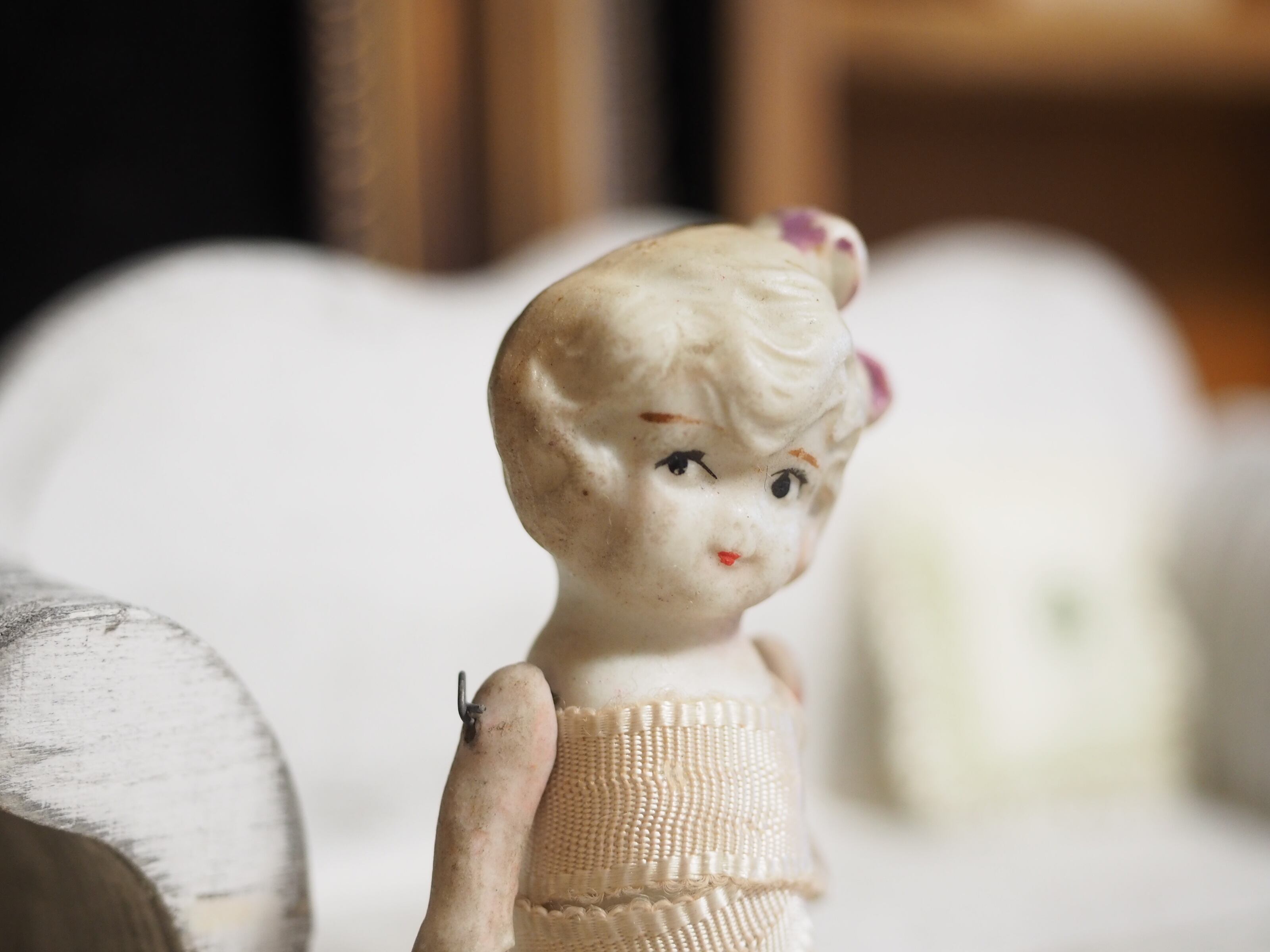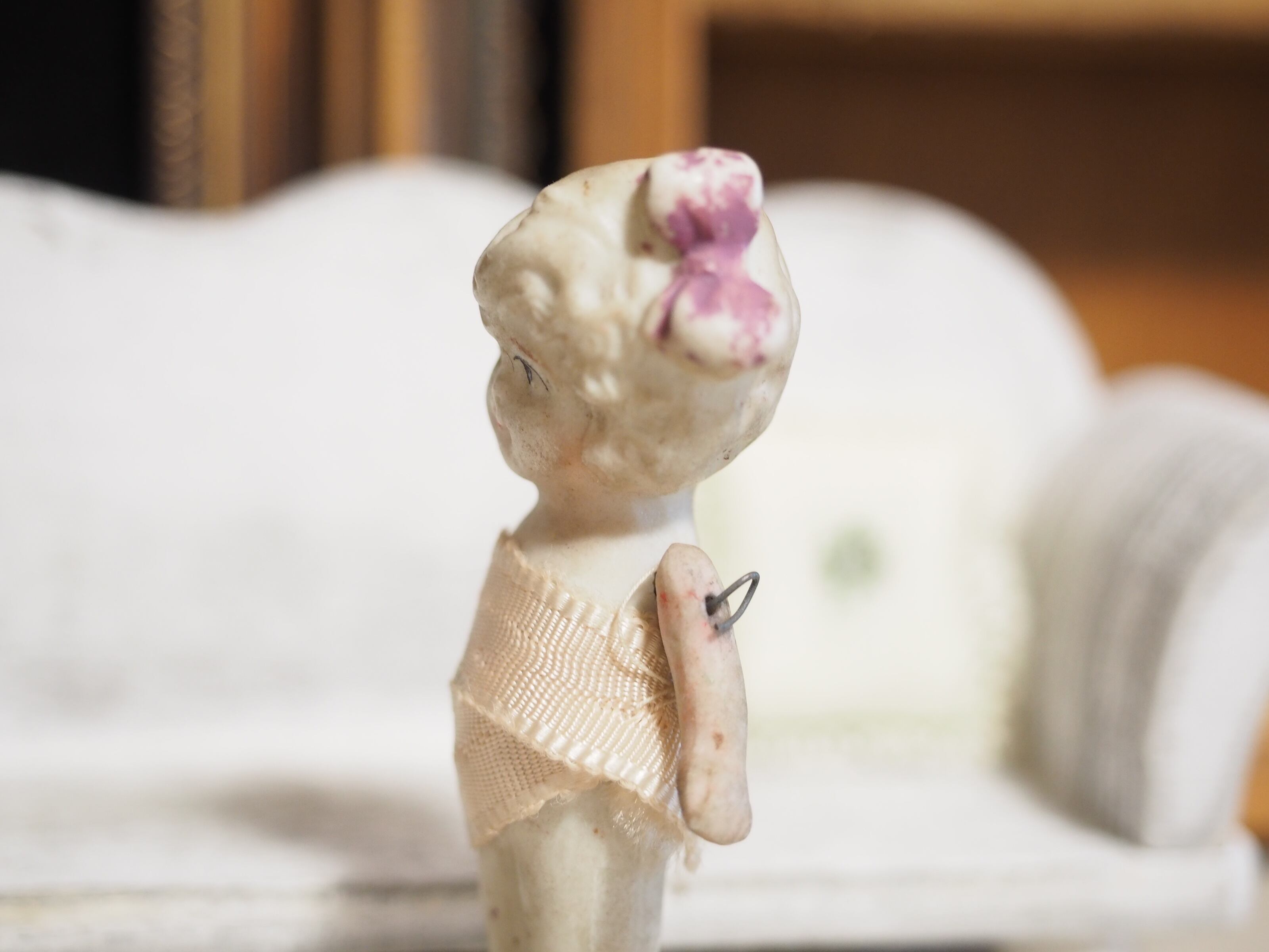 紫リボン・ピンクのリボンを巻いたビスクドール ジャパンビスク