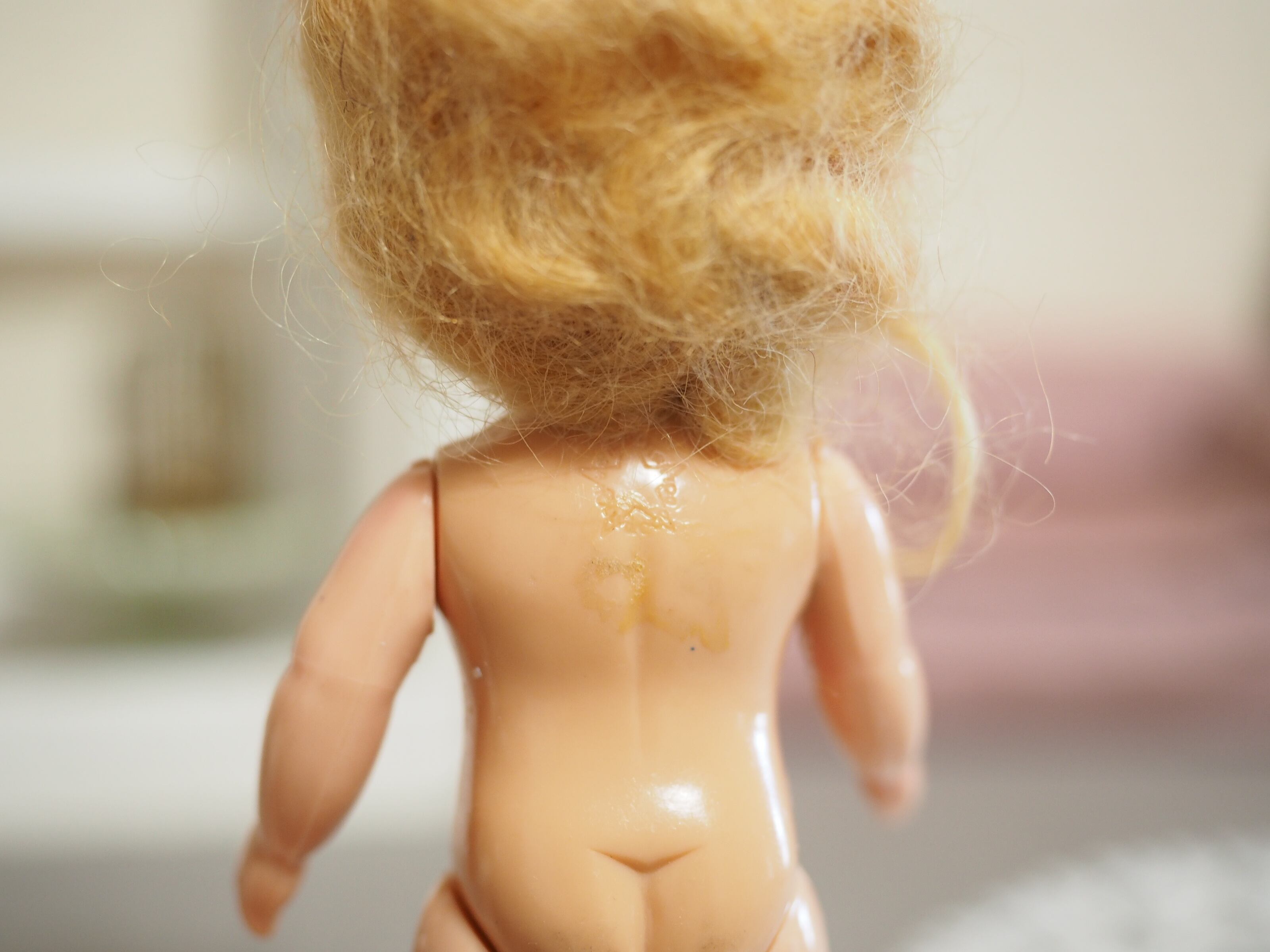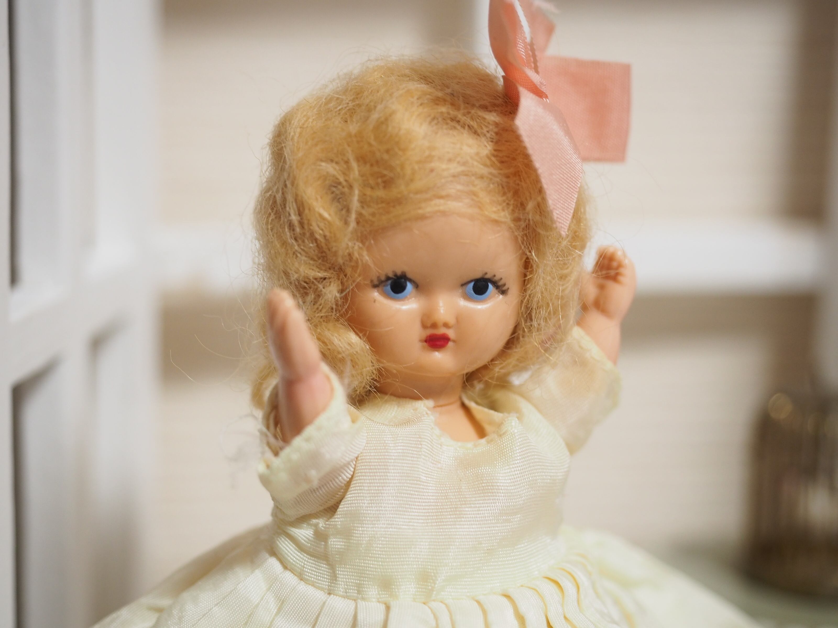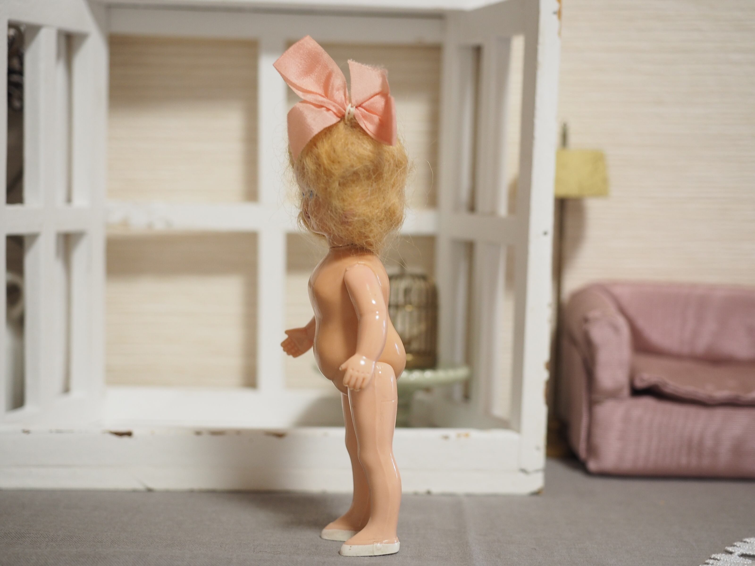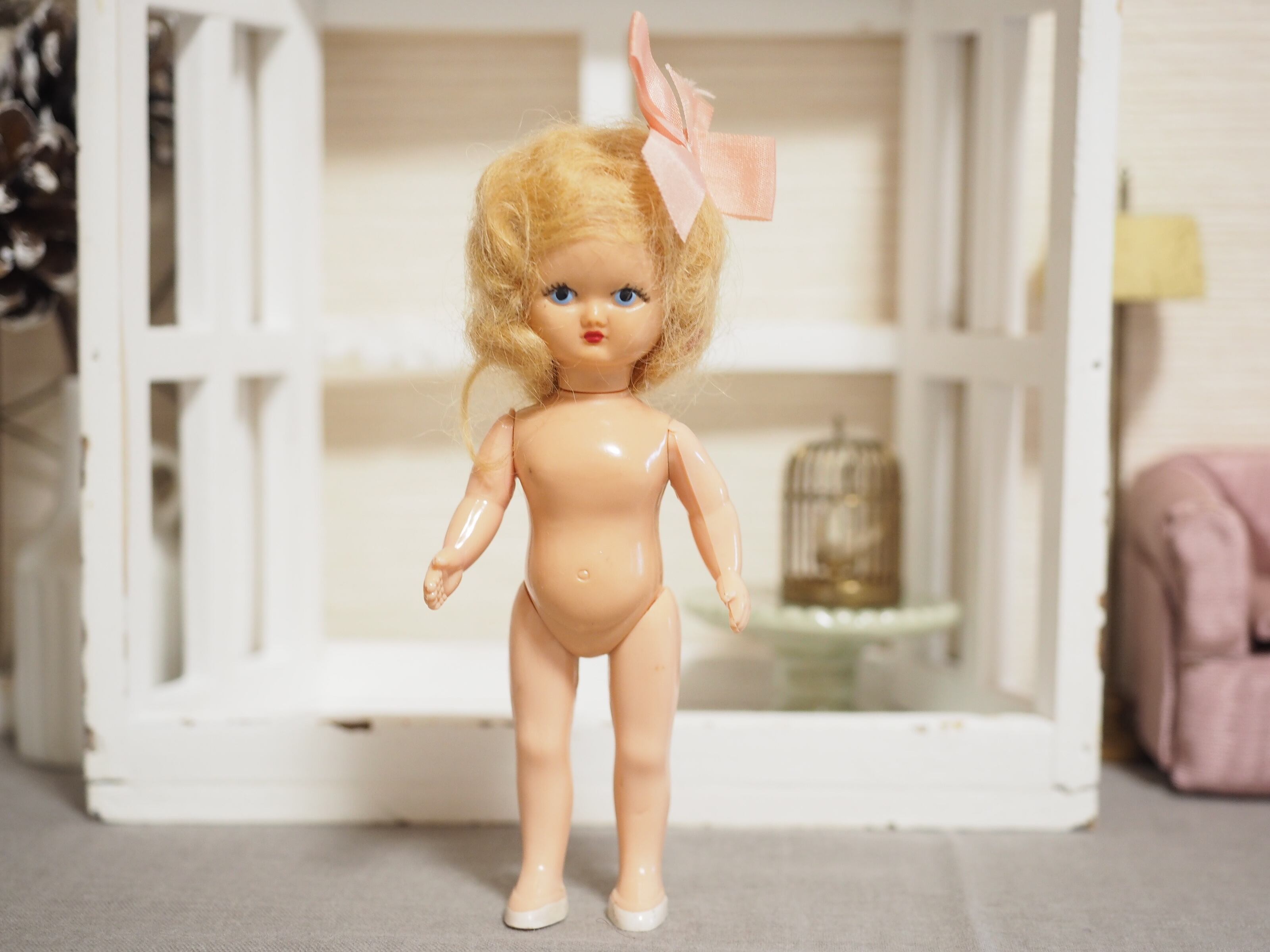 印象的な目にきゅっとすぼまった口元、とてもキュートなプラスチックドールです。