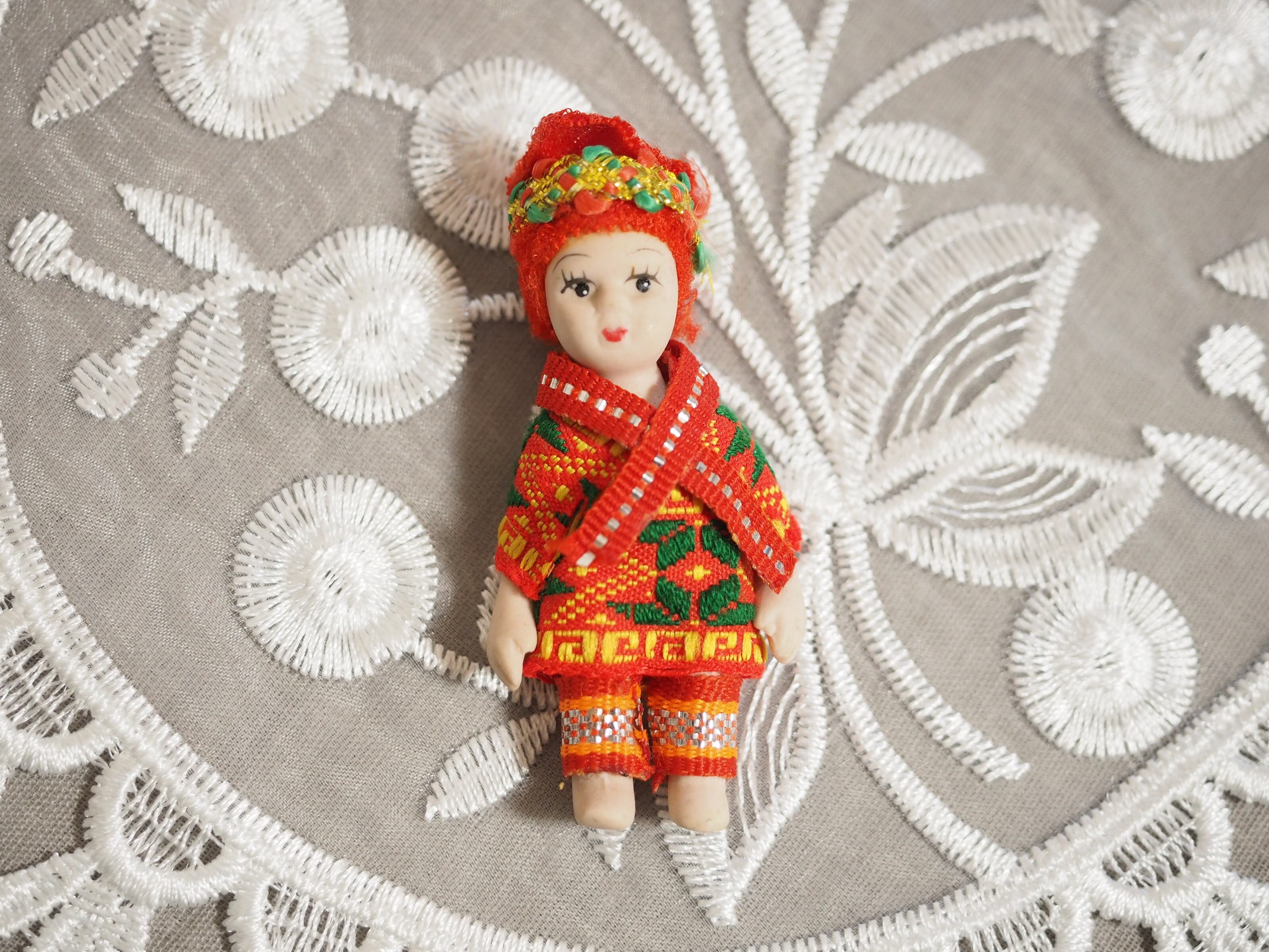 ぐるぐると刺繍リボンを巻いた衣装で、カラフルでかわいいです。