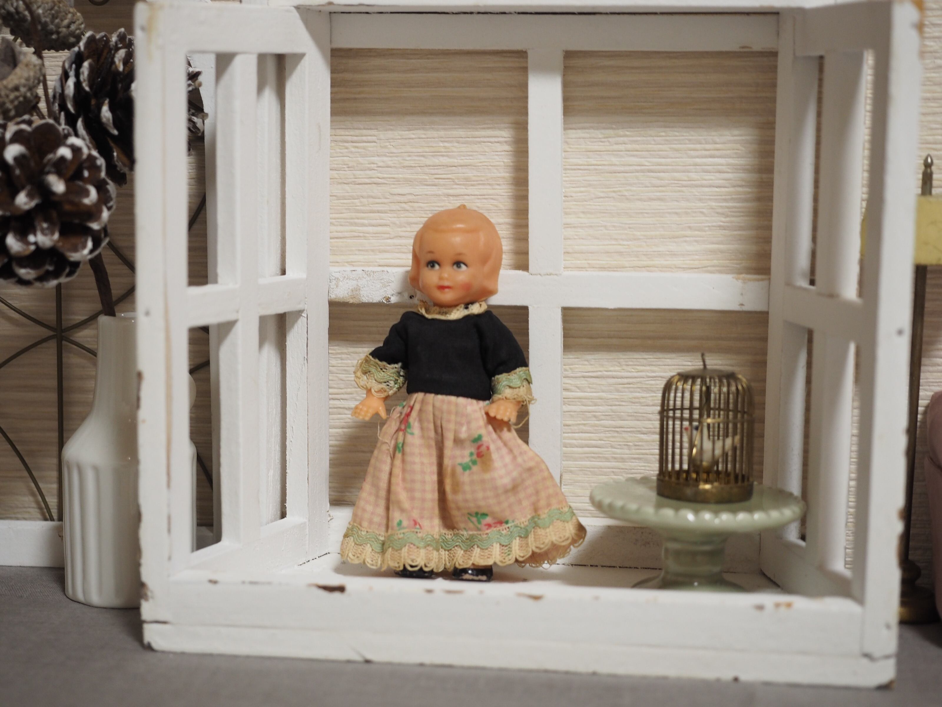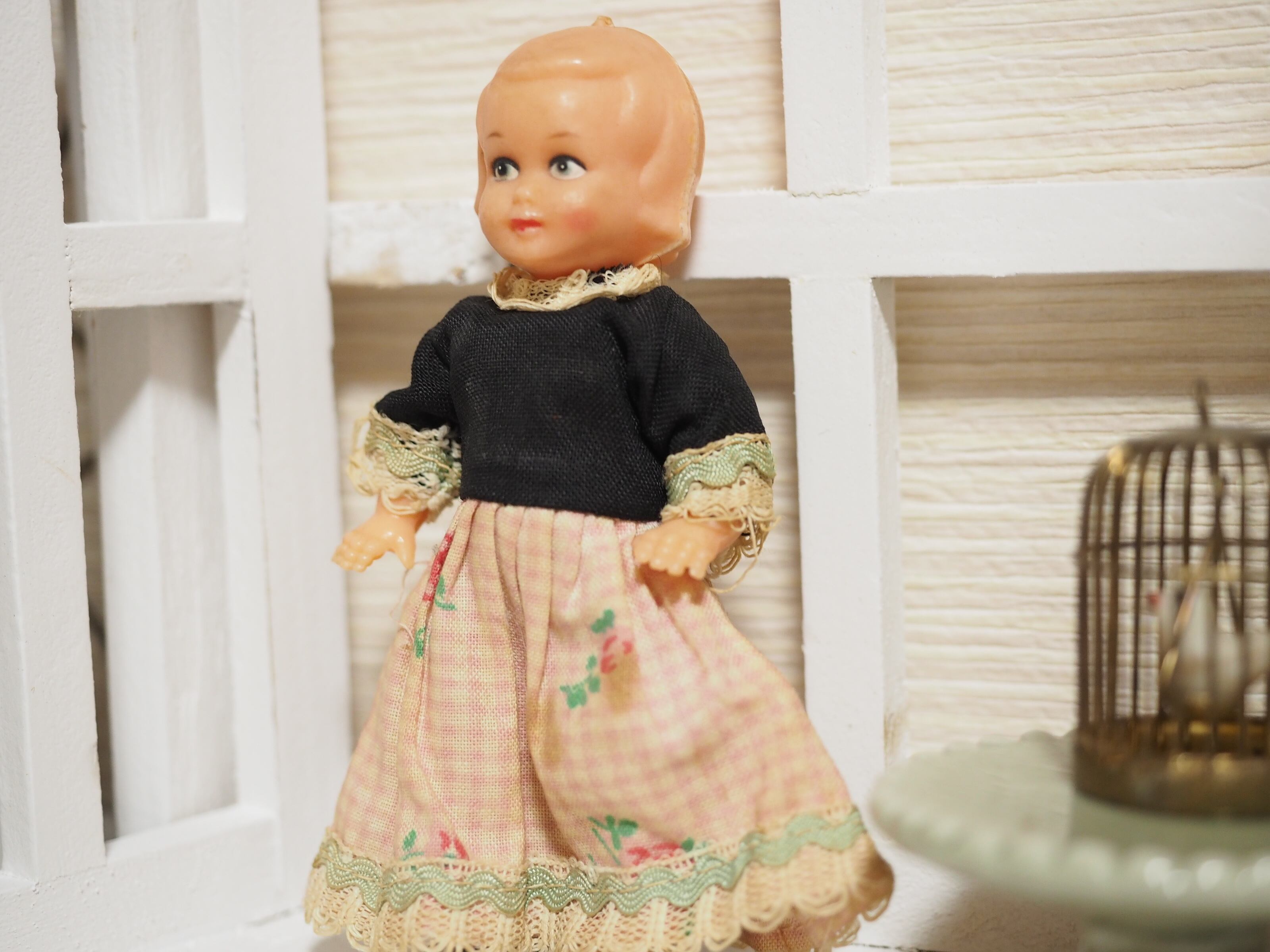 ギンガム花柄ワンピース プラスチックドール