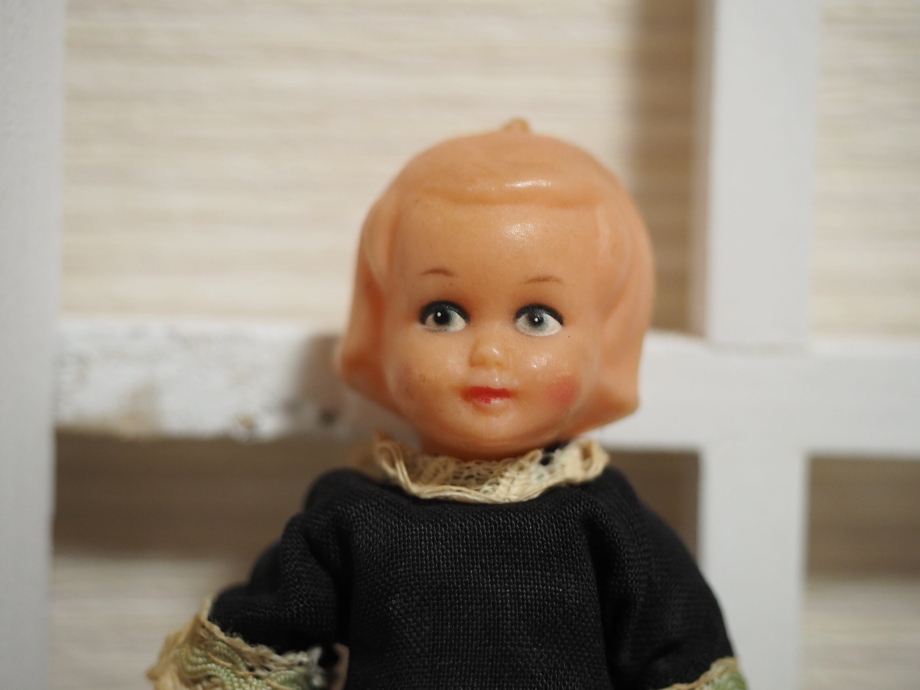 ふんわりしたヘアスタイルとペイントのプラスチックドールです。