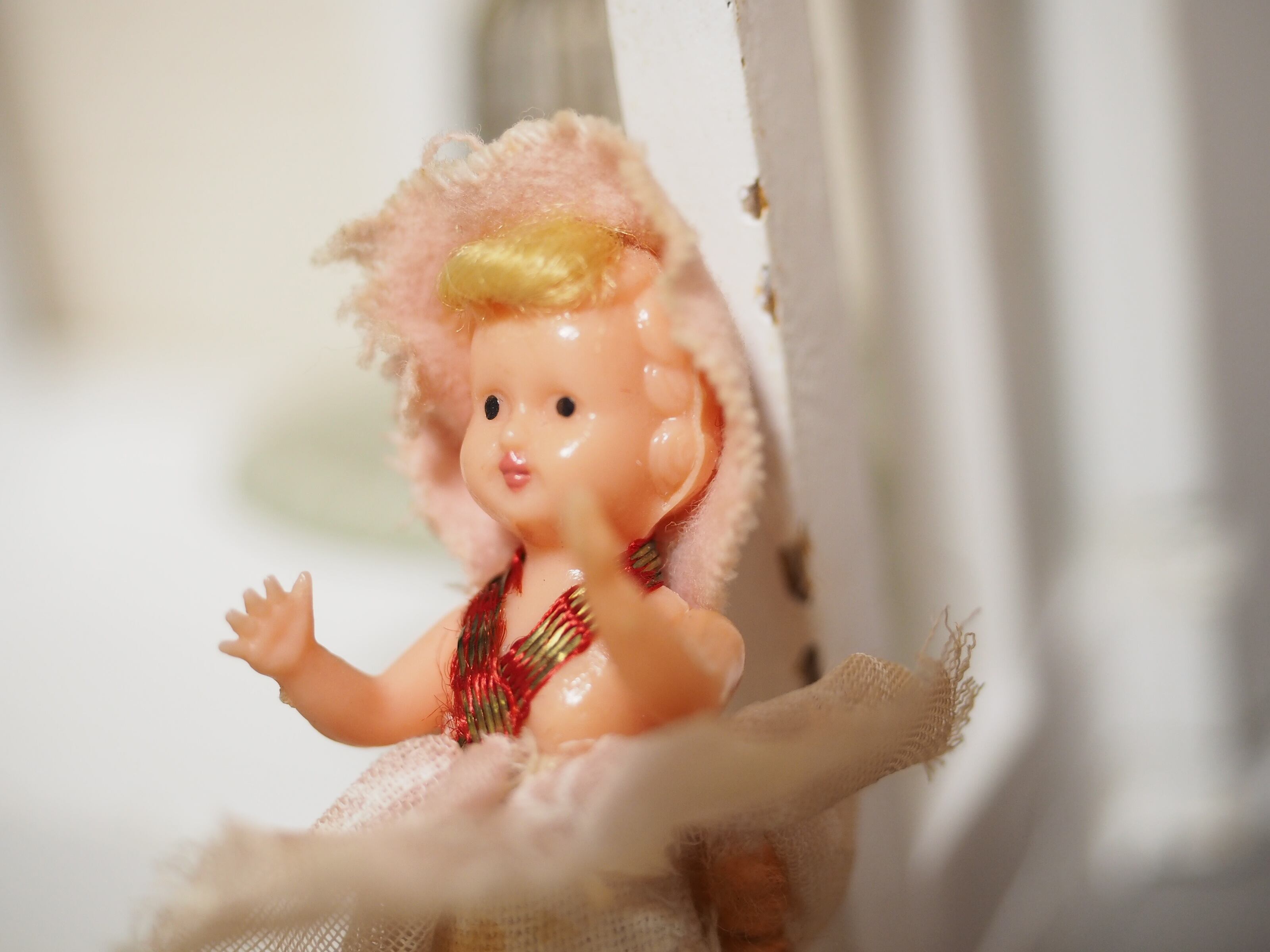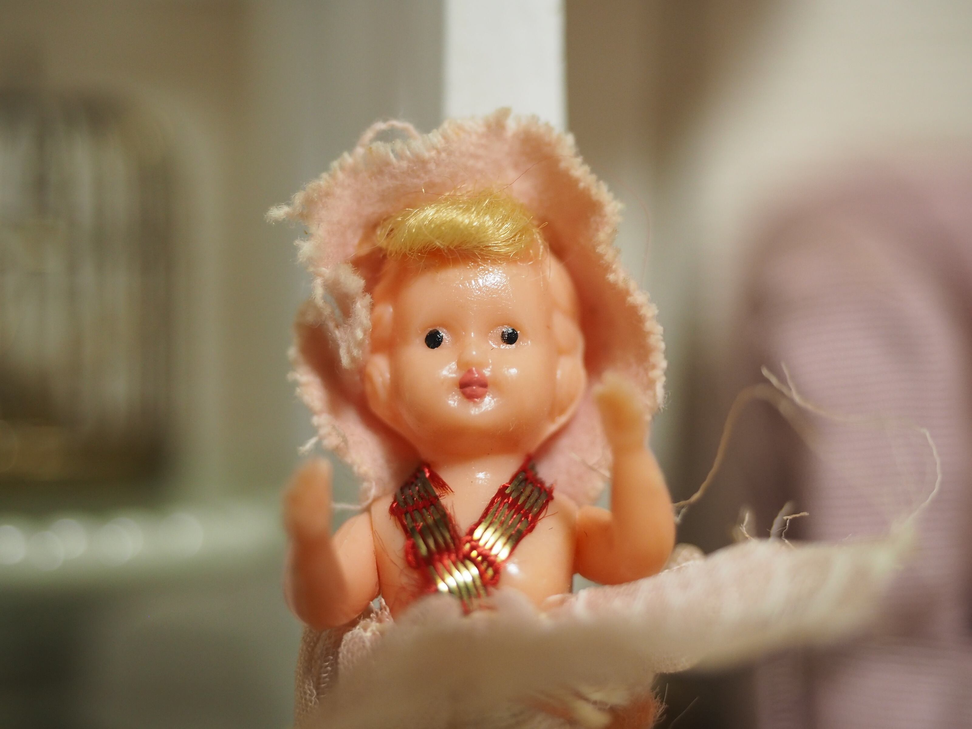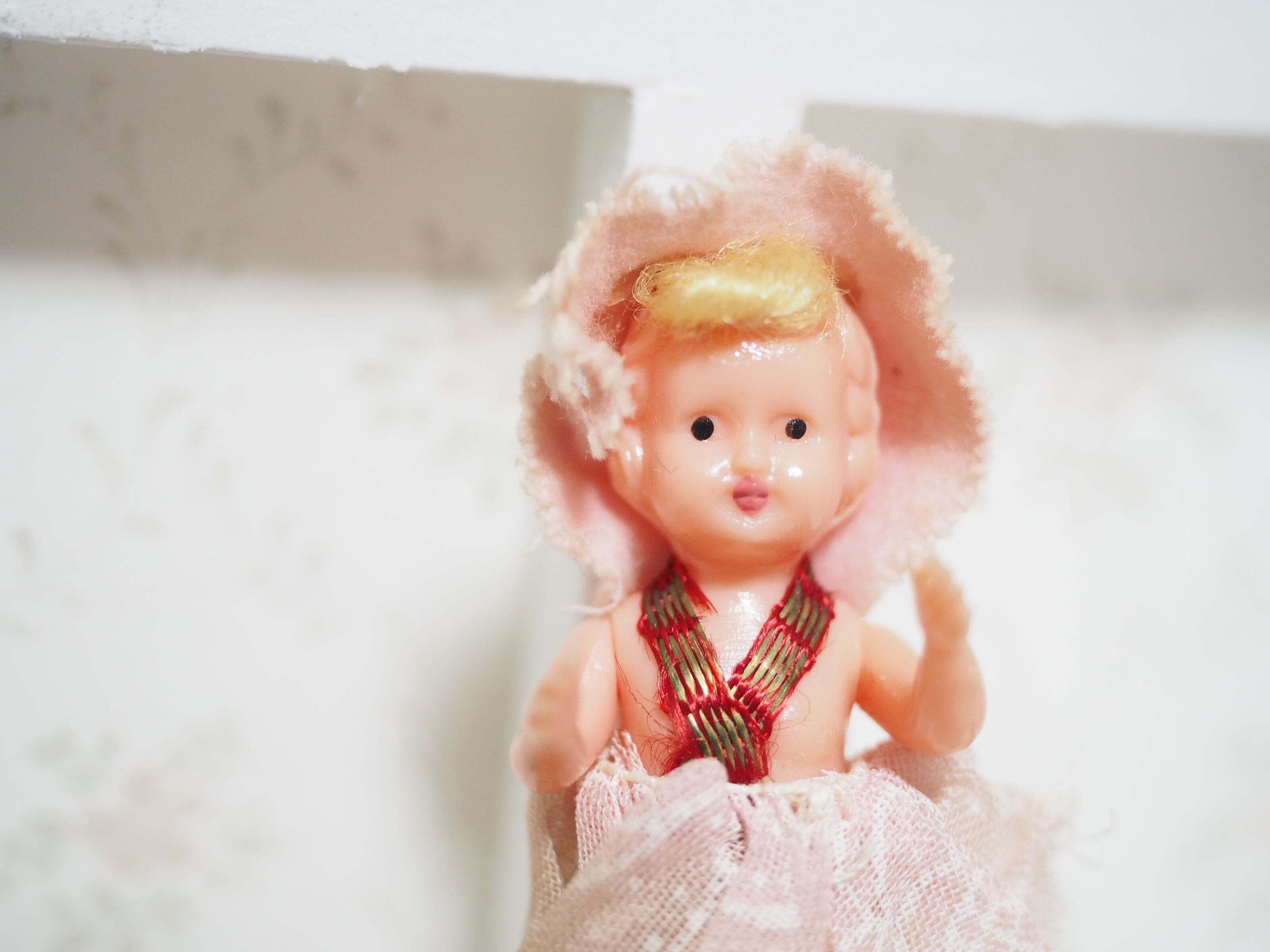 とても小さいですがぱっとその場が明るくなる雰囲気のお人形です。
