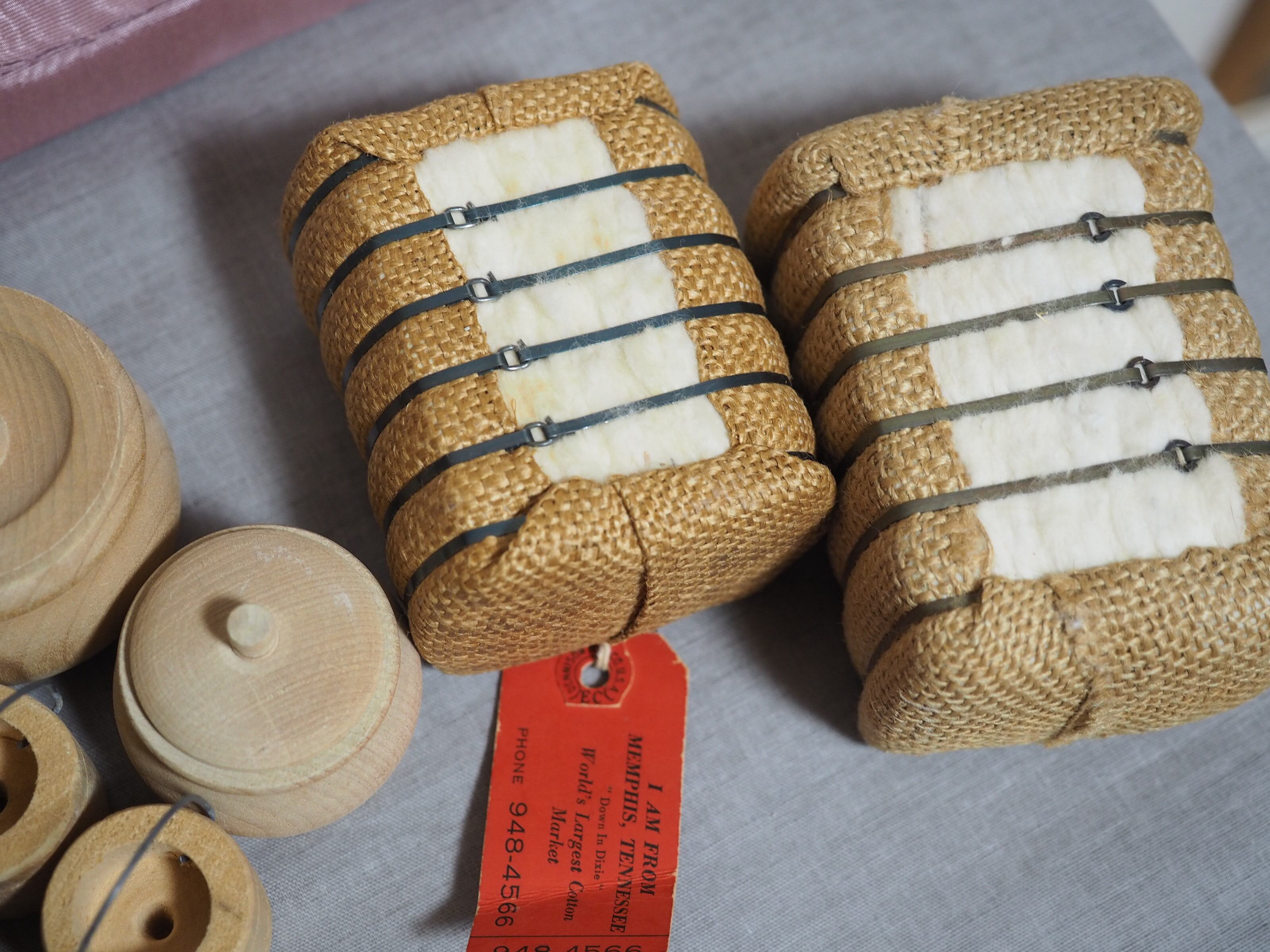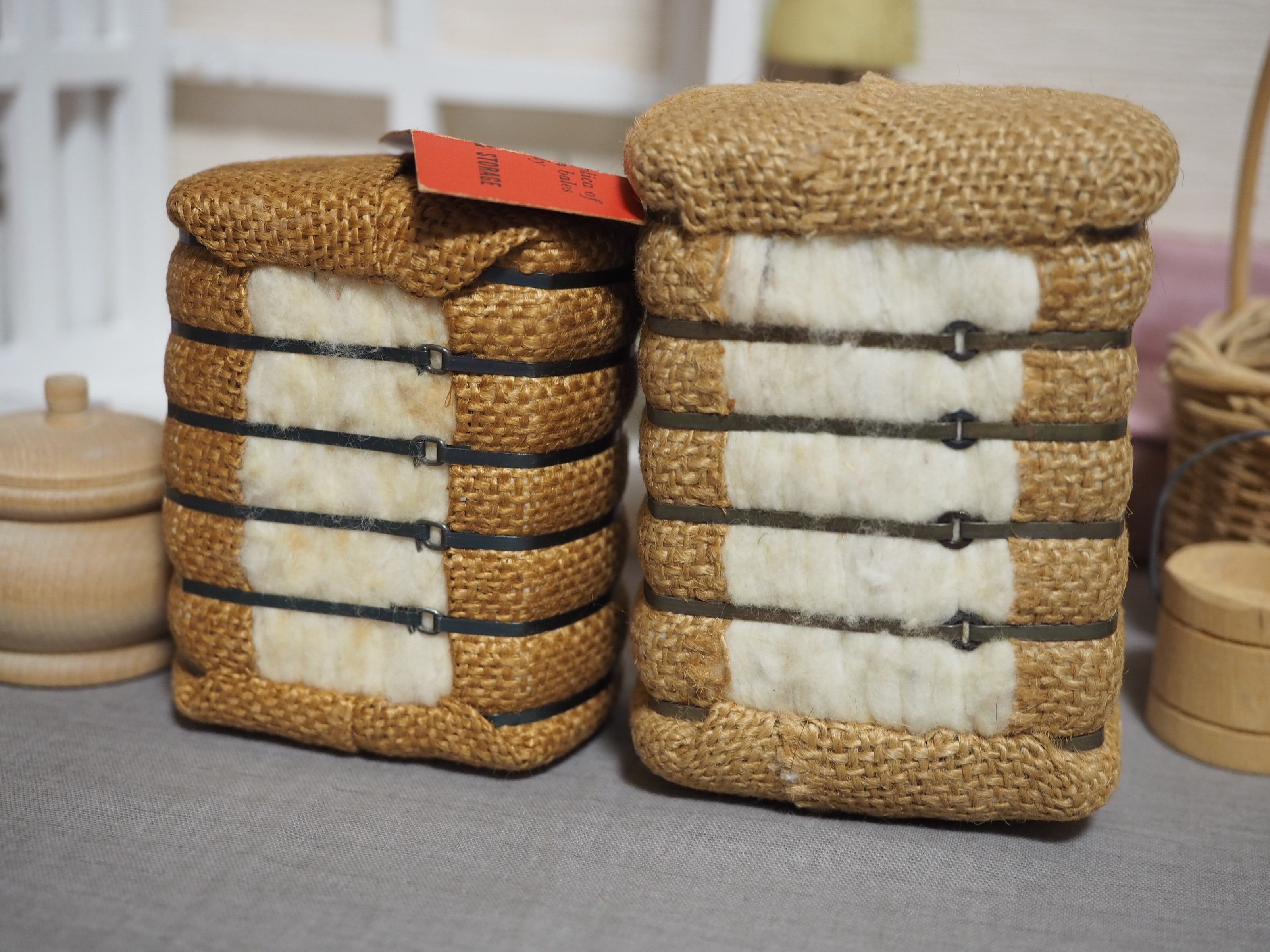wool bale=圧縮されたウールのパック(俵)、やや大き目の本格的ミニチュアセットです!(シンディちゃんはドールとのサイズ比較用です)
