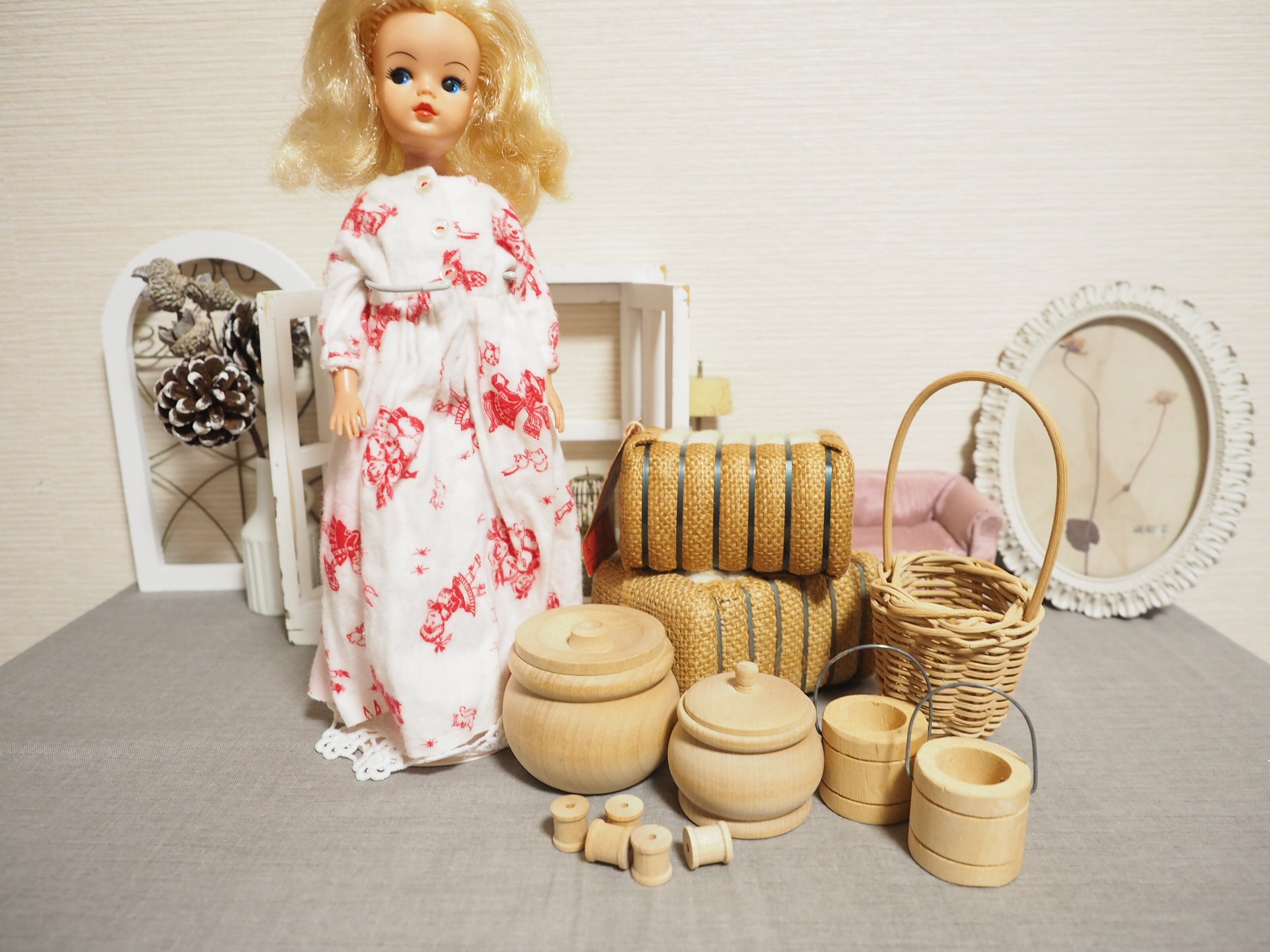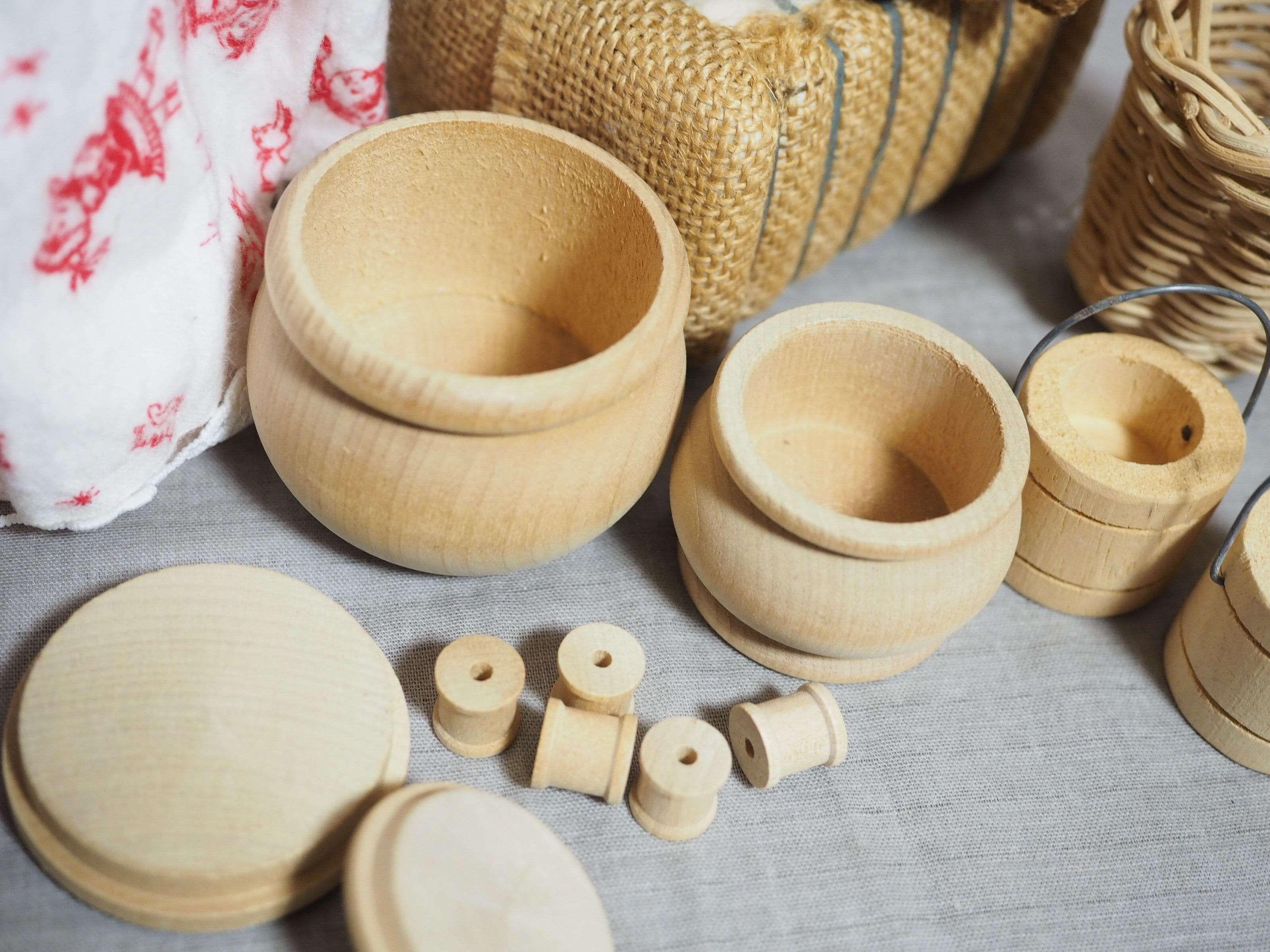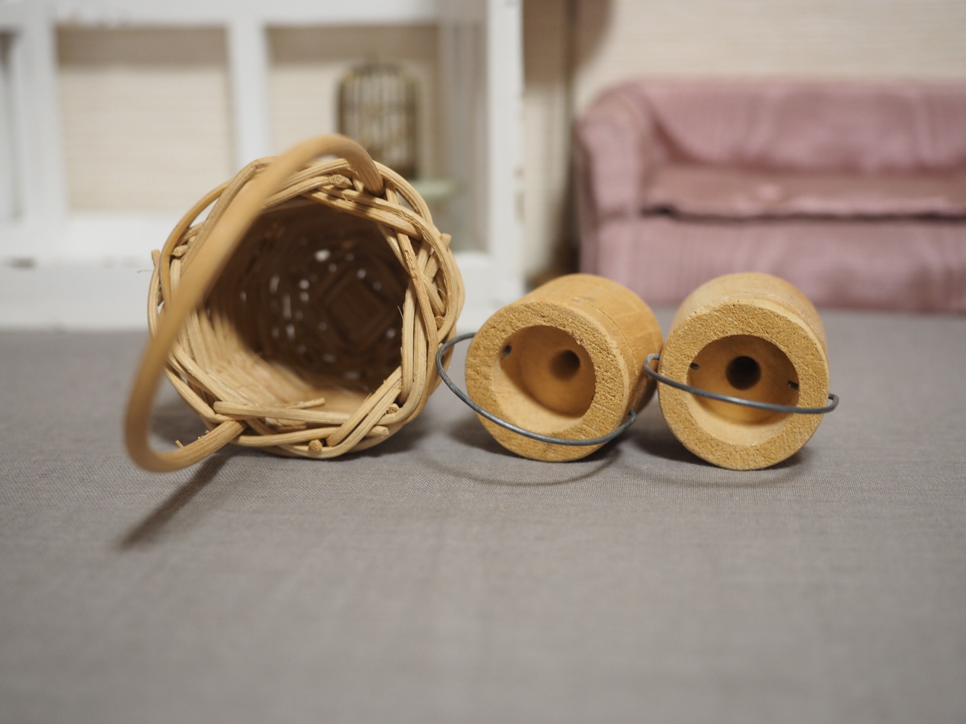 wool bales・かご・桶等 やや大き目サイズミニチュアセット