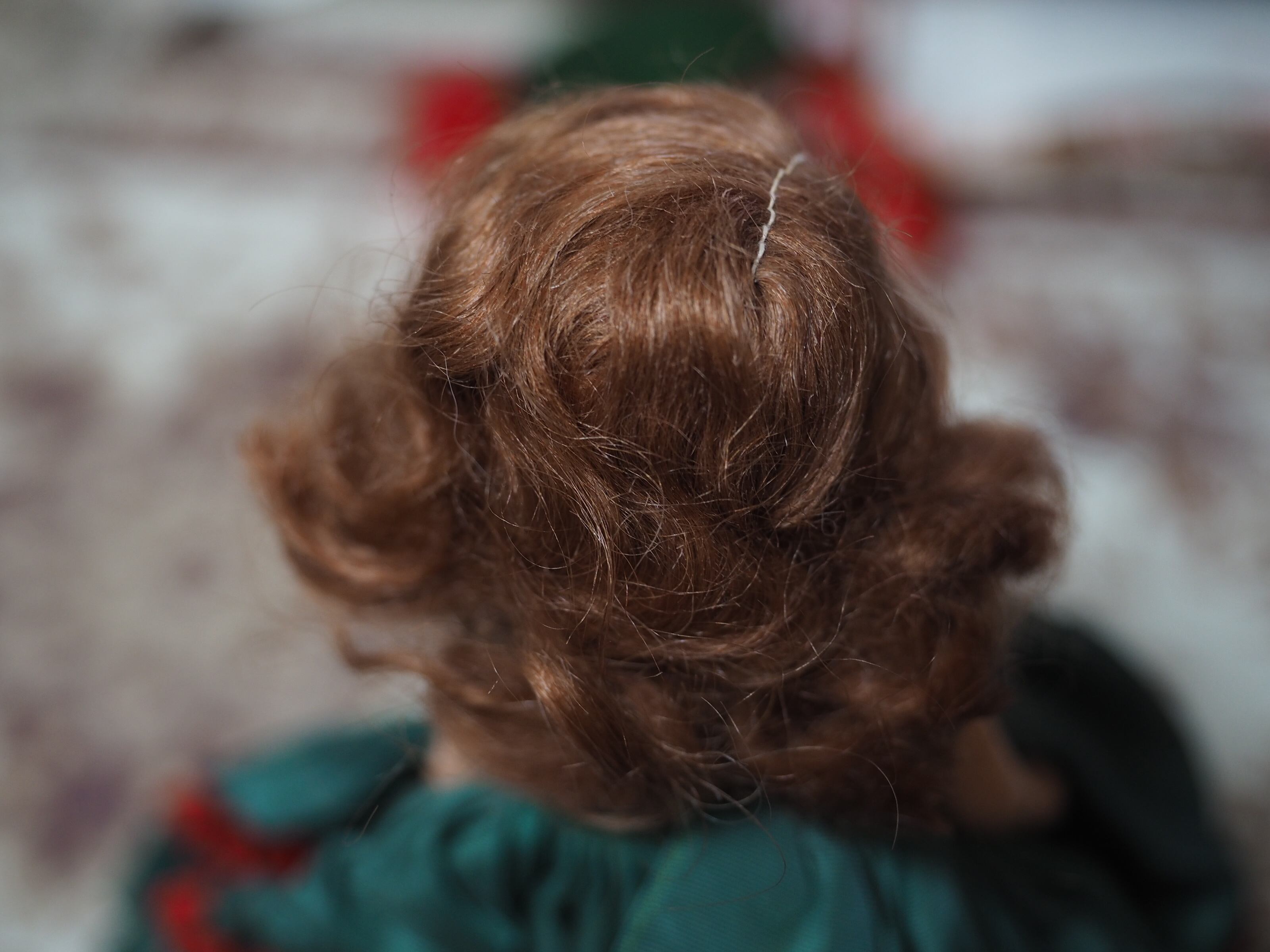 髪はモヘアウィッグで接着されており、ふわふわと少し乱れがありますが、お馴染みの額からウェーブのついたヘアがくるんとかわいいです。