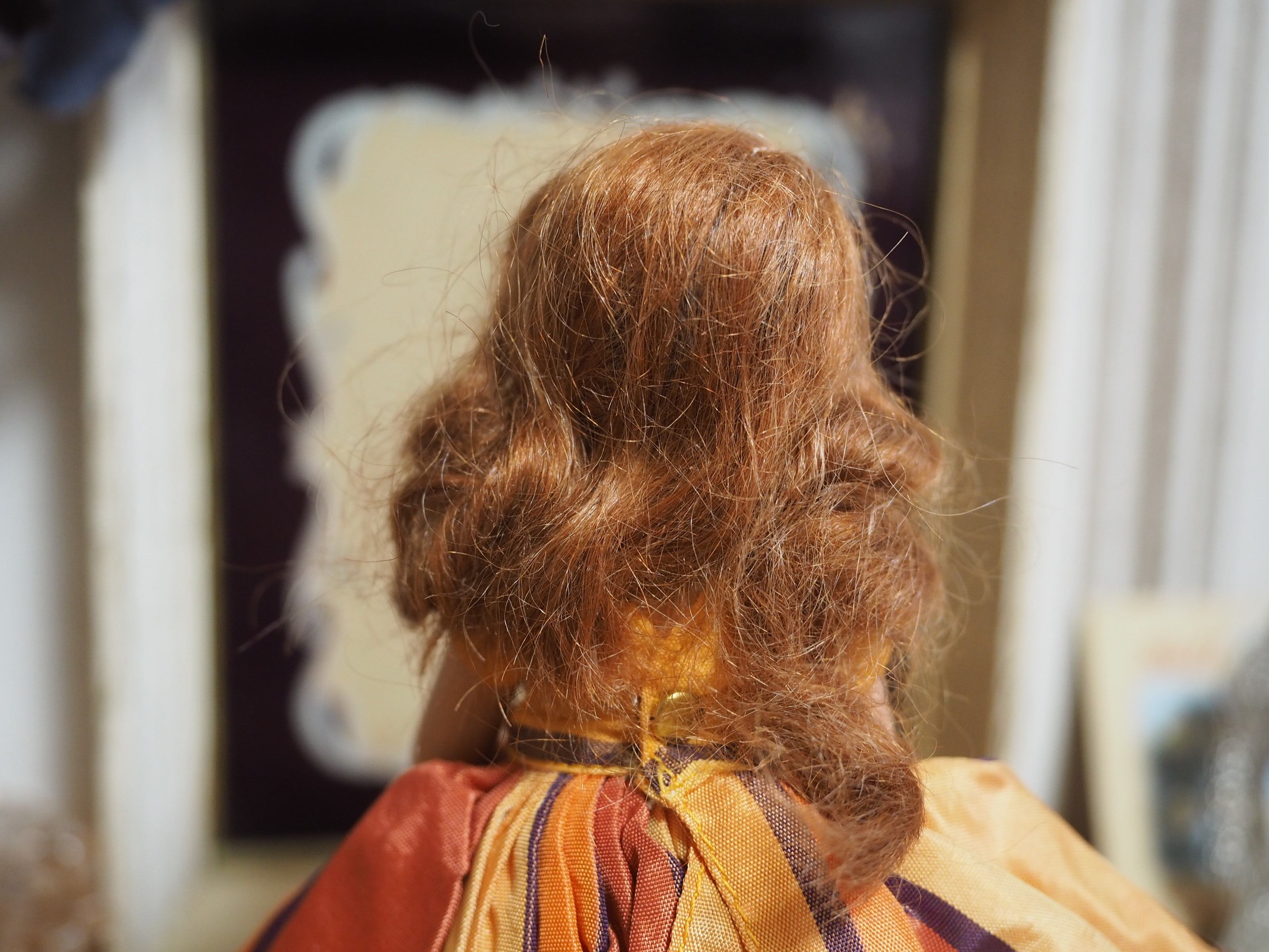 髪はモヘアウィッグで接着されており、ふわふわと少し乱れがありますが、お馴染みの額からウェーブのついたヘアがくるんとかわいいです。