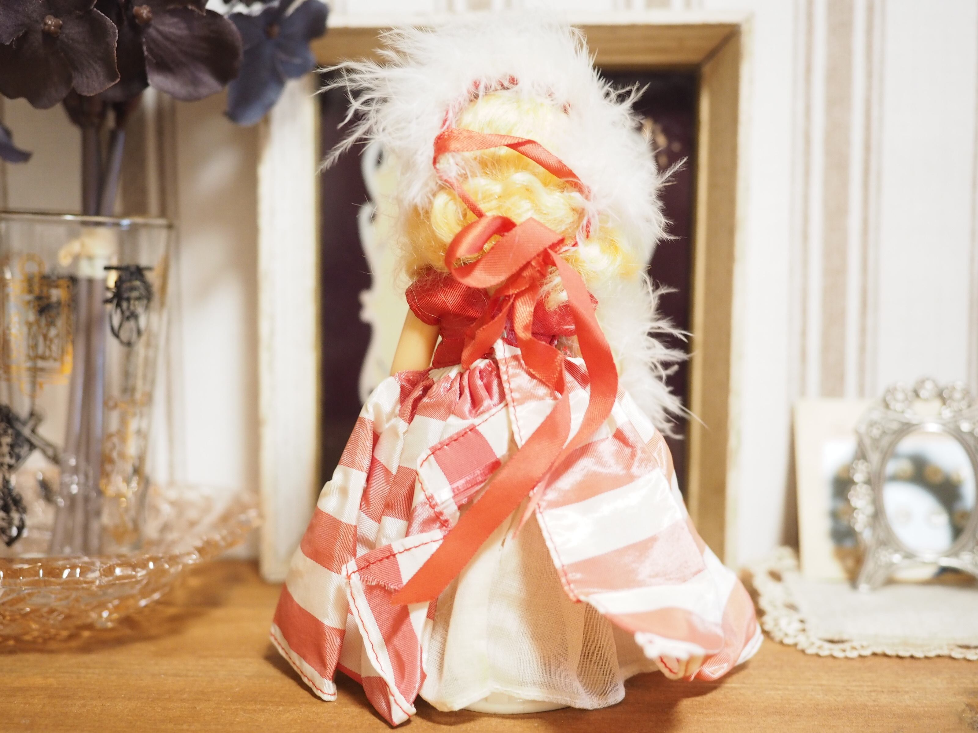 髪はモヘアウィッグで接着されており、ふわふわと少し乱れがありますが、お馴染みの額からウェーブのついたヘアがくるんとかわいいです。