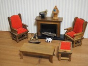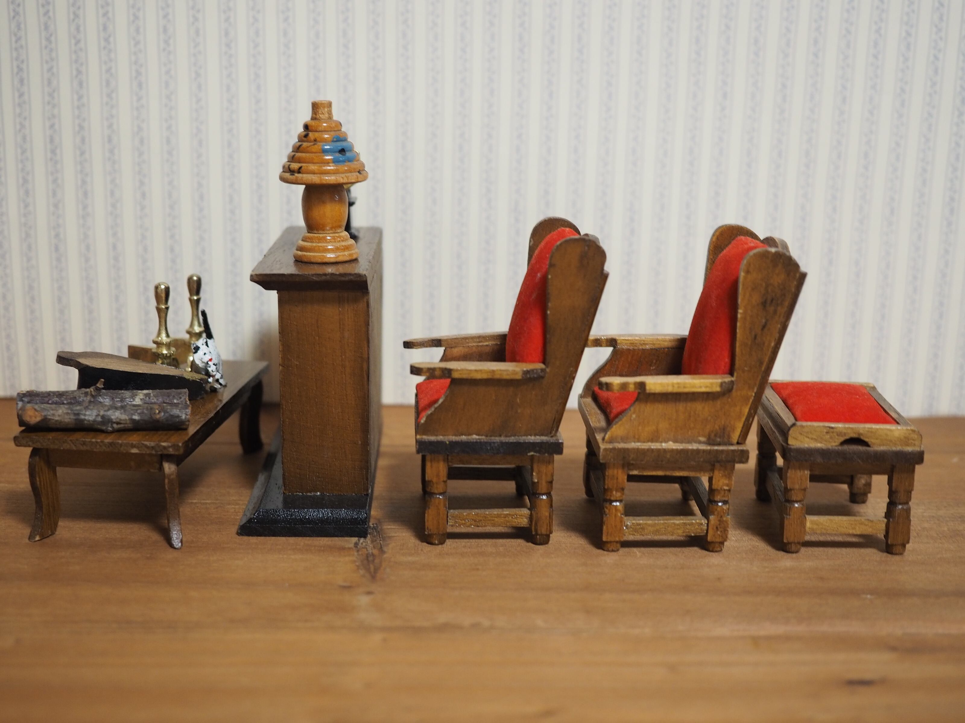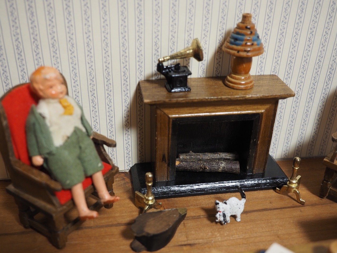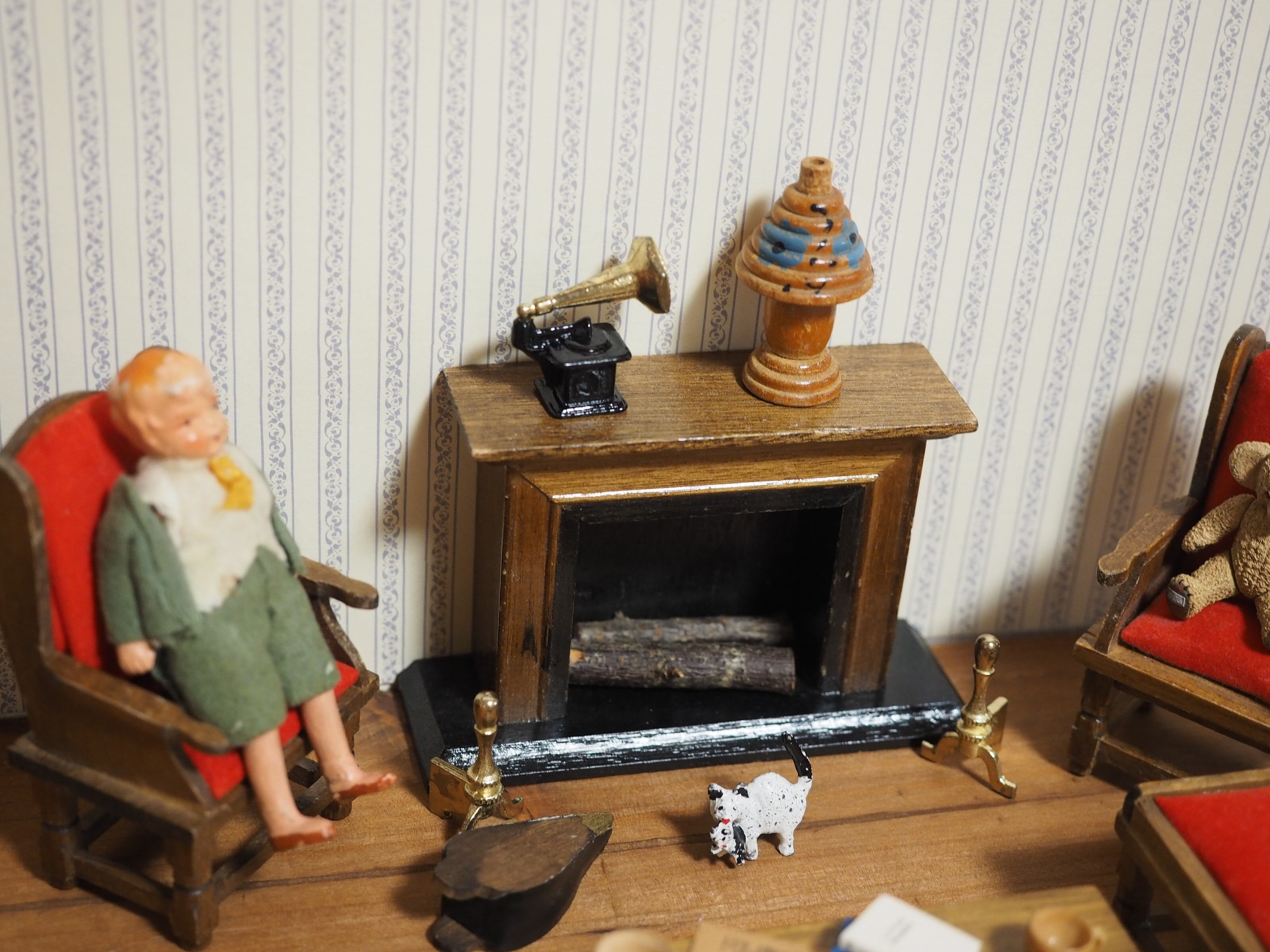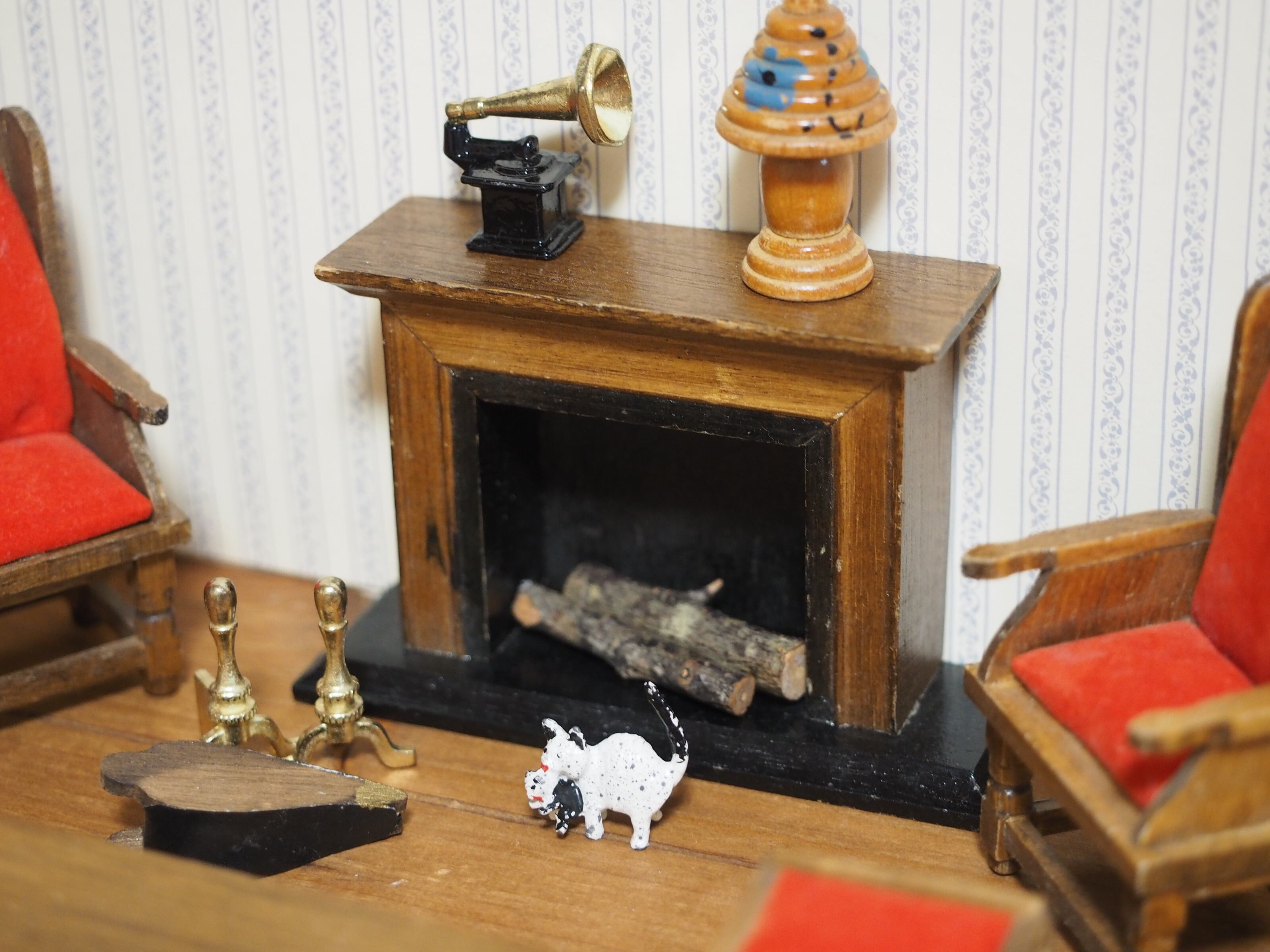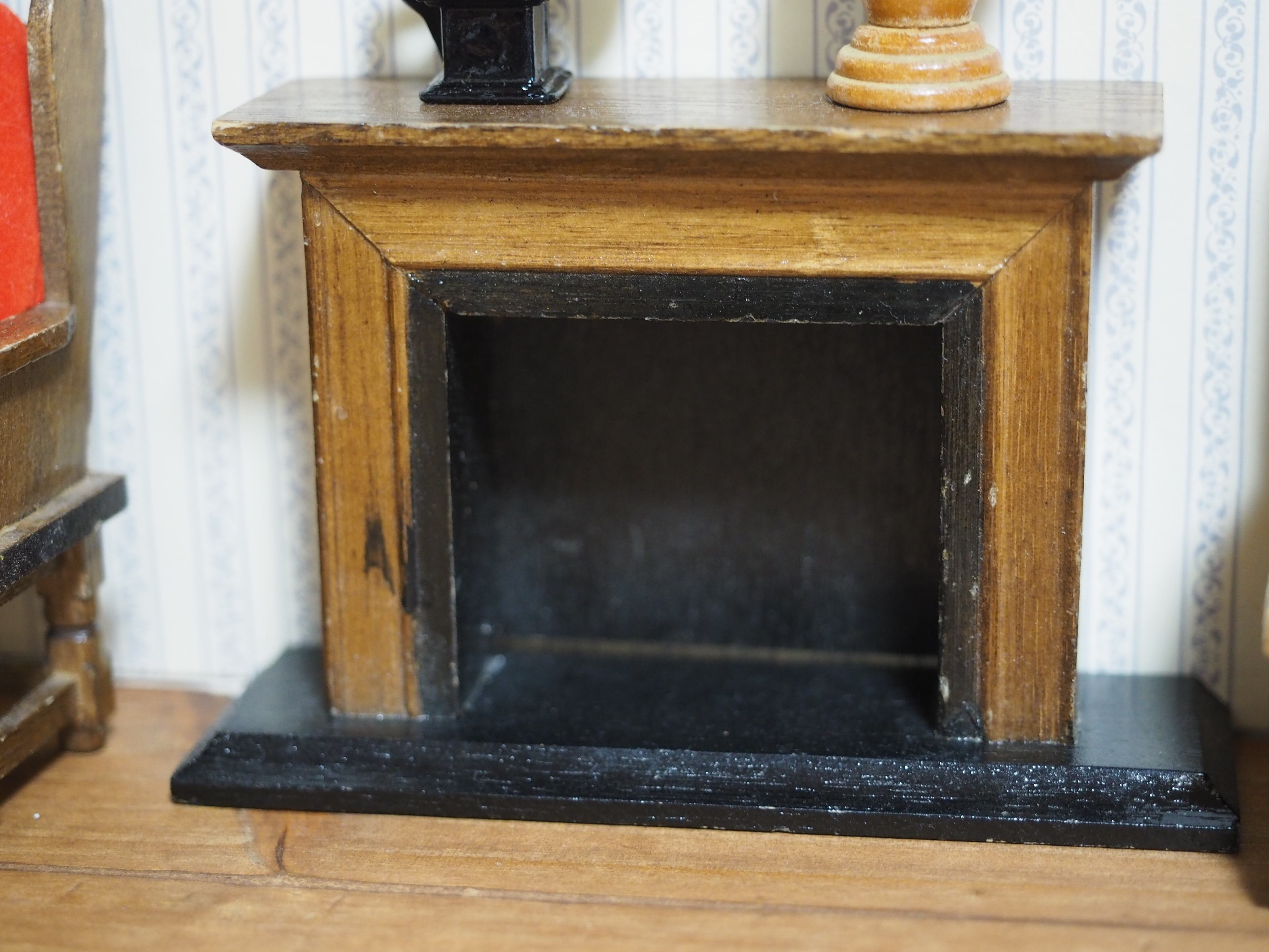 Shackman 暖炉セット、温かみのある色使いの家具、小物のセットです。(暖炉以外のメーカーは不明です)