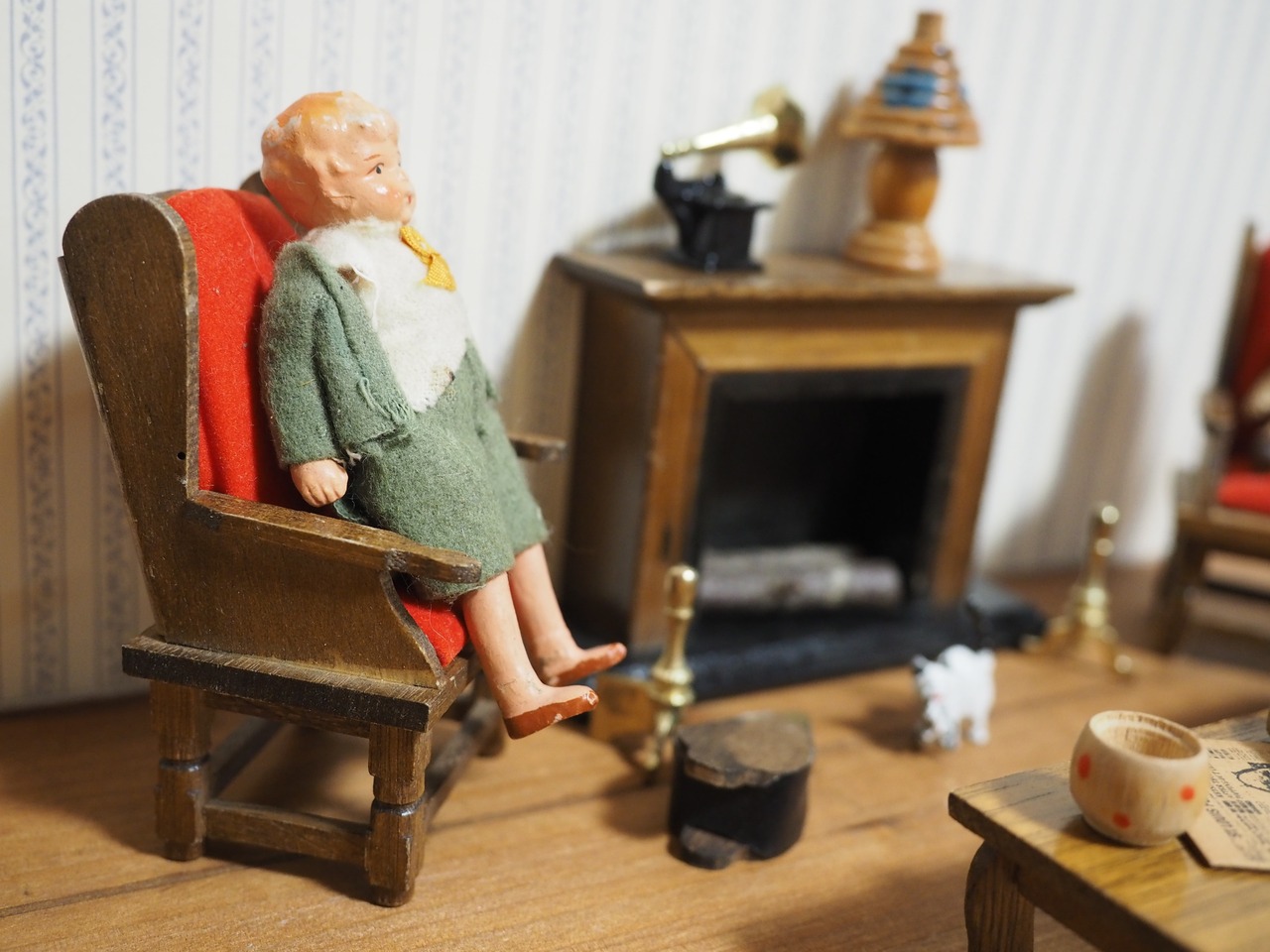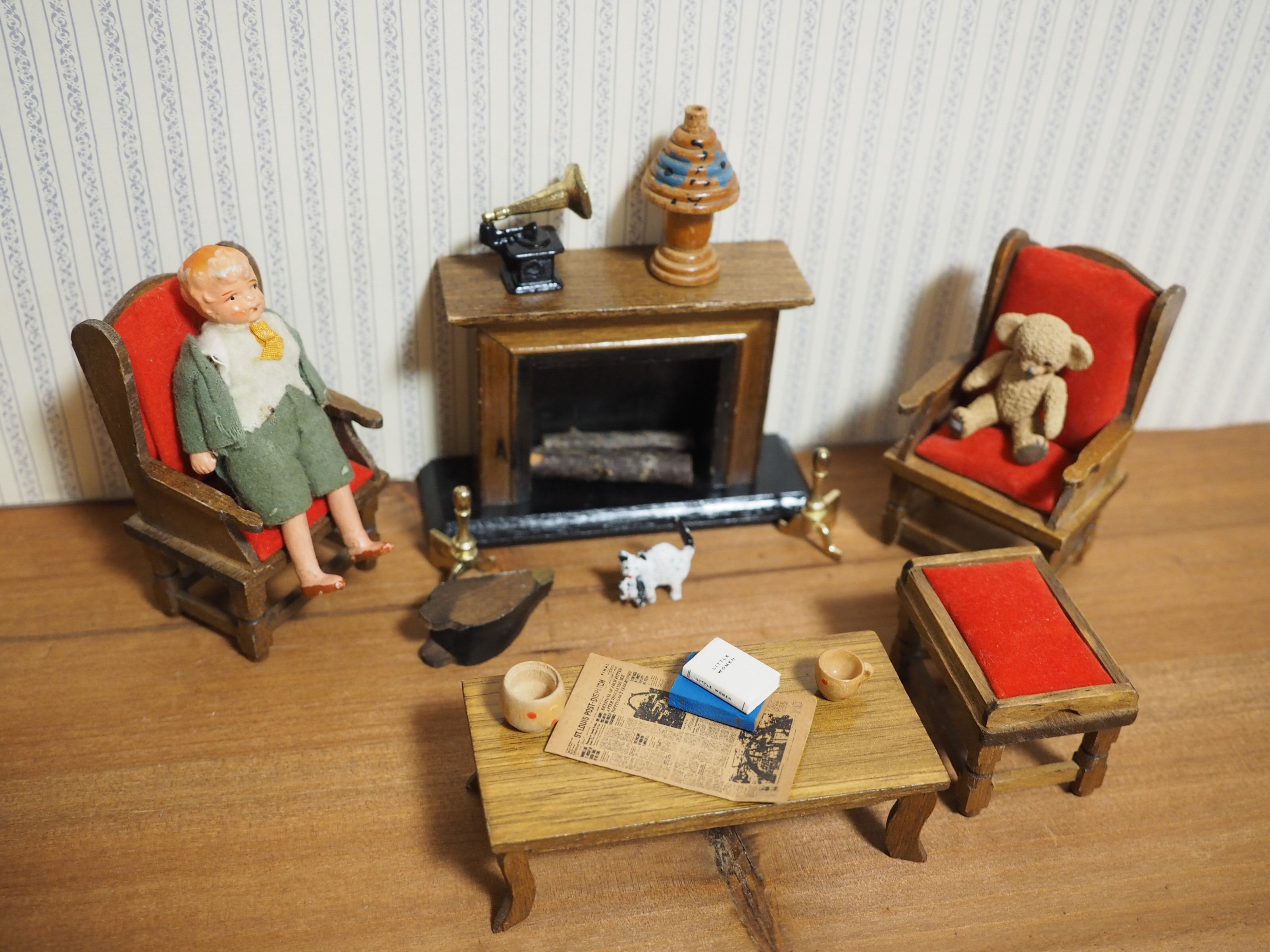 暖炉約12.5×4×8.1㎝、椅子約5.9×6×10.5㎝、机約10.8×5.1×3.4㎝