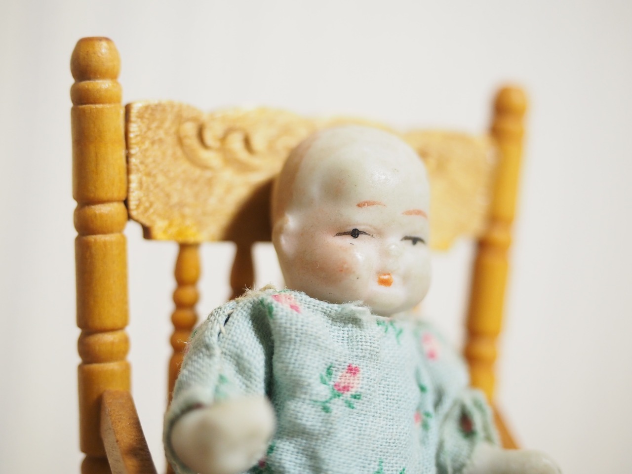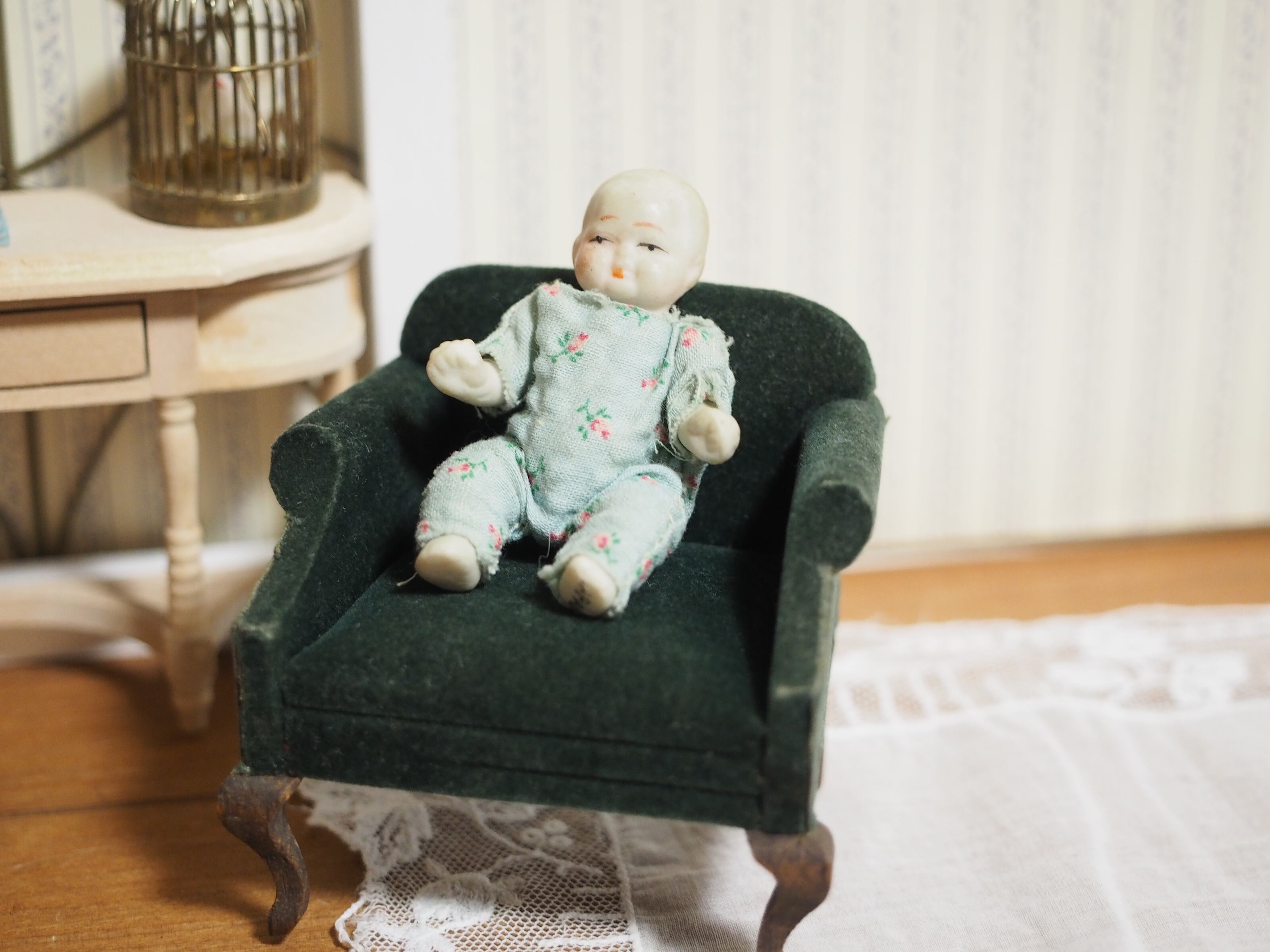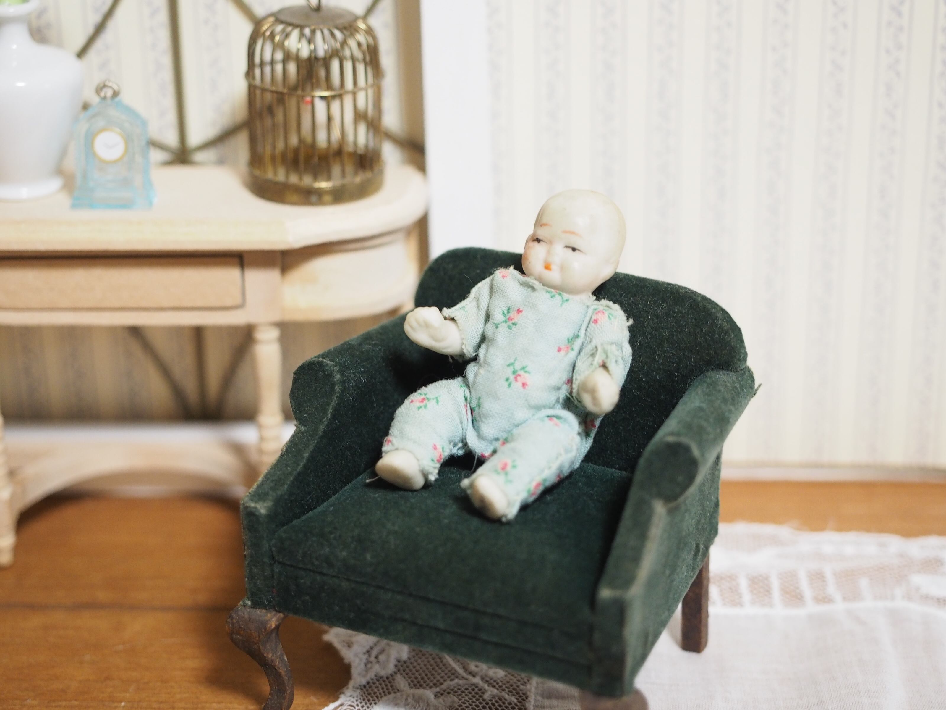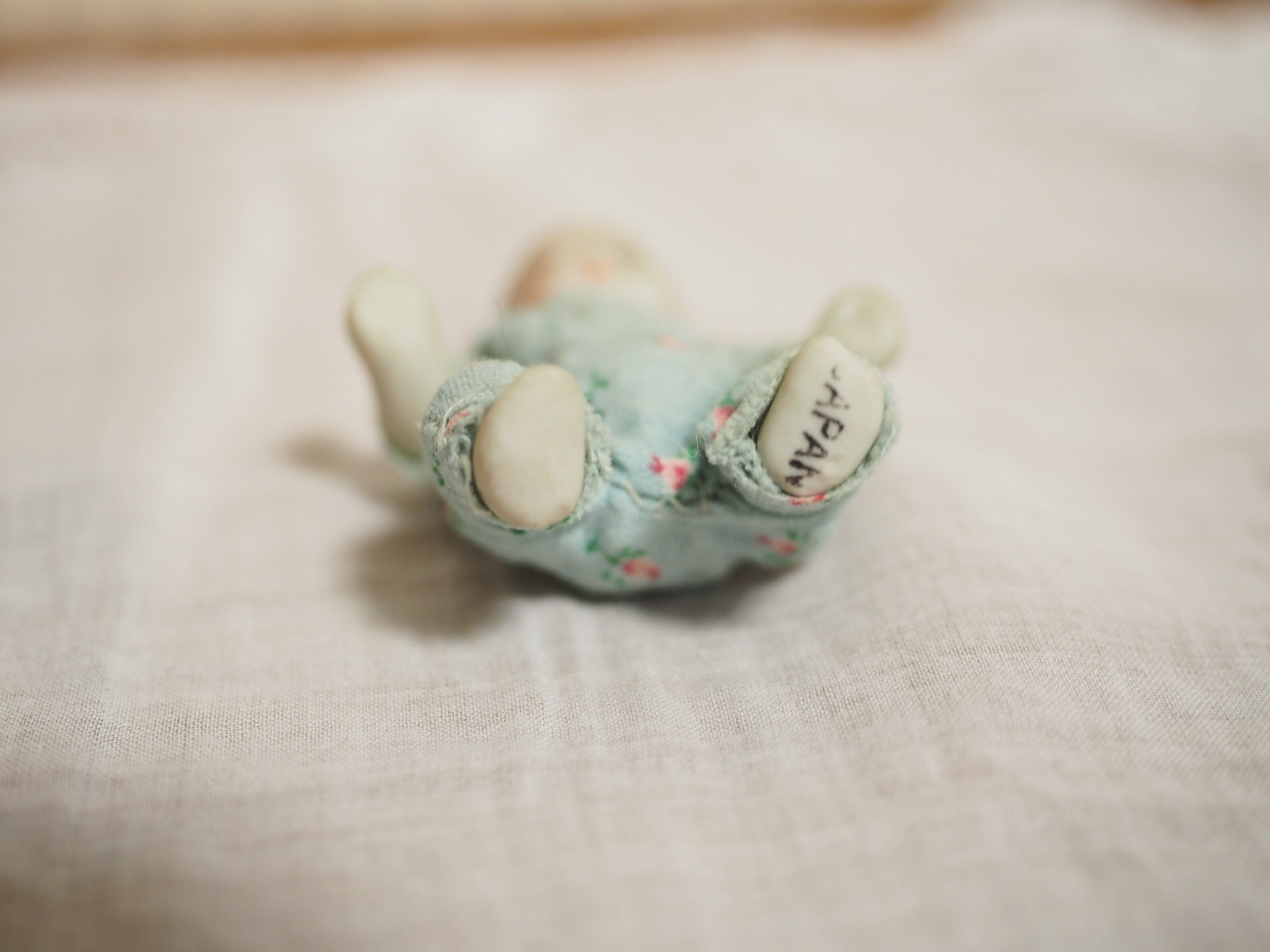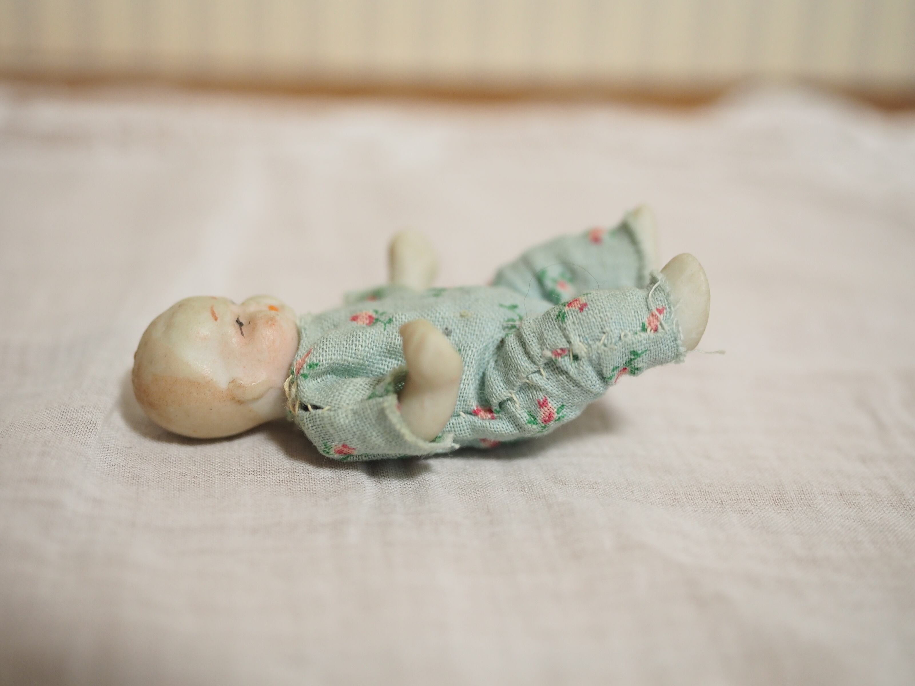 片手に包み込まれるサイズの小さなビスクドールです。