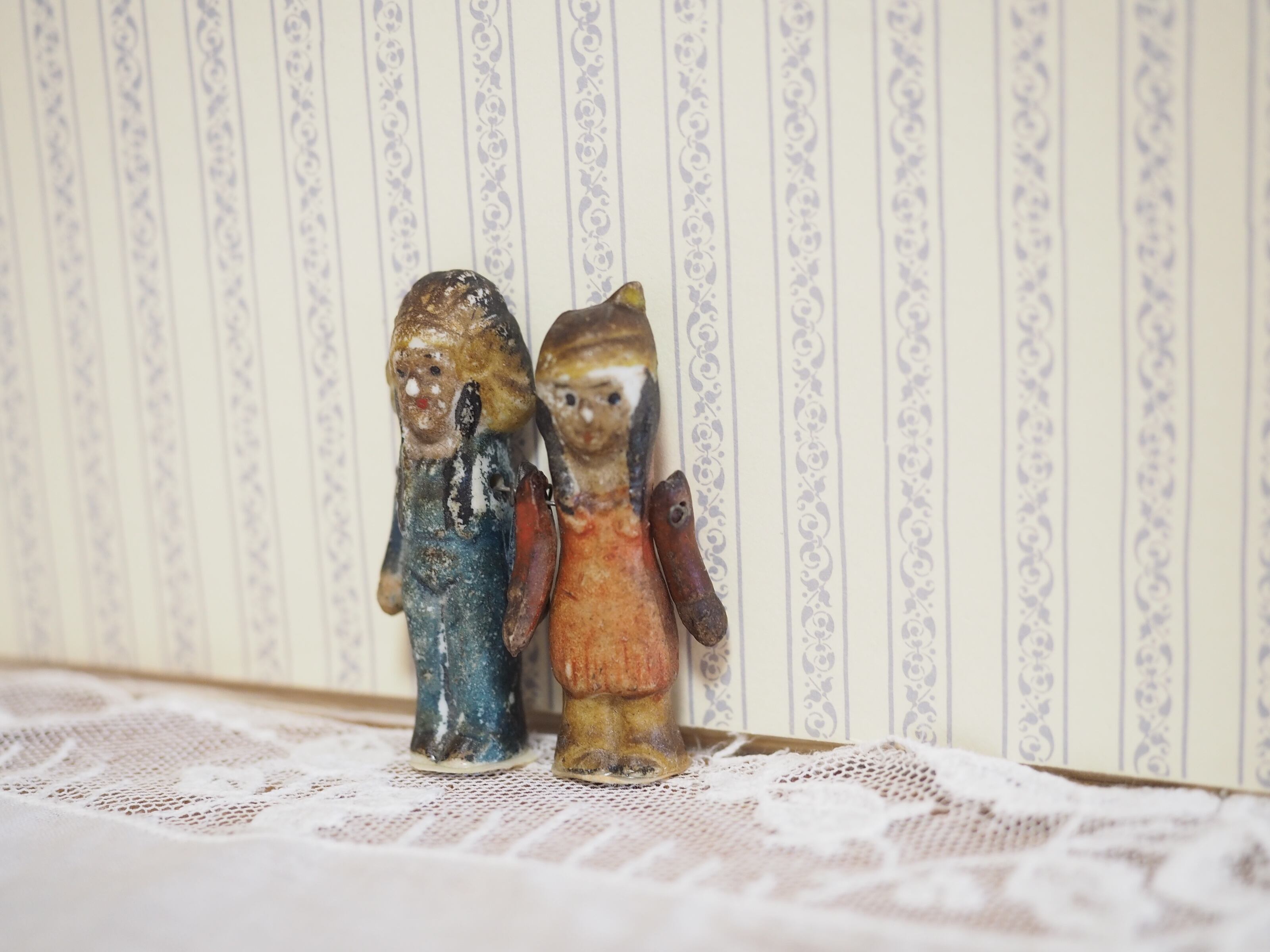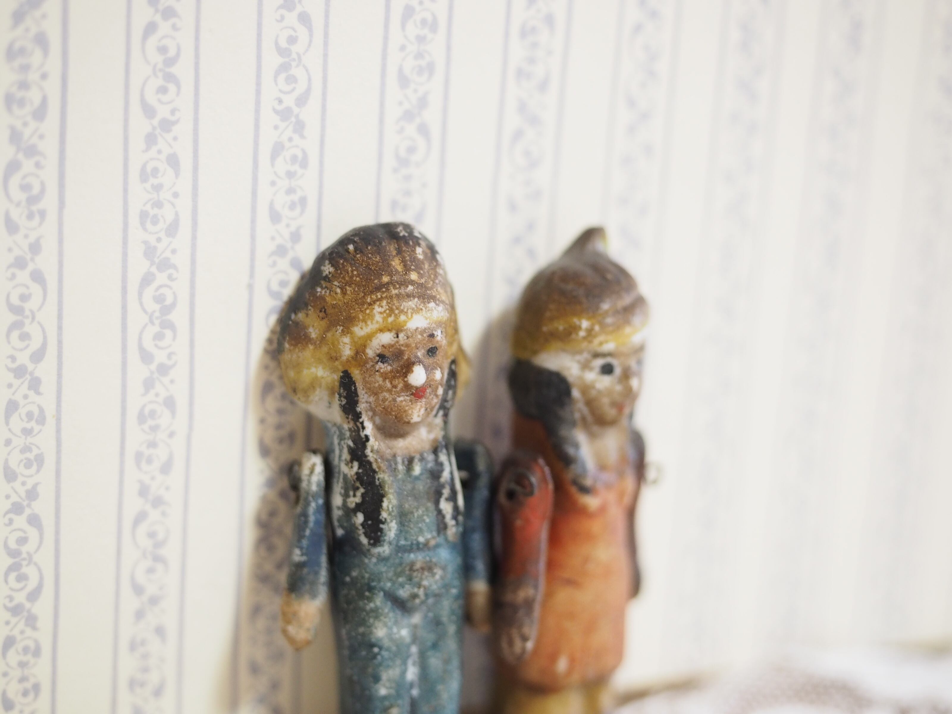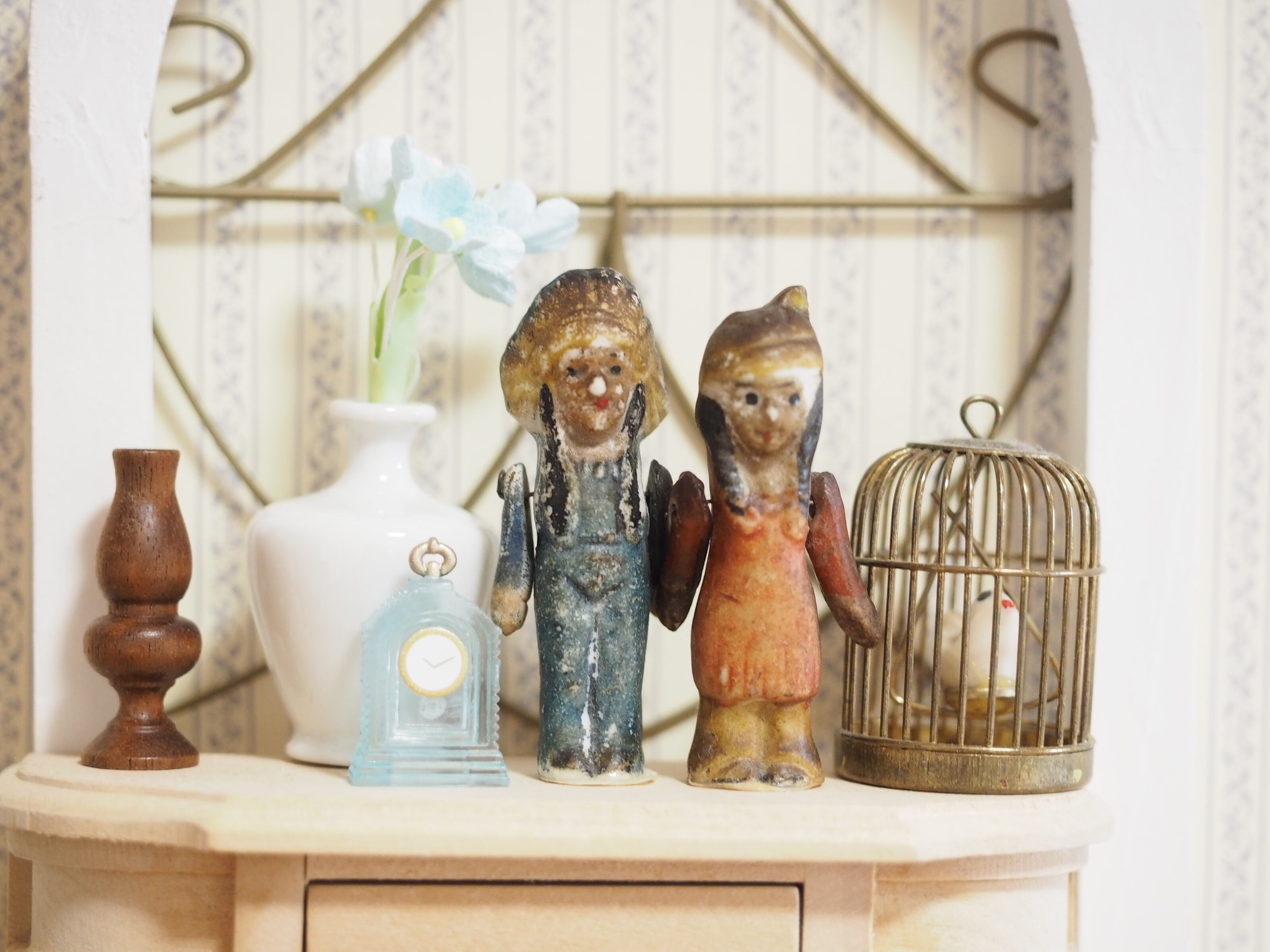 洋服もそれぞれ細かに成型され、ワンピースやズボンの裾もよく出来ています。帽子と頭飾りがかわいいです。