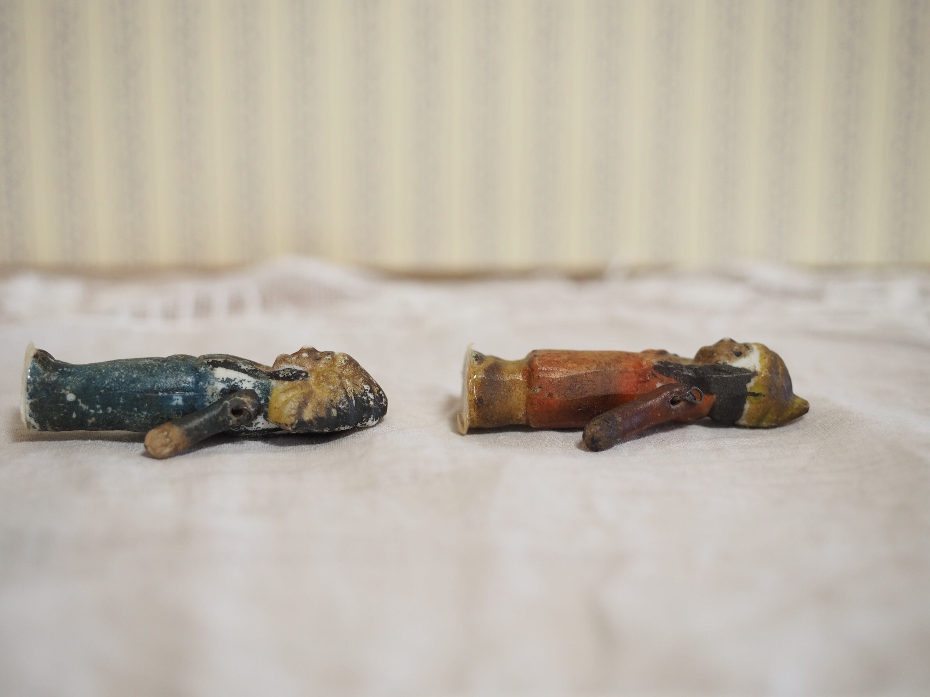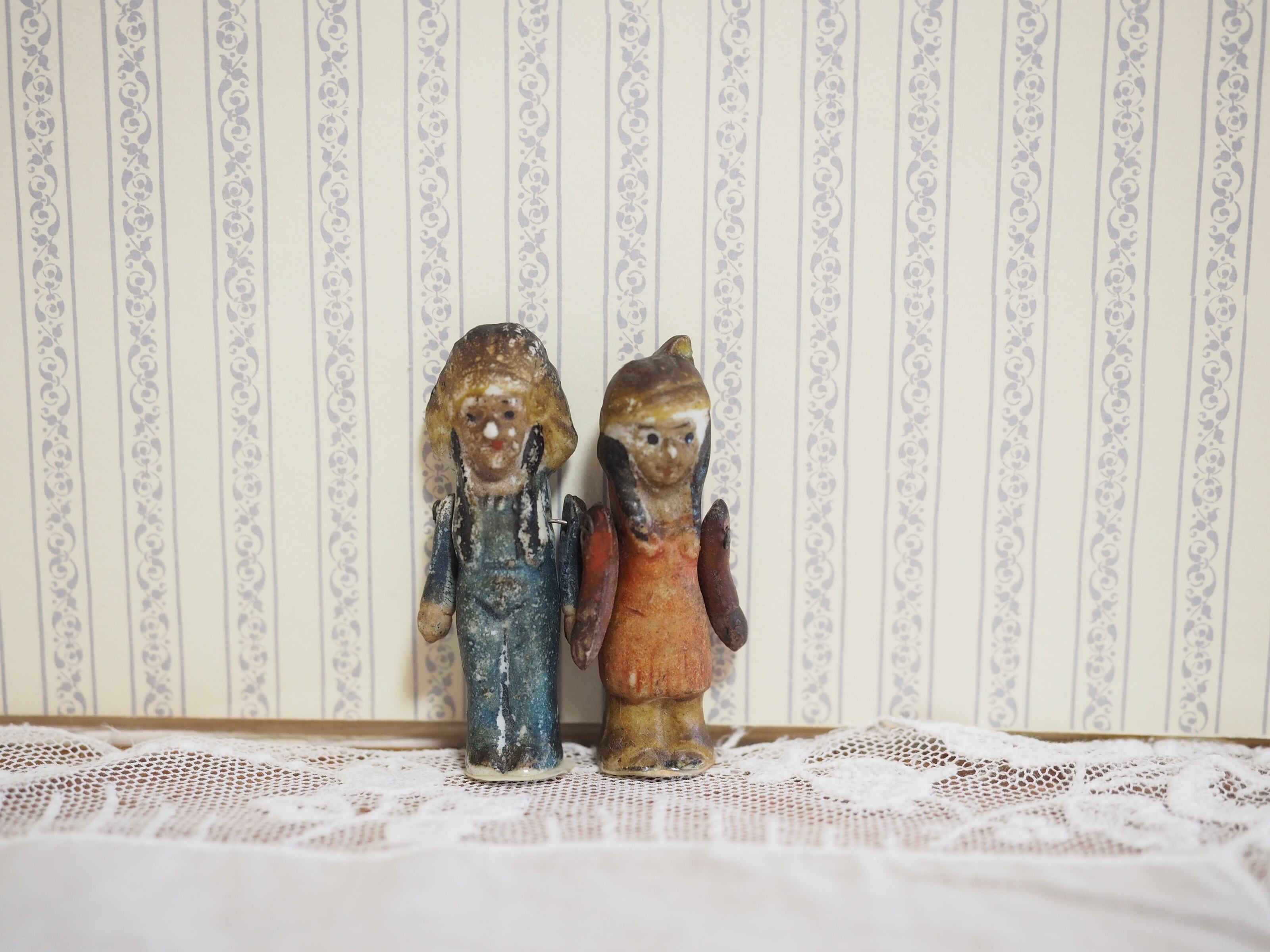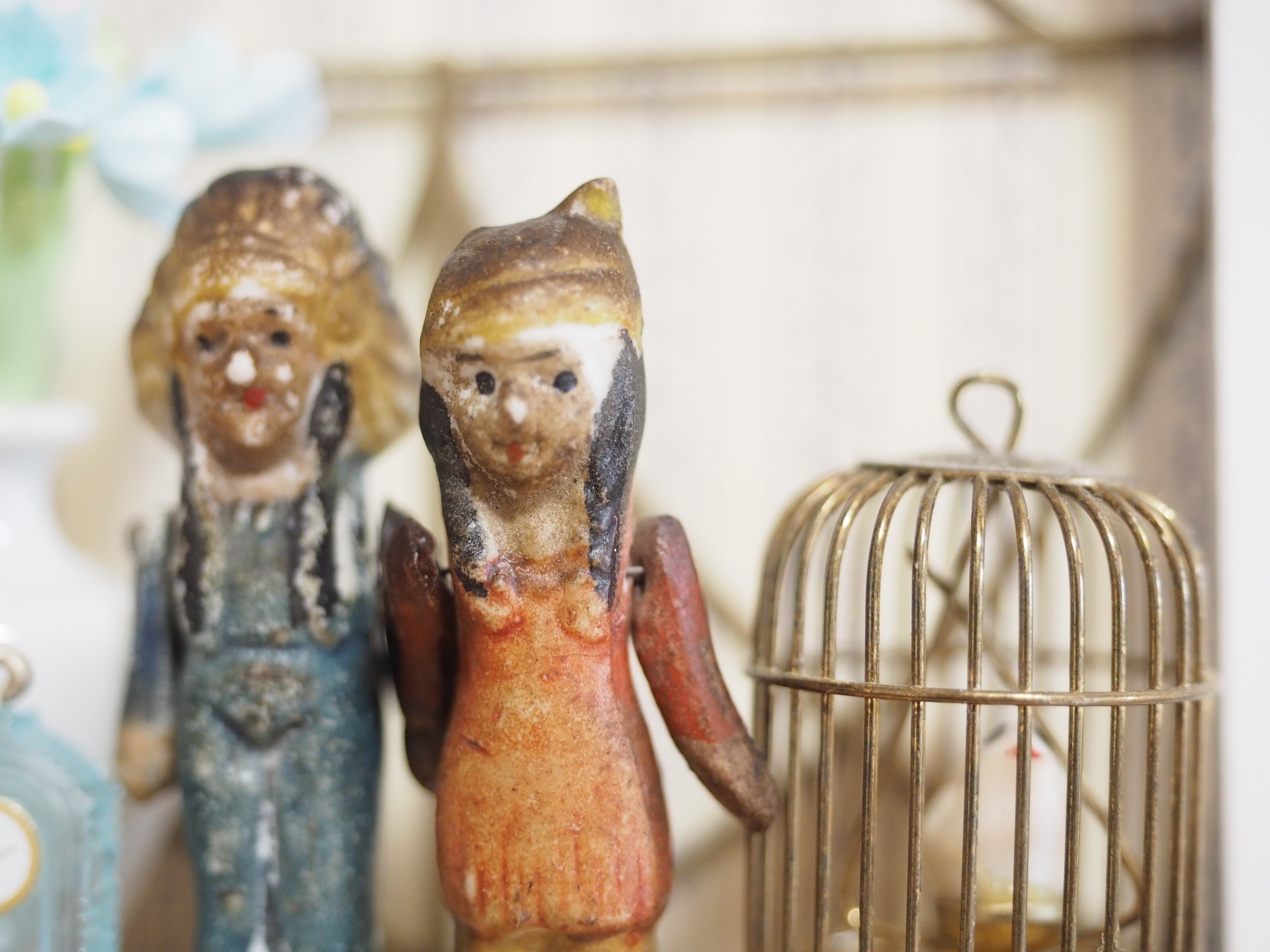 洋服もそれぞれ細かに成型され、ワンピースやズボンの裾もよく出来ています。帽子と頭飾りがかわいいです。