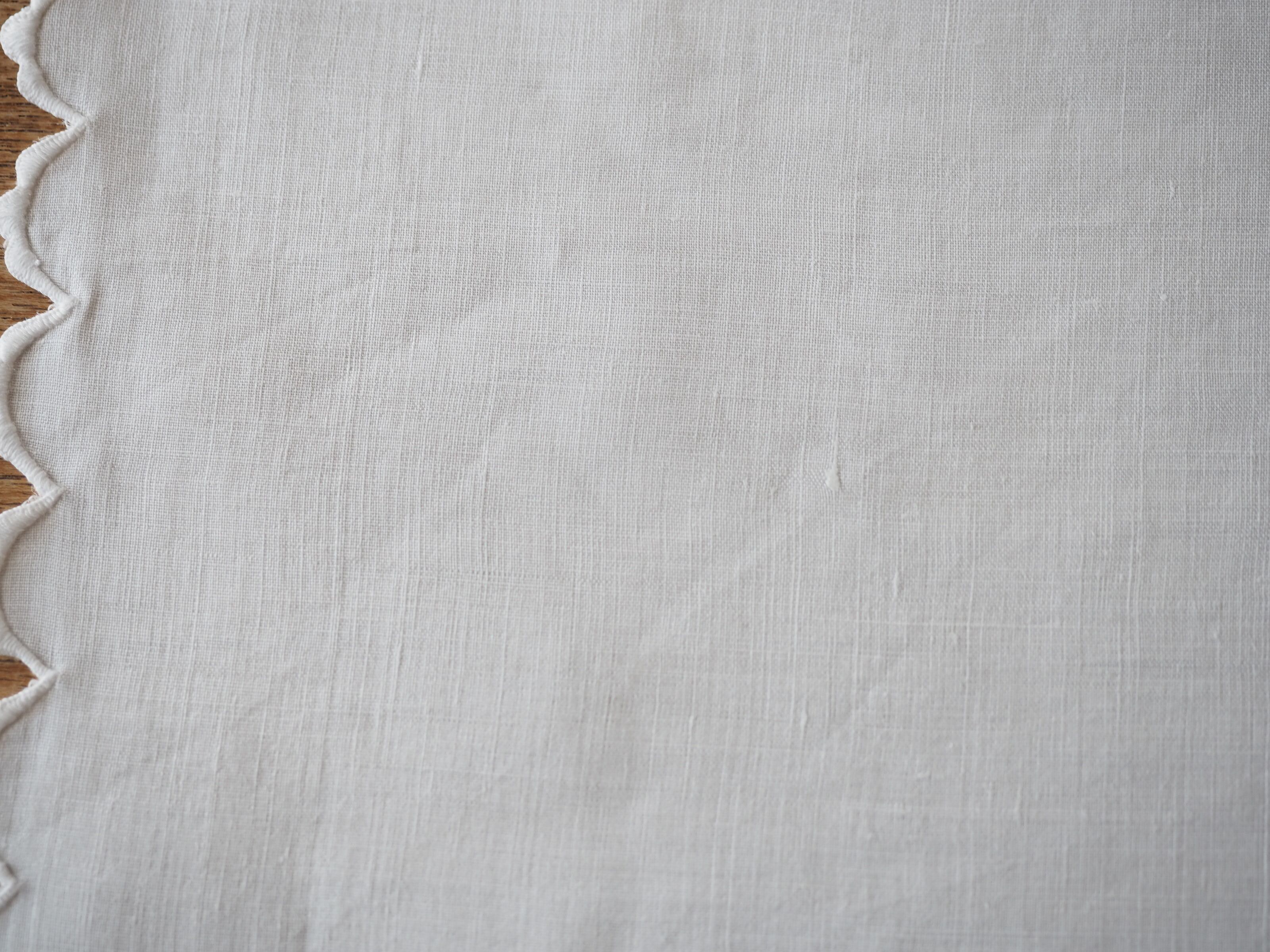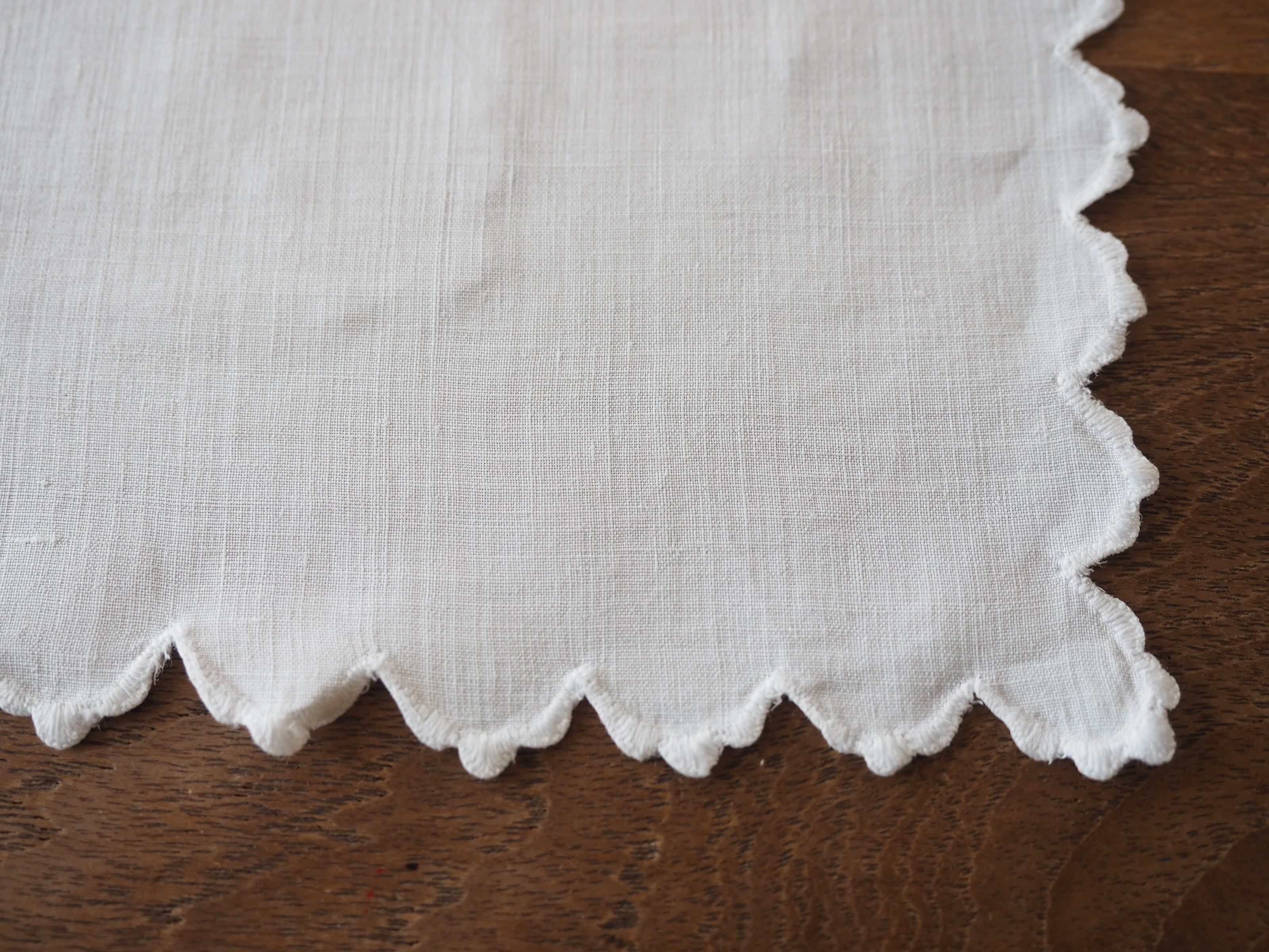 シンプルなコーナー刺繍のナプキンですが、ぐるっと縁に施されたスカラップも細やかでとても素敵です。