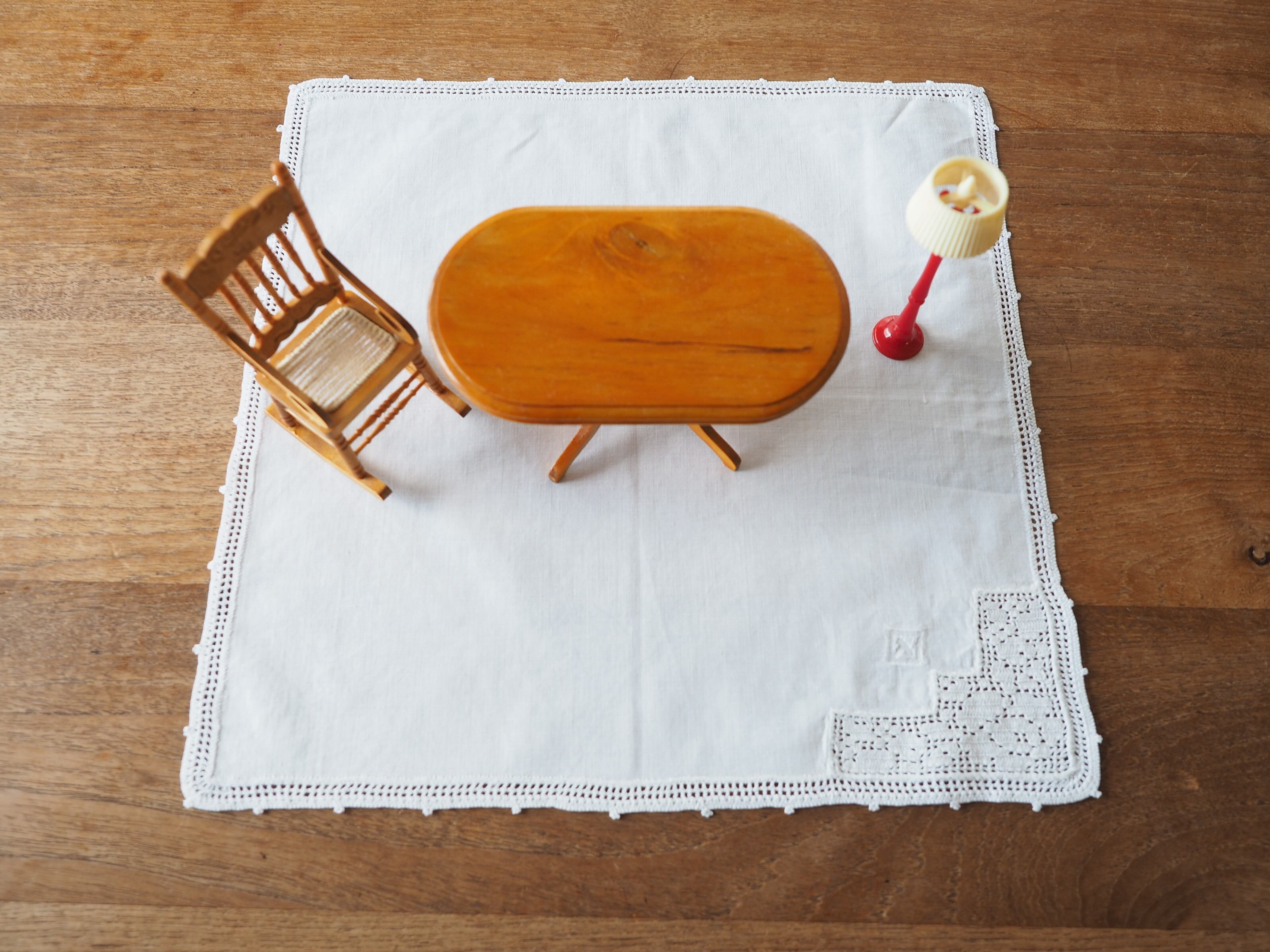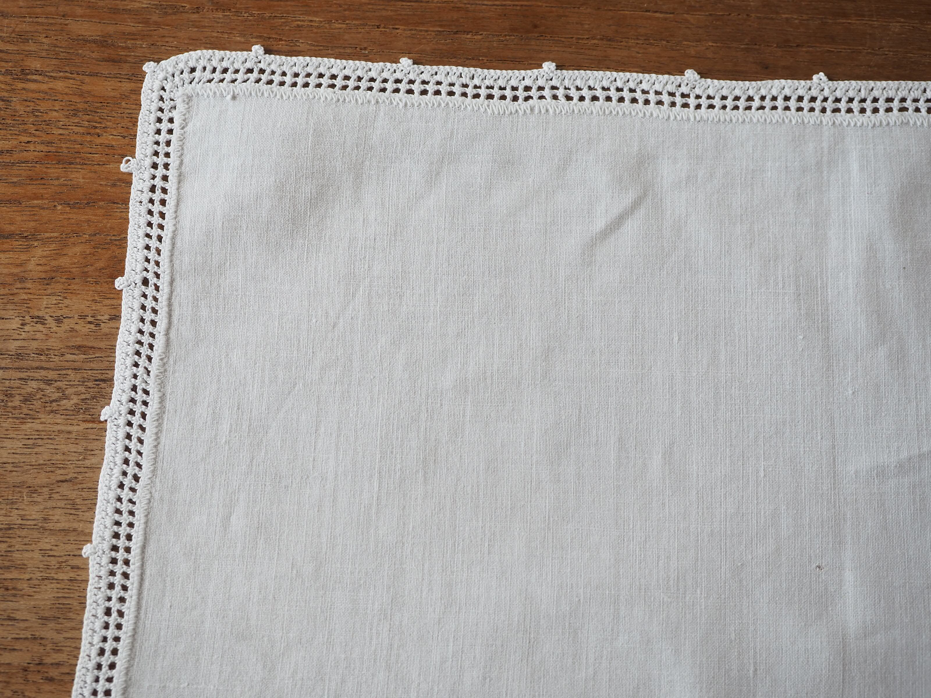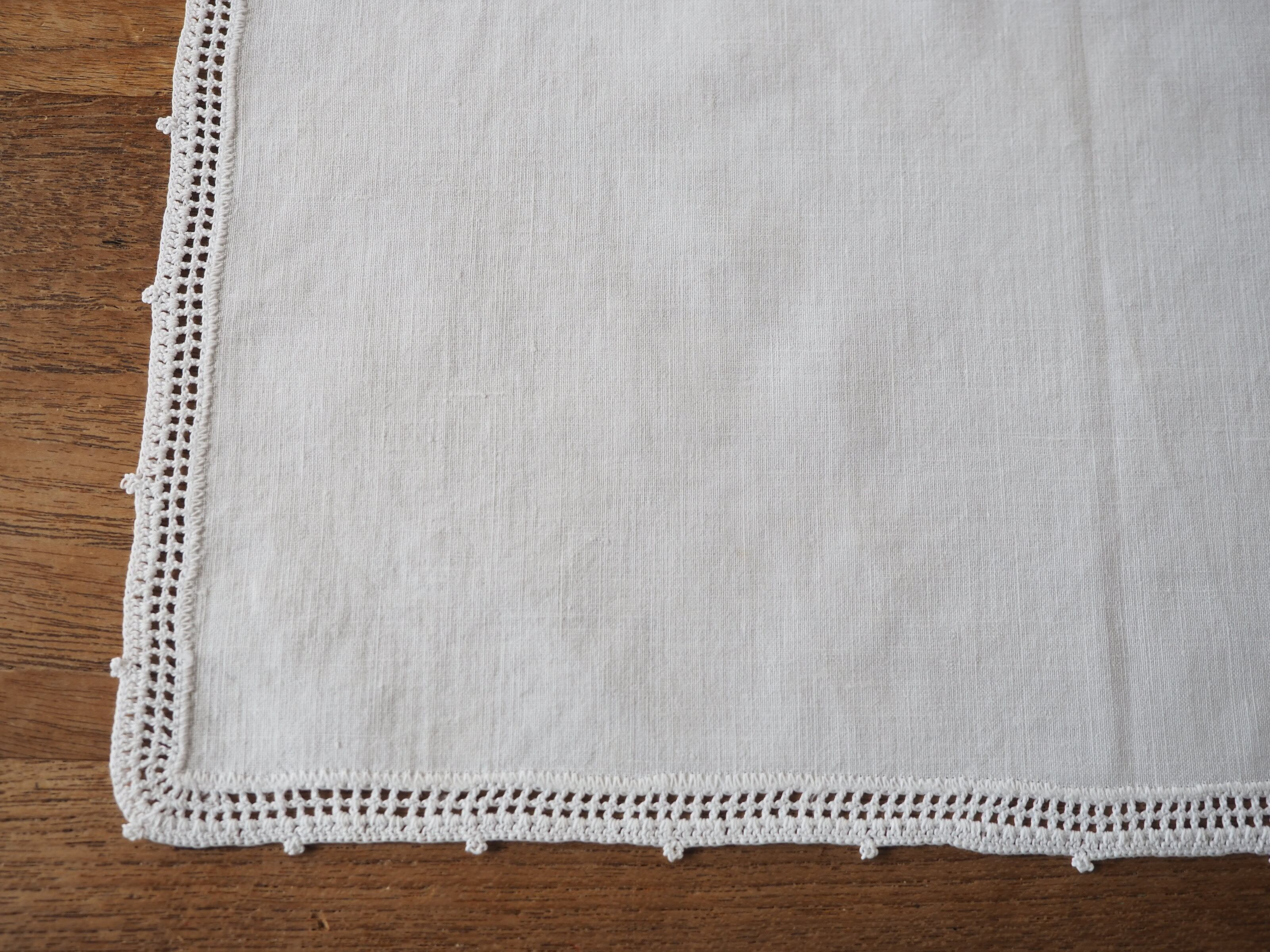 シンプルなナプキンですが、縁は全て約1㎝の細やかなニードルレース、細い鎖編みをくるんと巻いた小さな丸い縁取りもかわいいです。