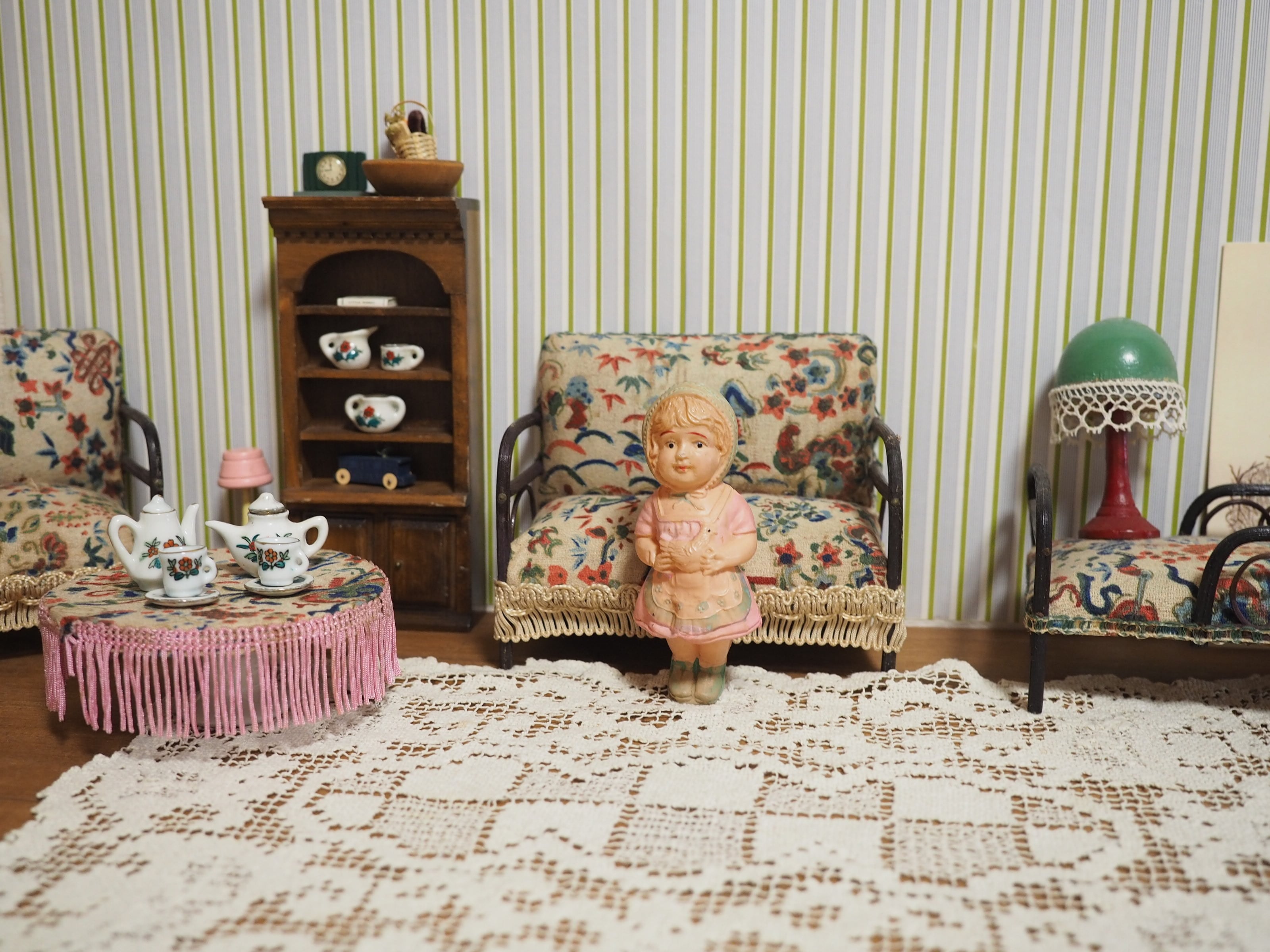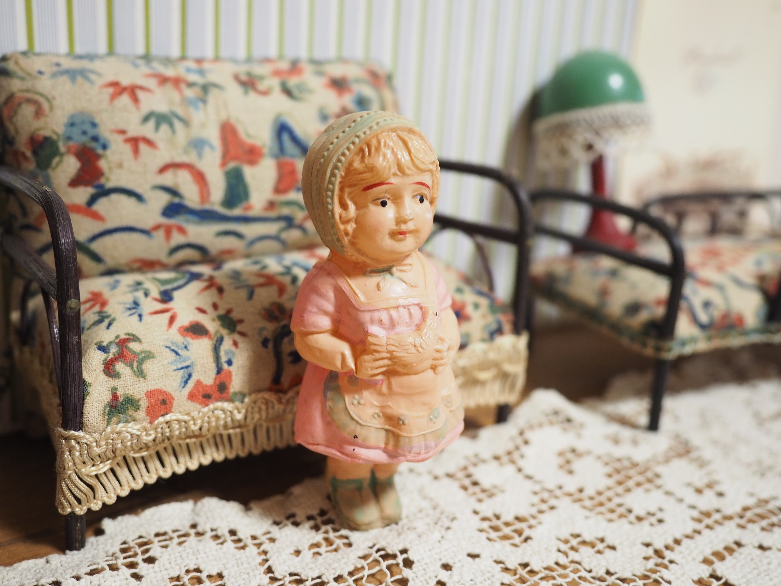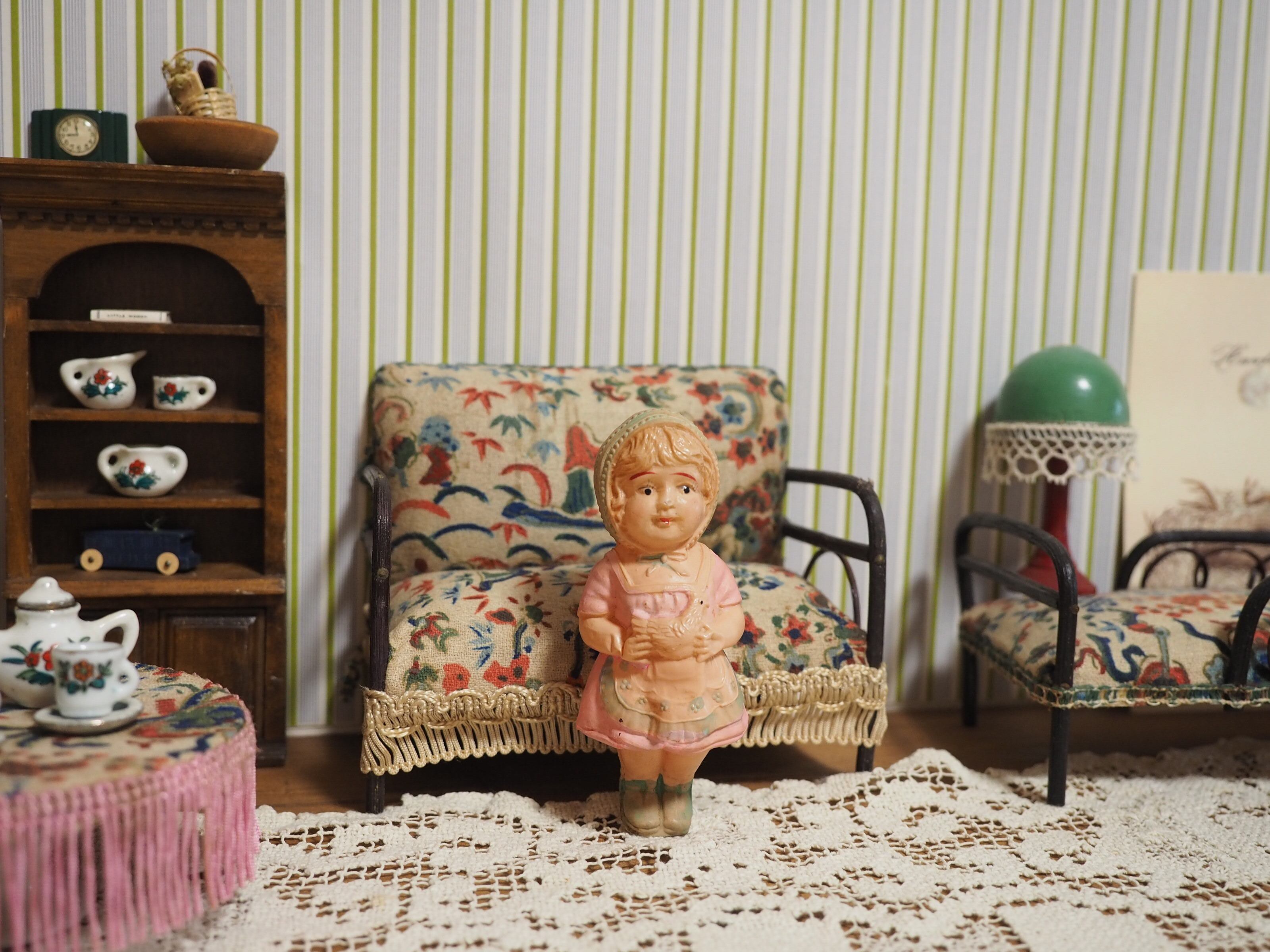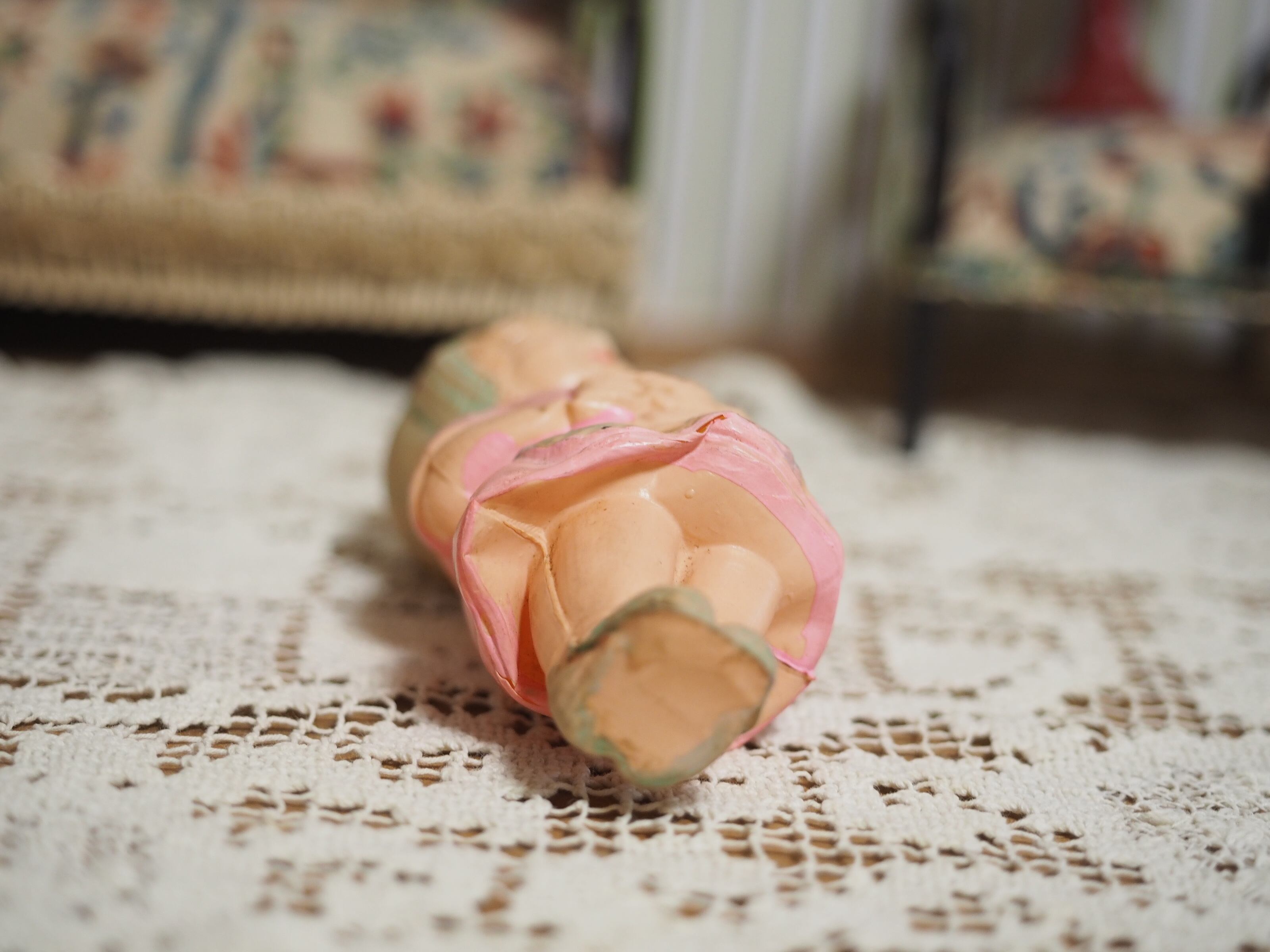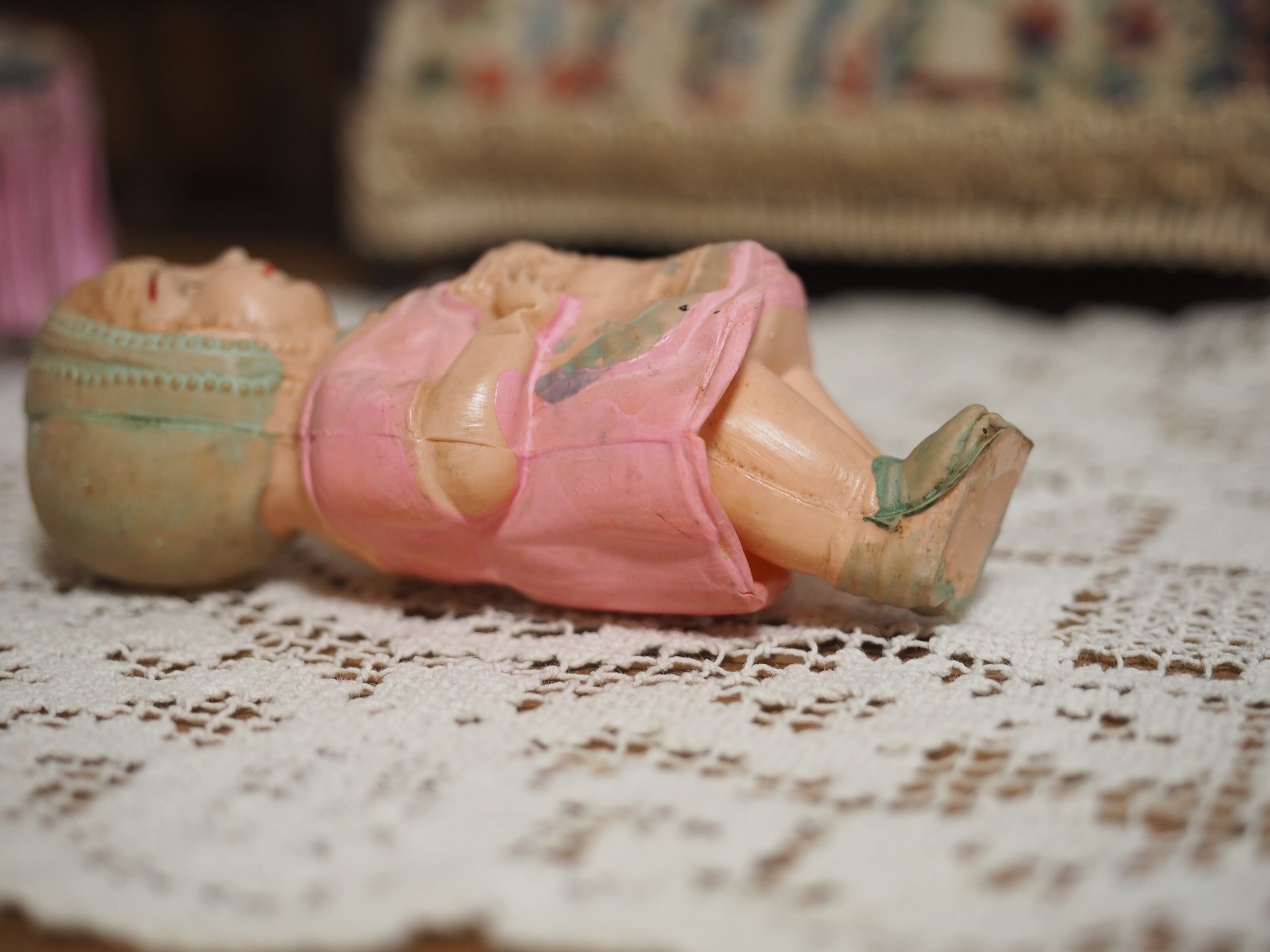 感動するような軽さと、素朴な温かみのあるセルロイドのお人形です。