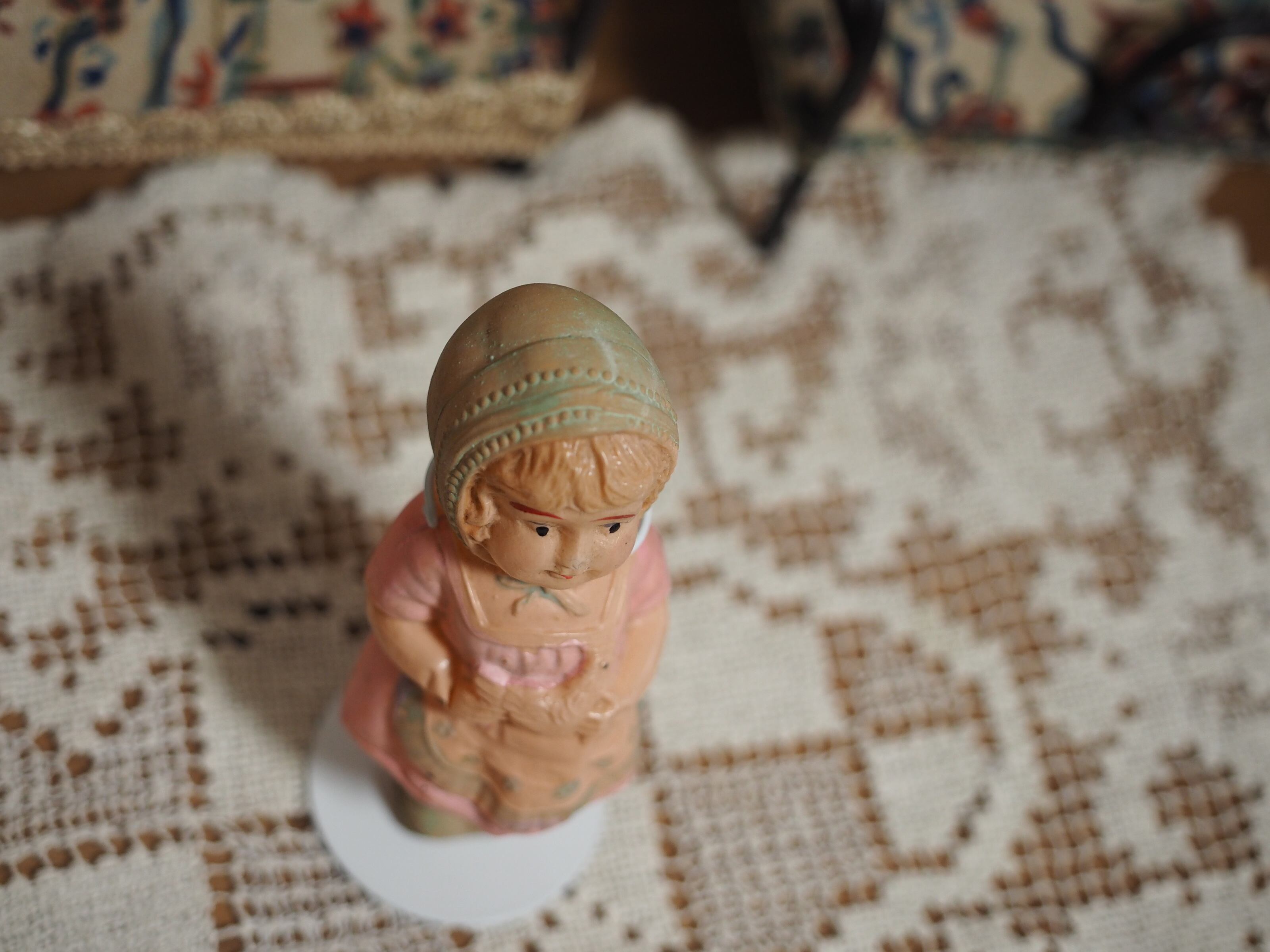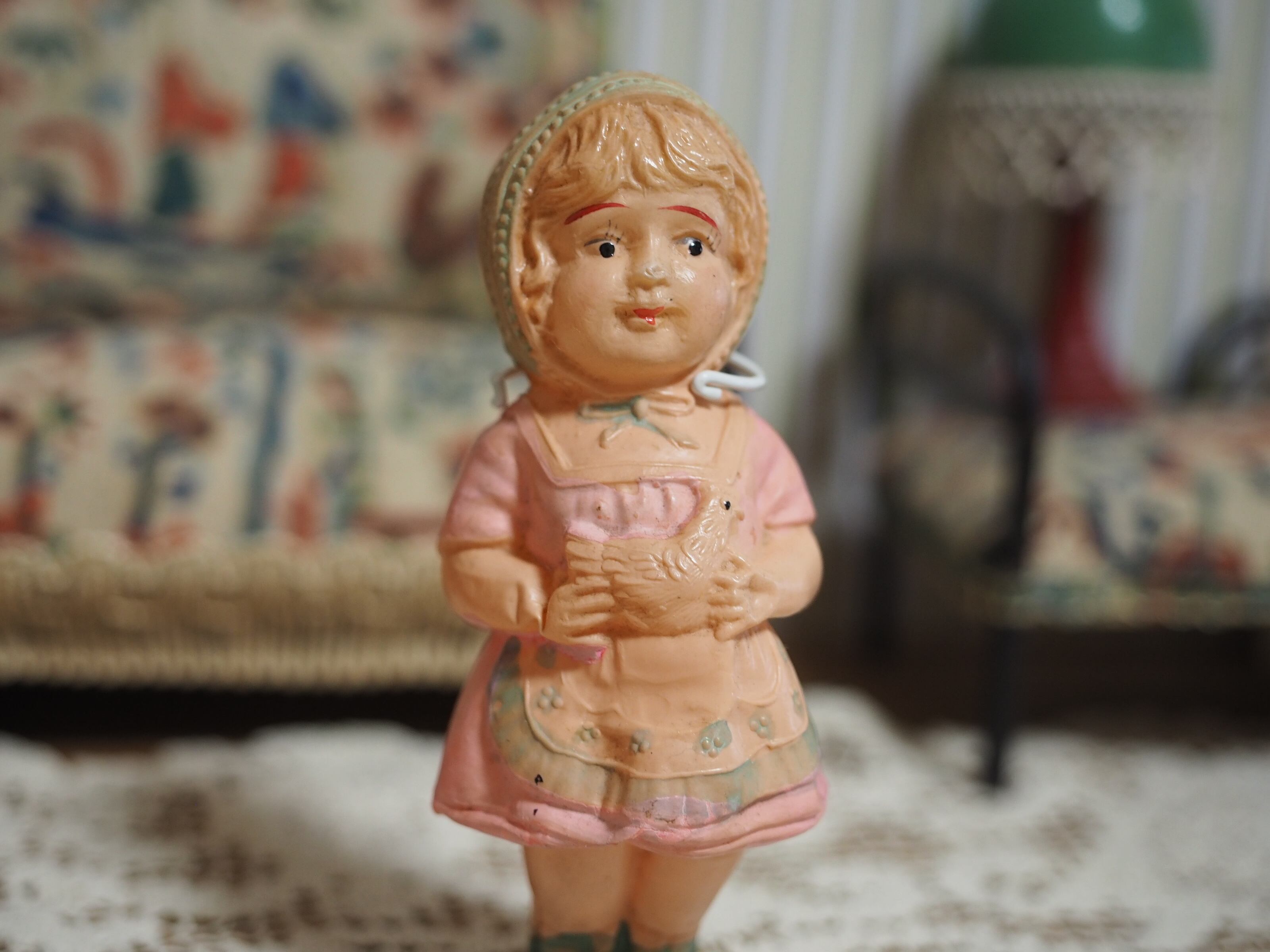 ニワトリを抱いた女の子 ジャパンセルロイド(割れ・へこみあり)