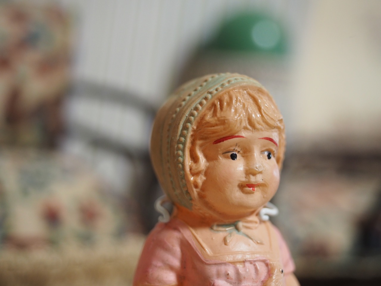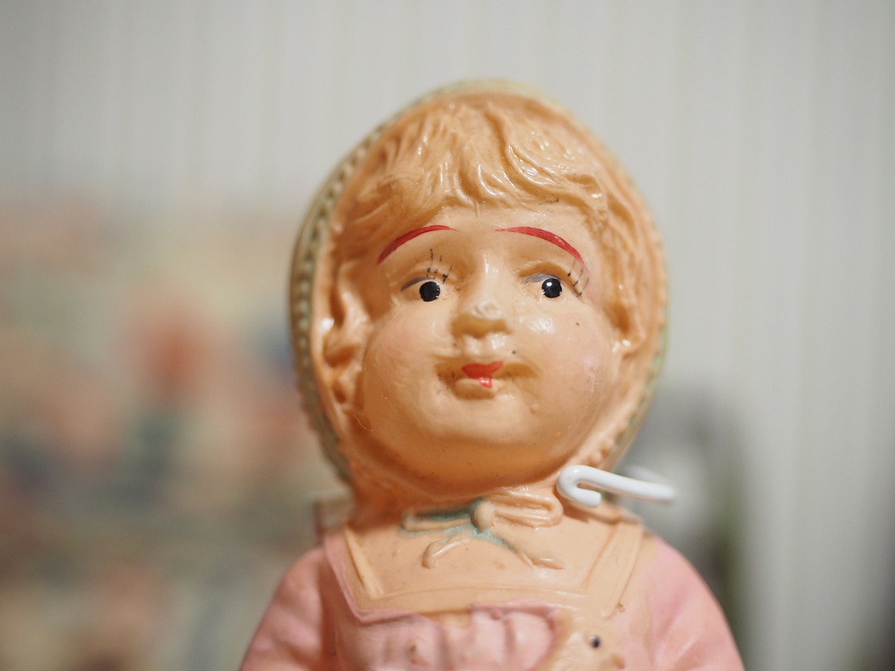 1913年に吹き込みによる人形が製造され、たくさん作られたセルロイド、1954年頃までのものと思われます。