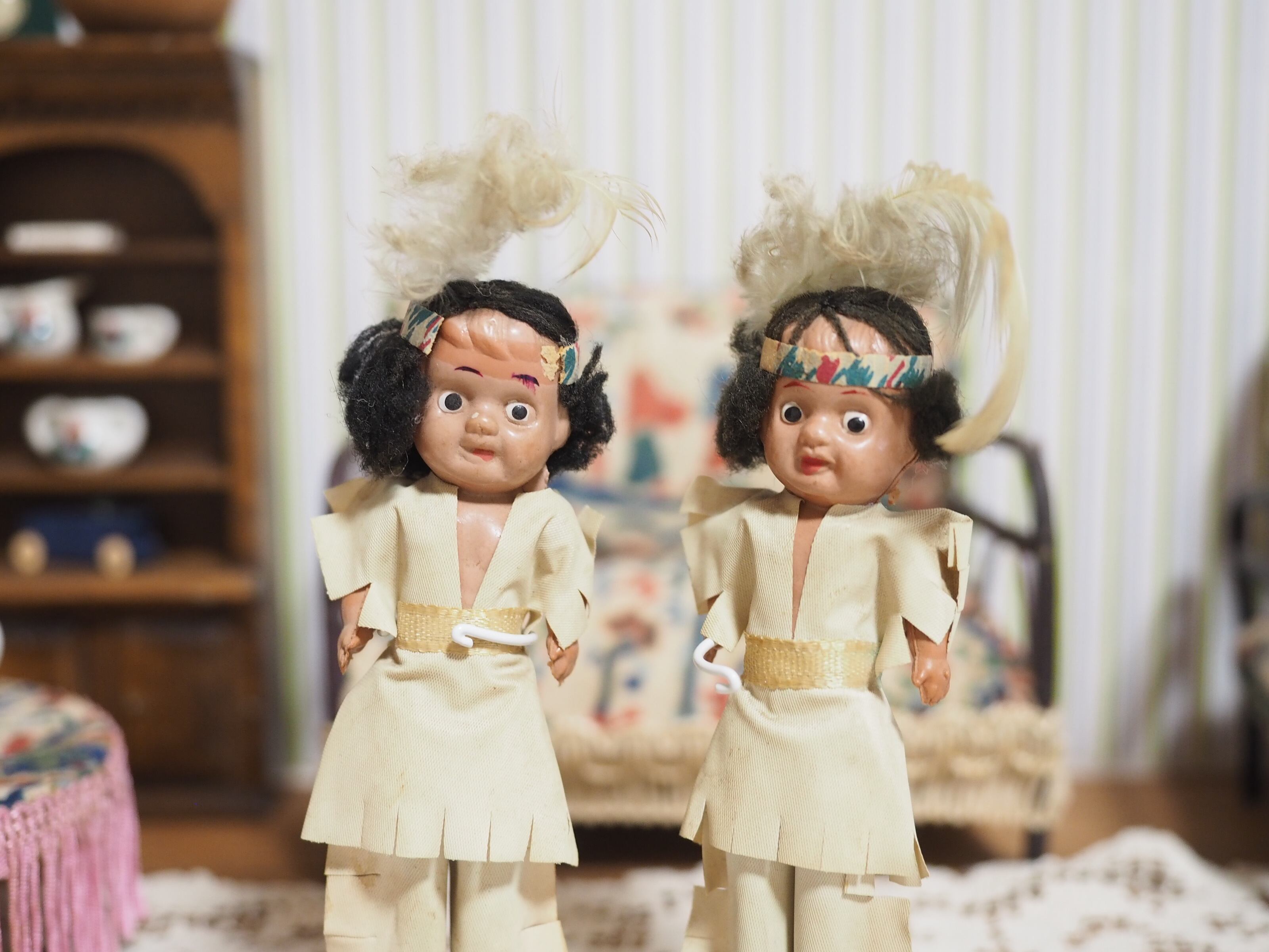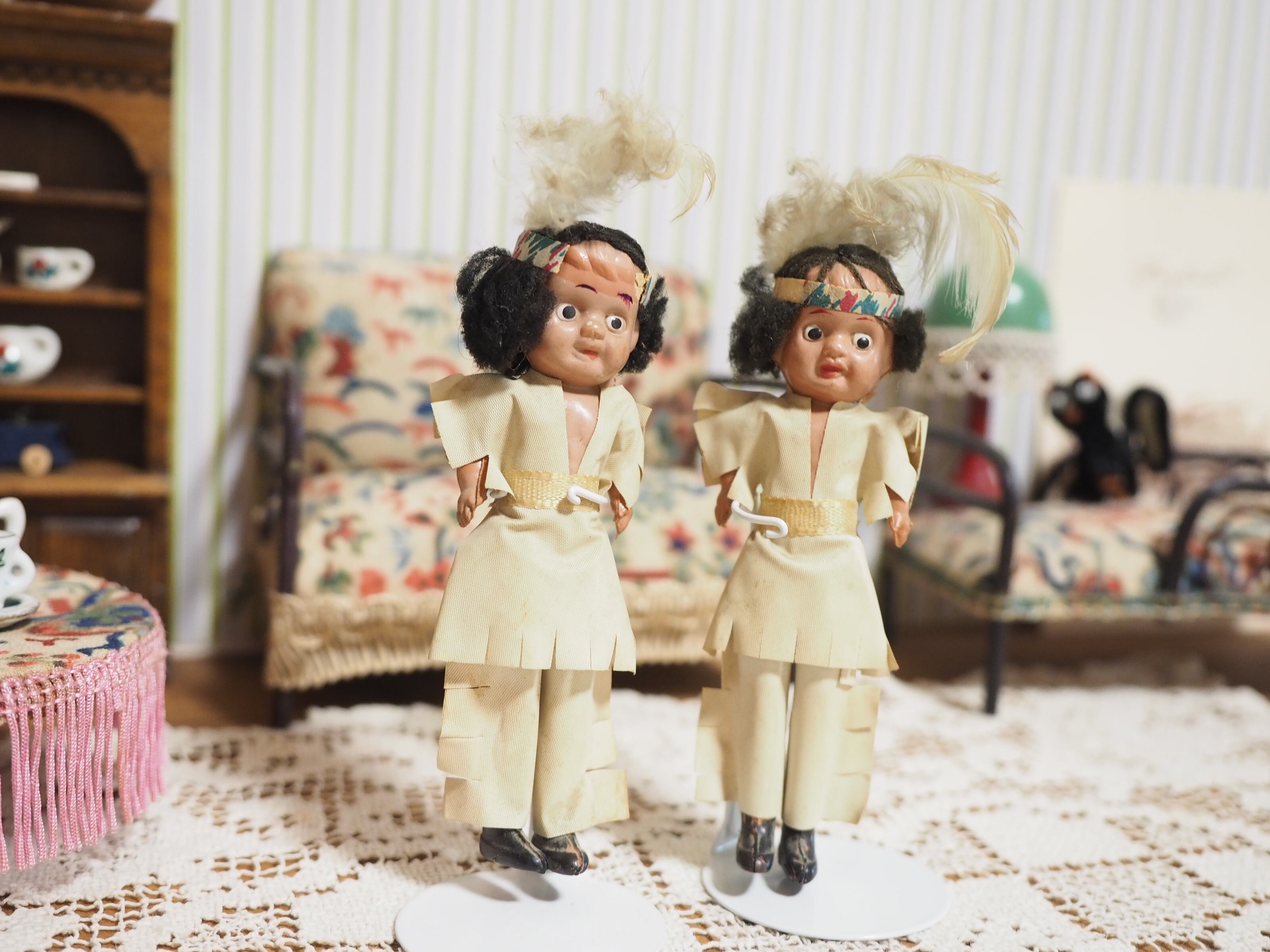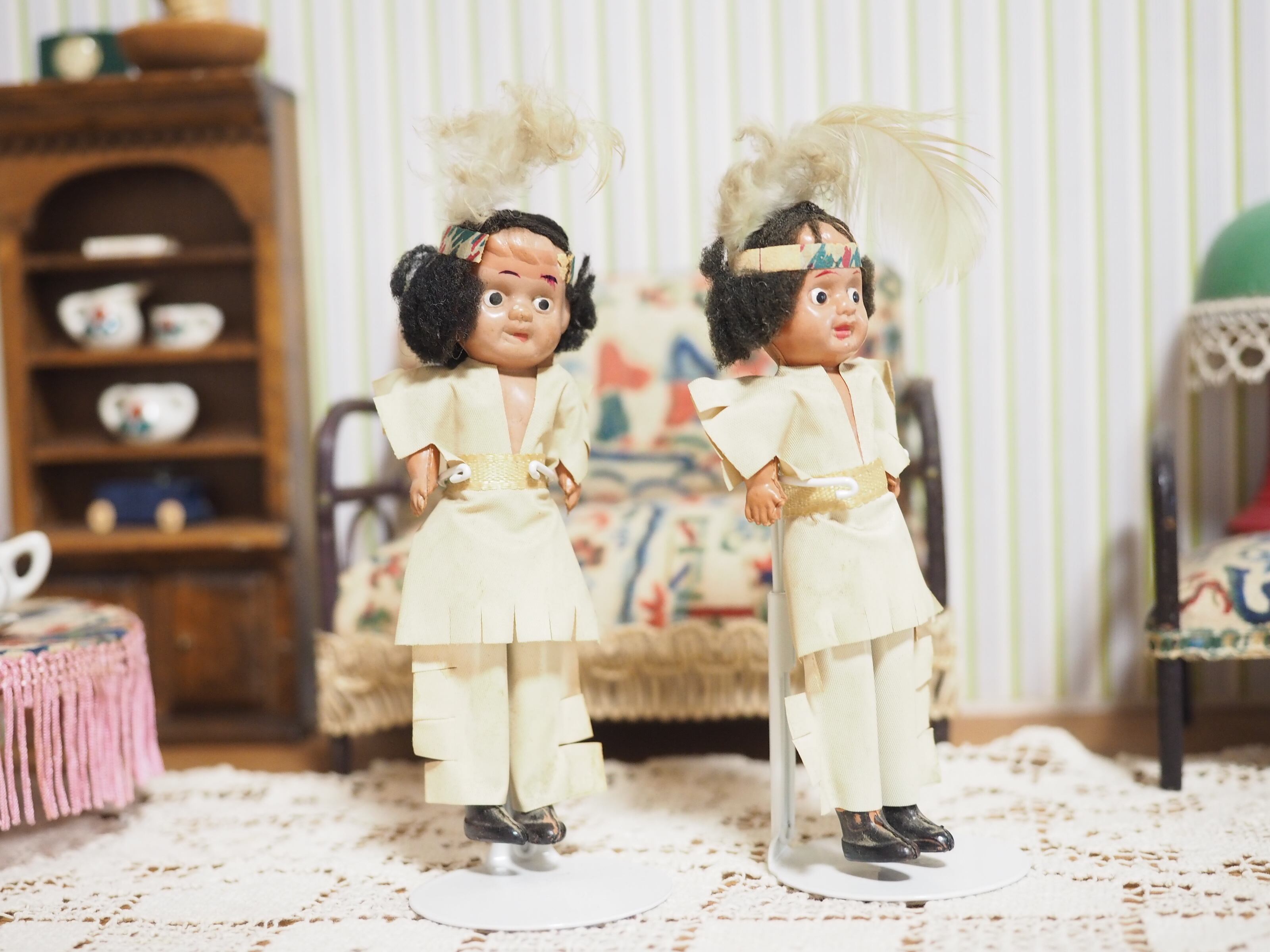 浅黒い肌に短い腕、かわいいインディアンの男の子2体セットです。