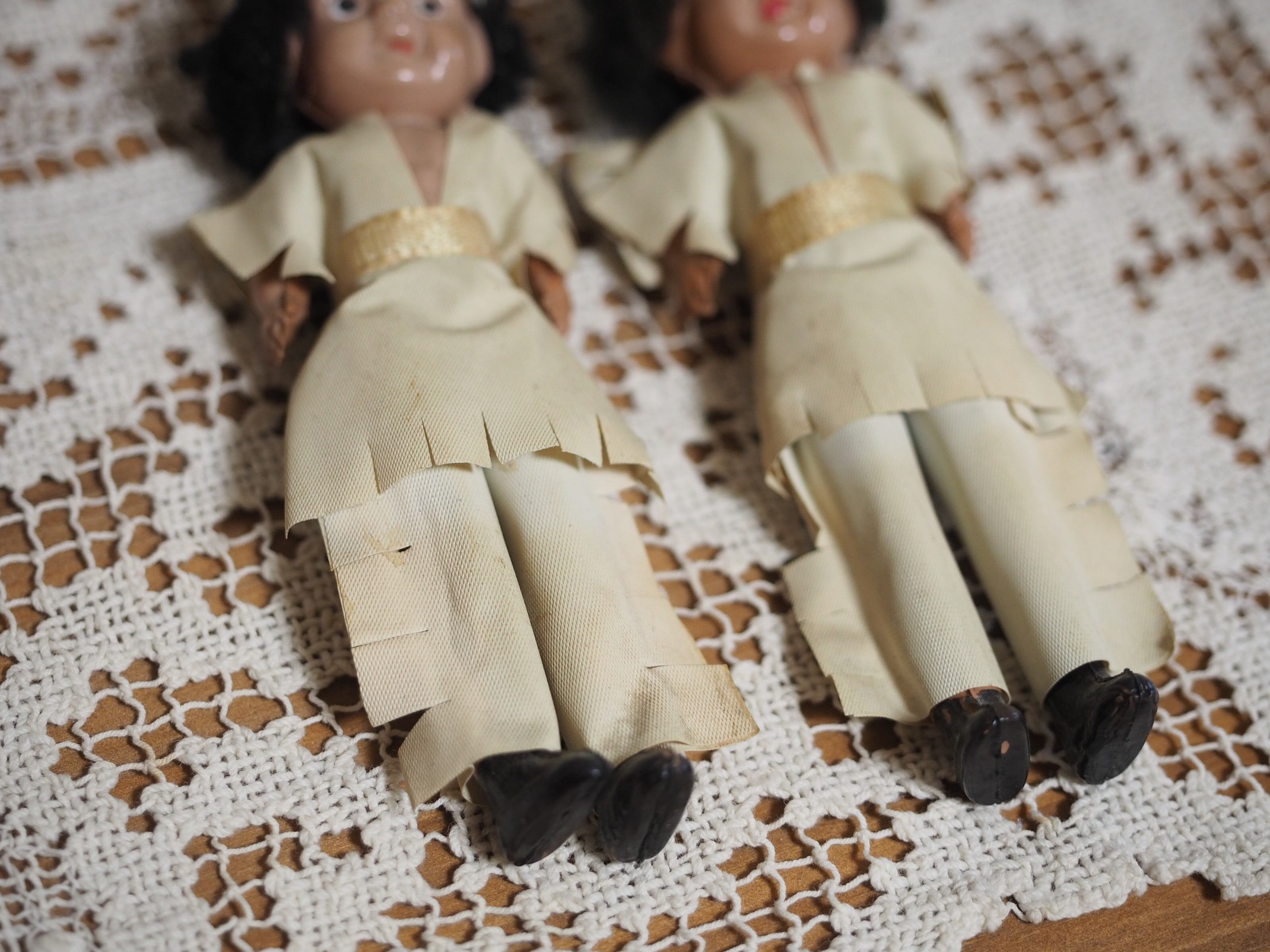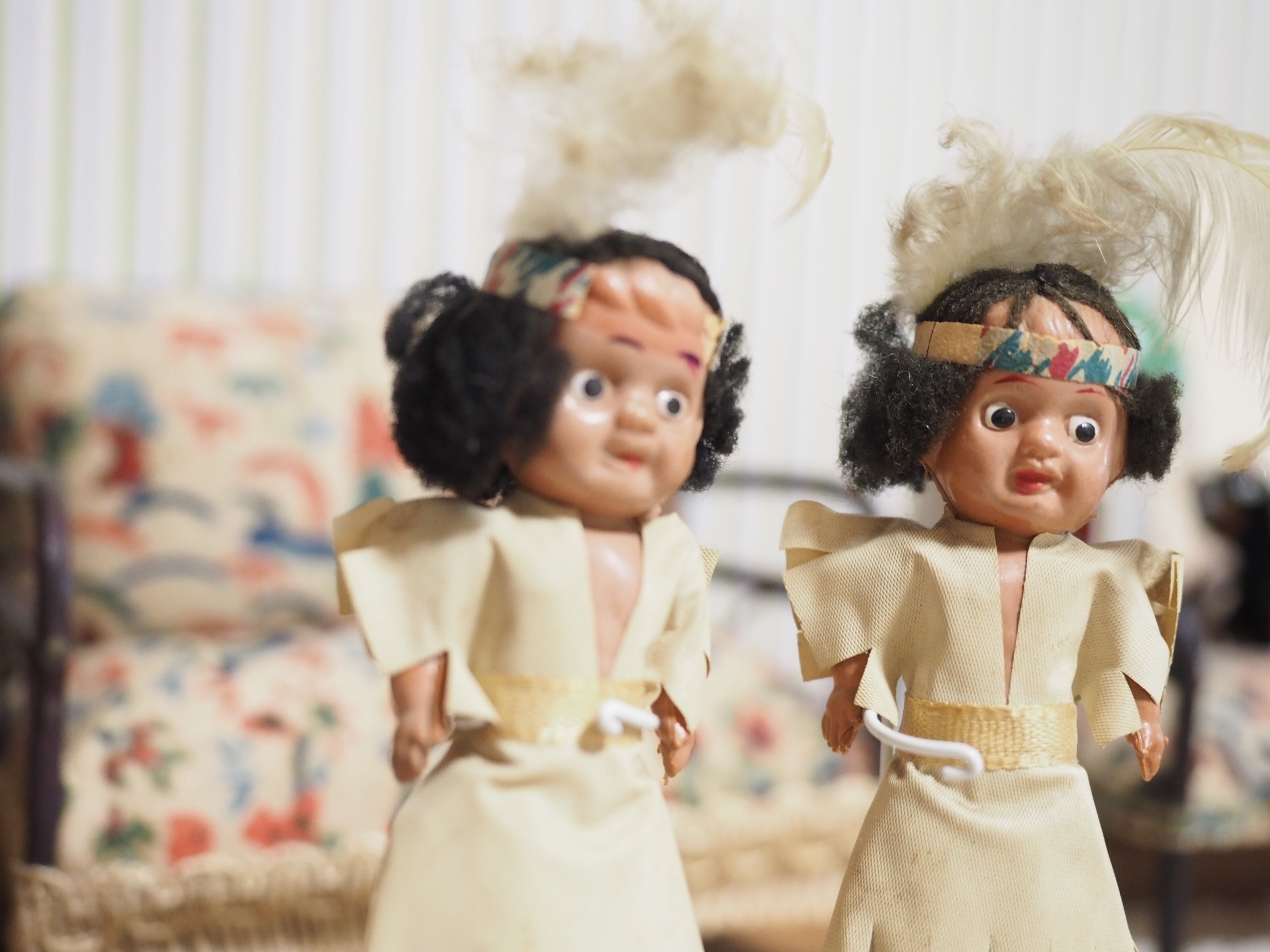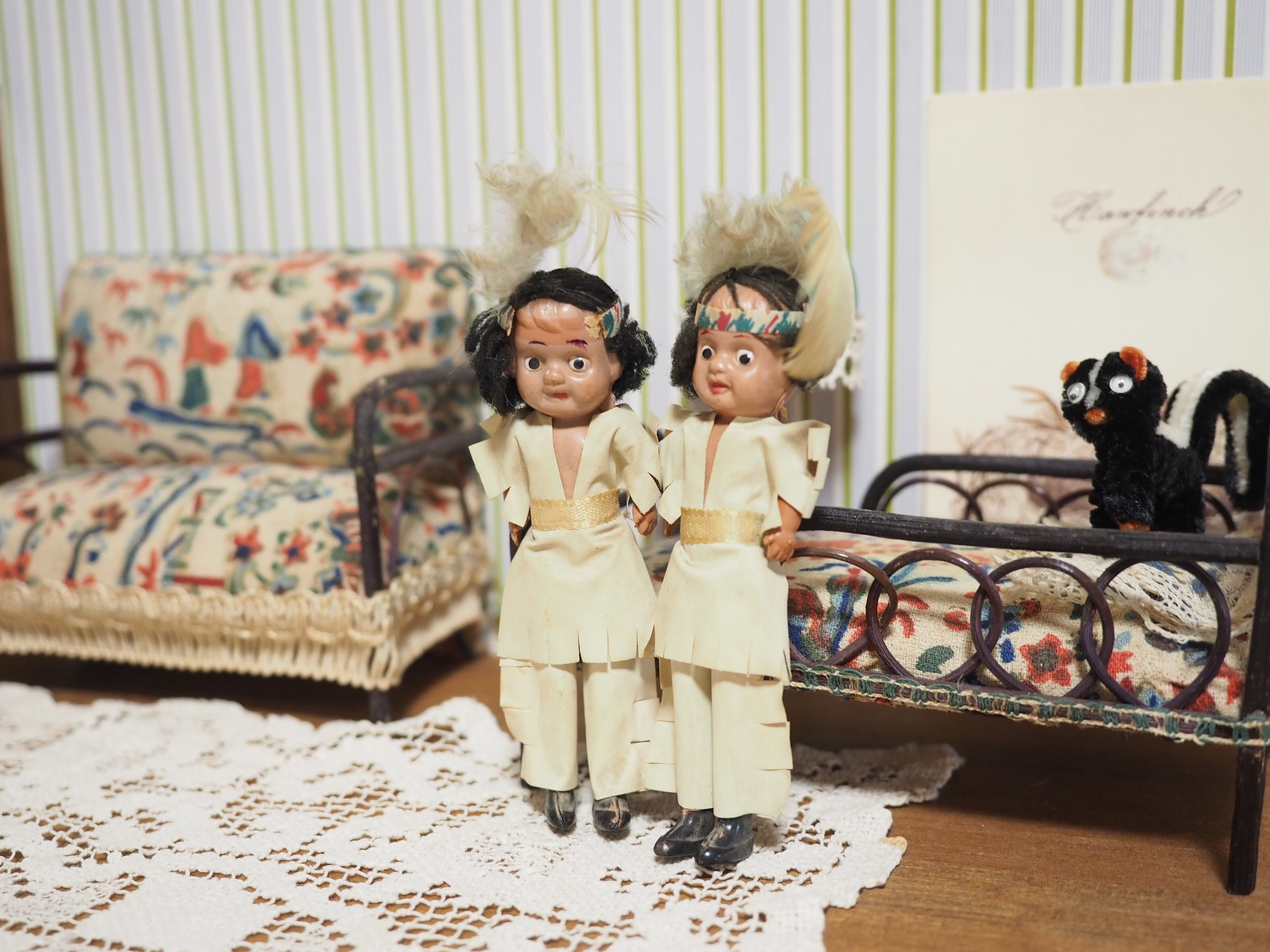 浅黒い肌に短い腕、かわいいインディアンの男の子2体セットです。