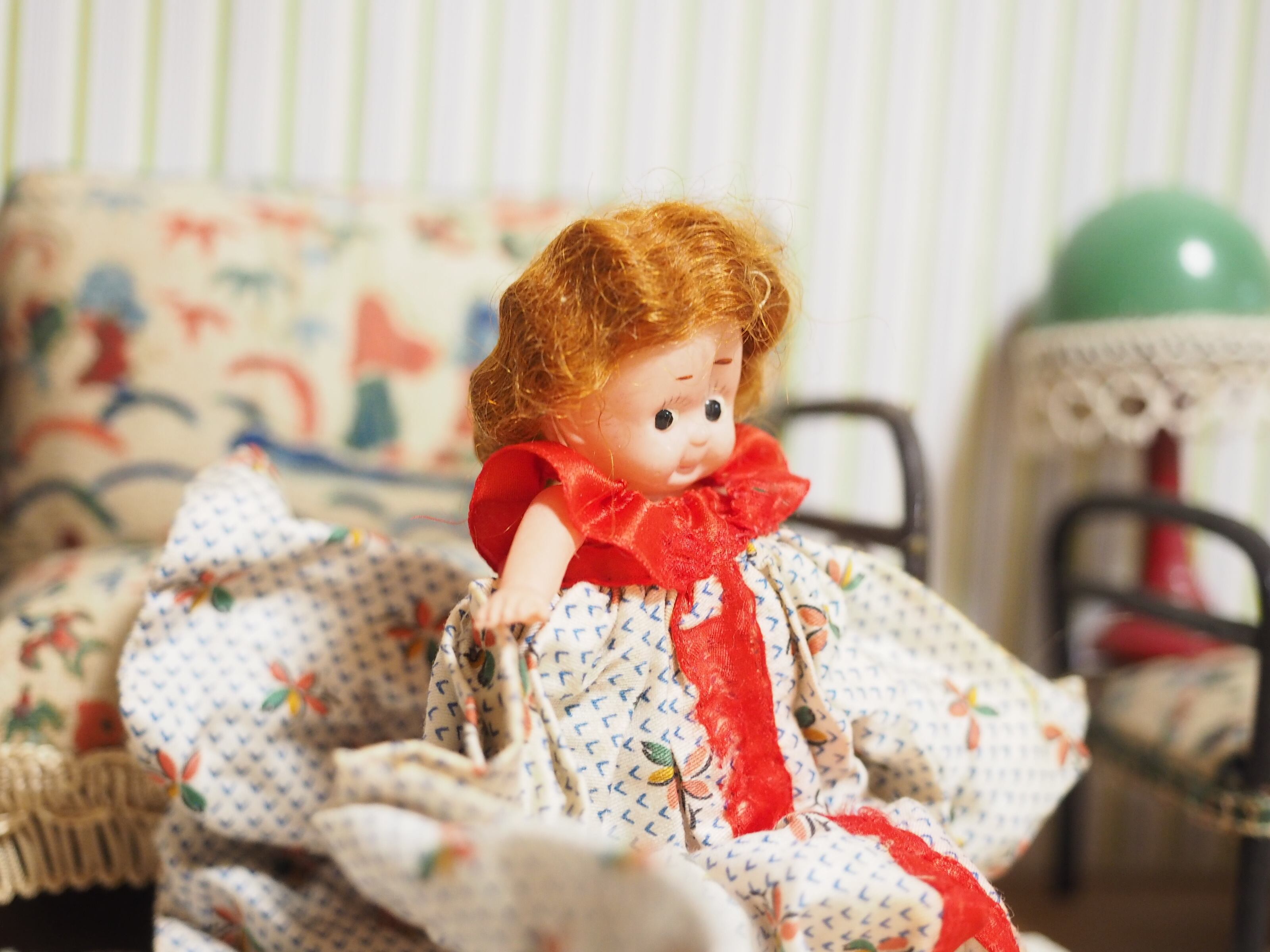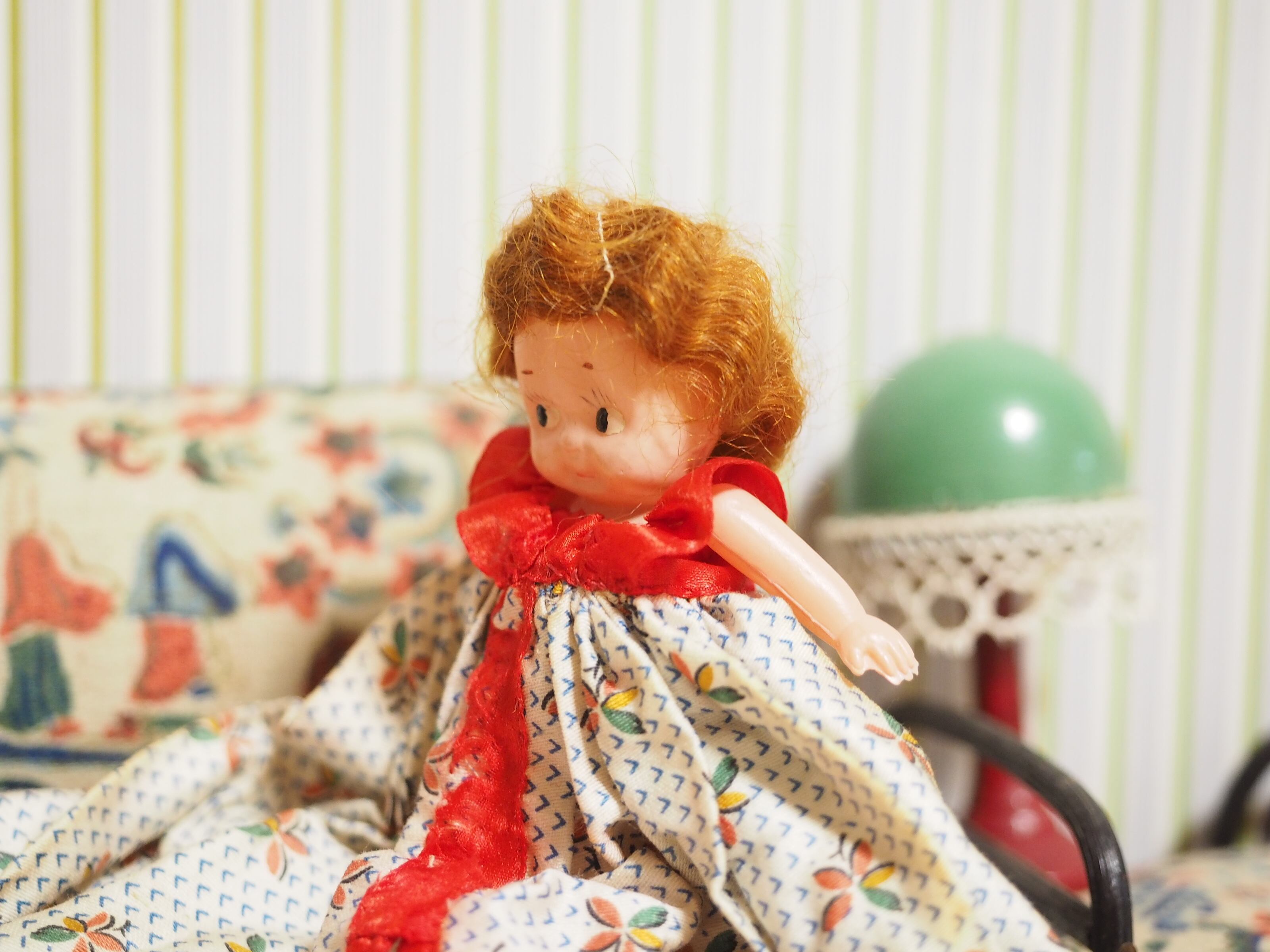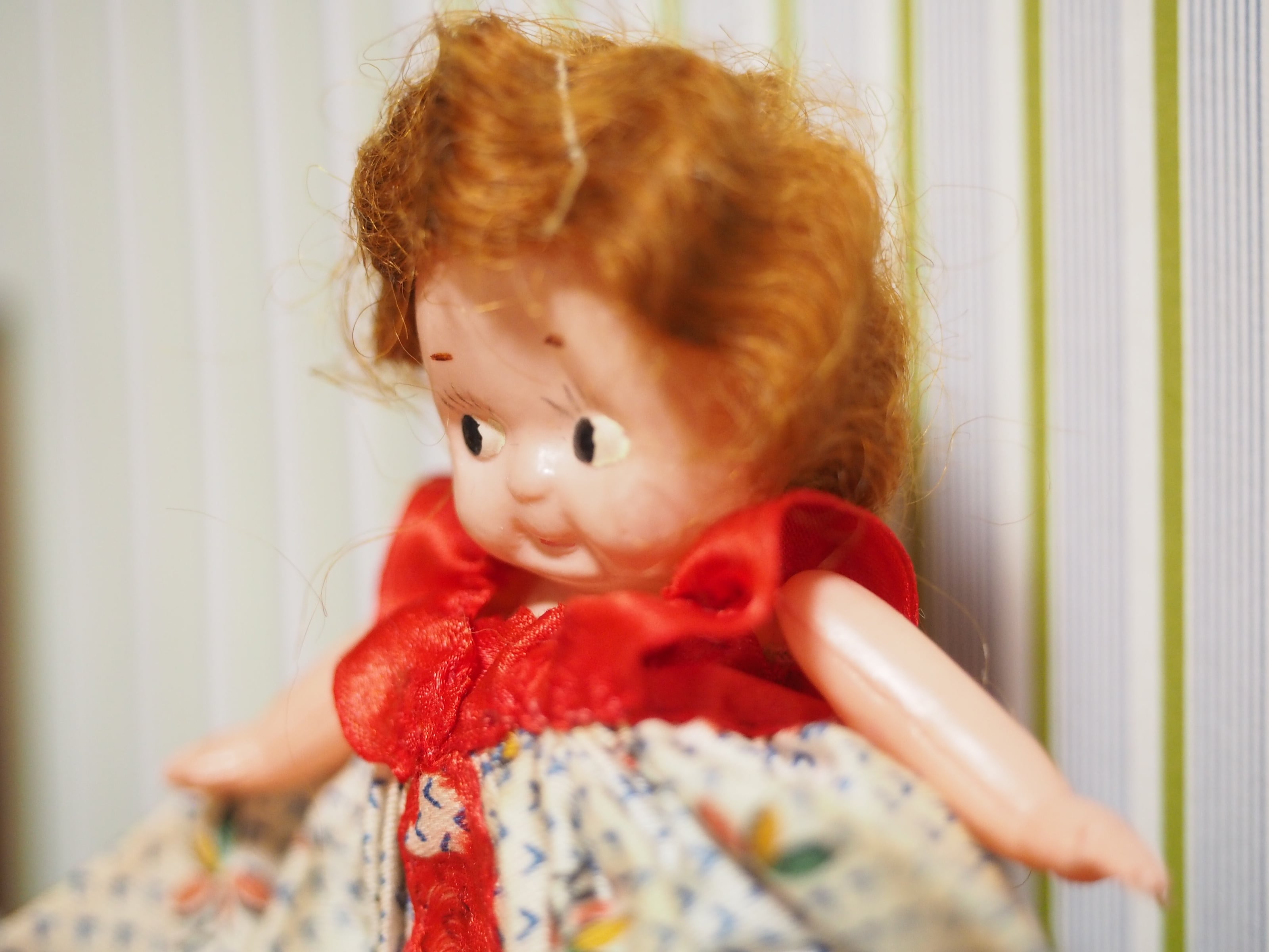 花柄ワンピースのキューピー ジャパンセルロイド(割れ・へこみあり)