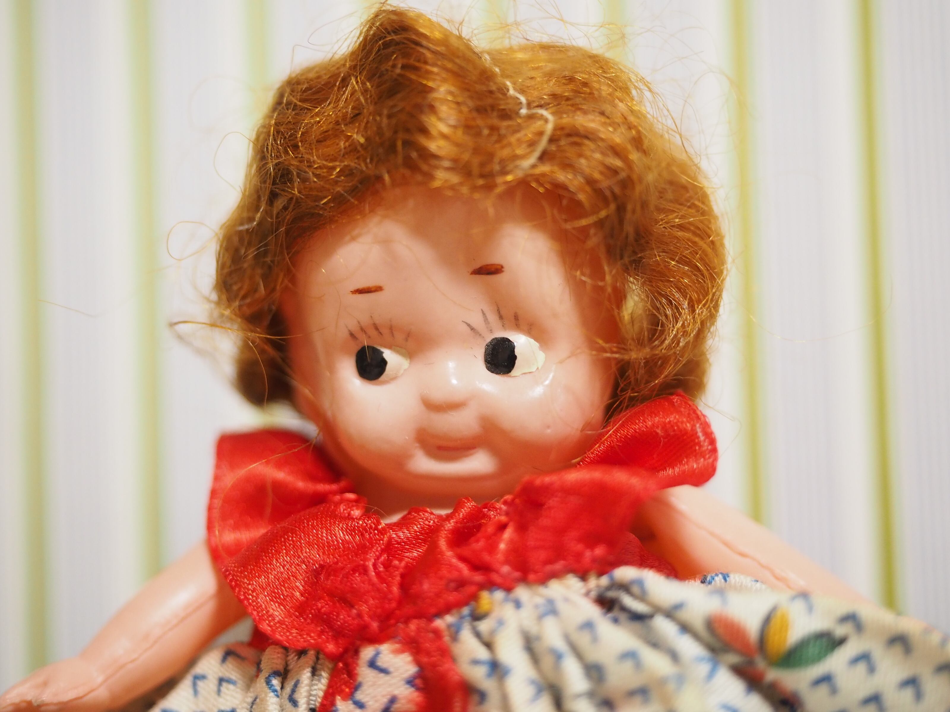 1913年に吹き込みによる人形が製造され、たくさん作られたセルロイド、1954年頃までのものと思われます。