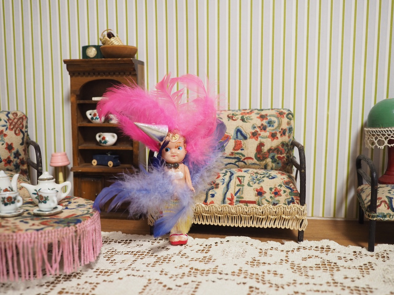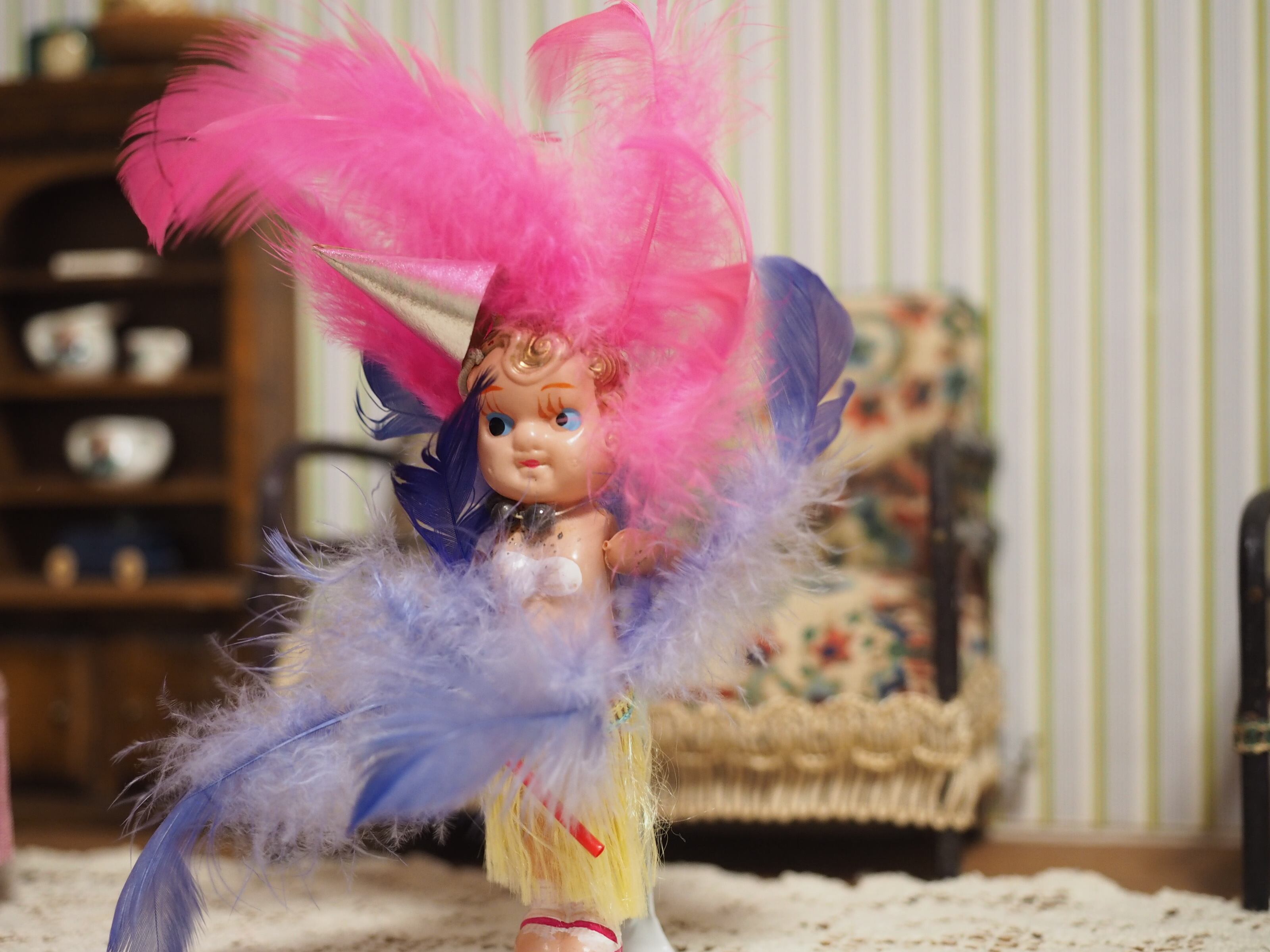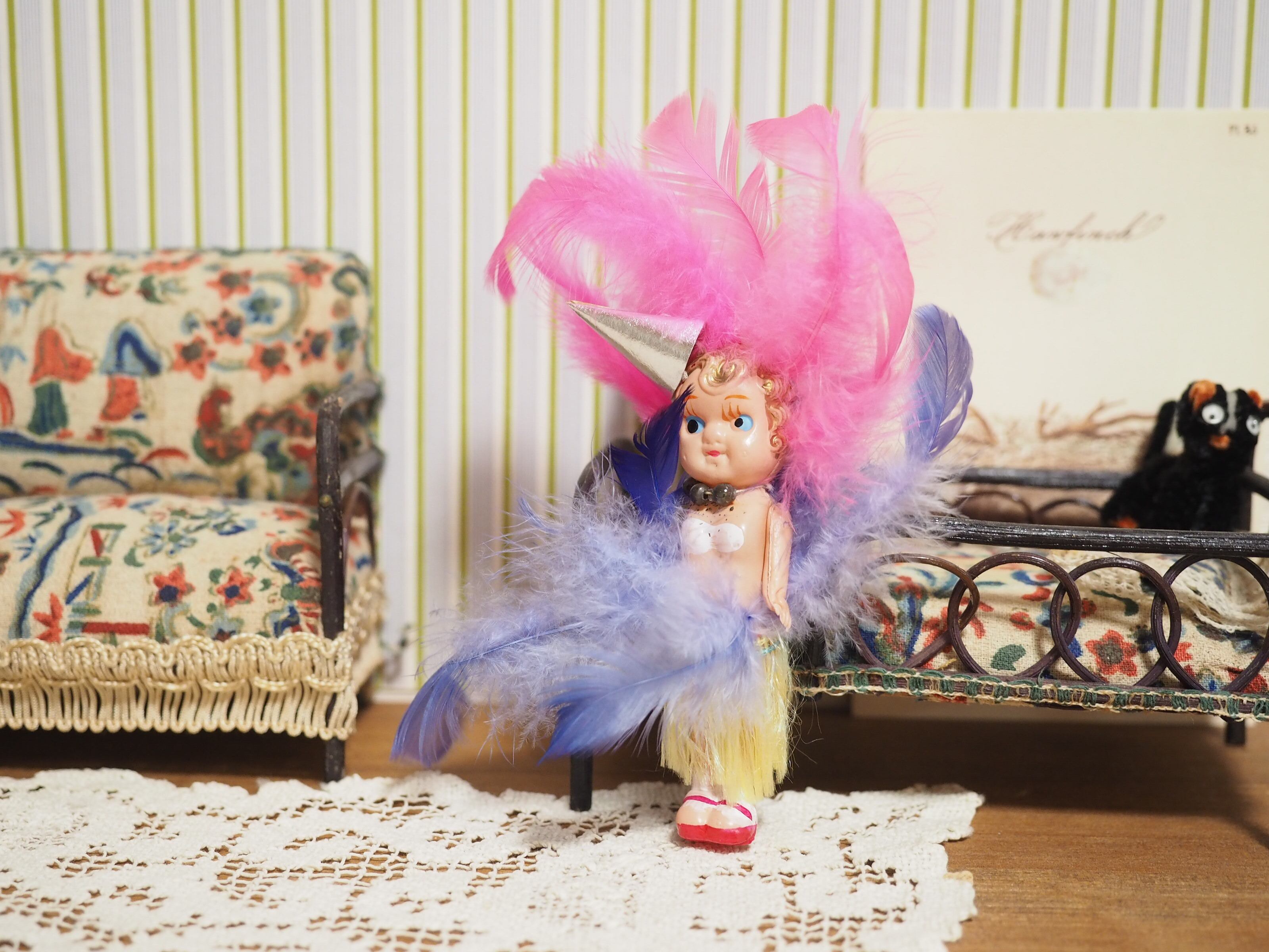カラフル羽飾りのカーニバルドール ジャパンセルロイド