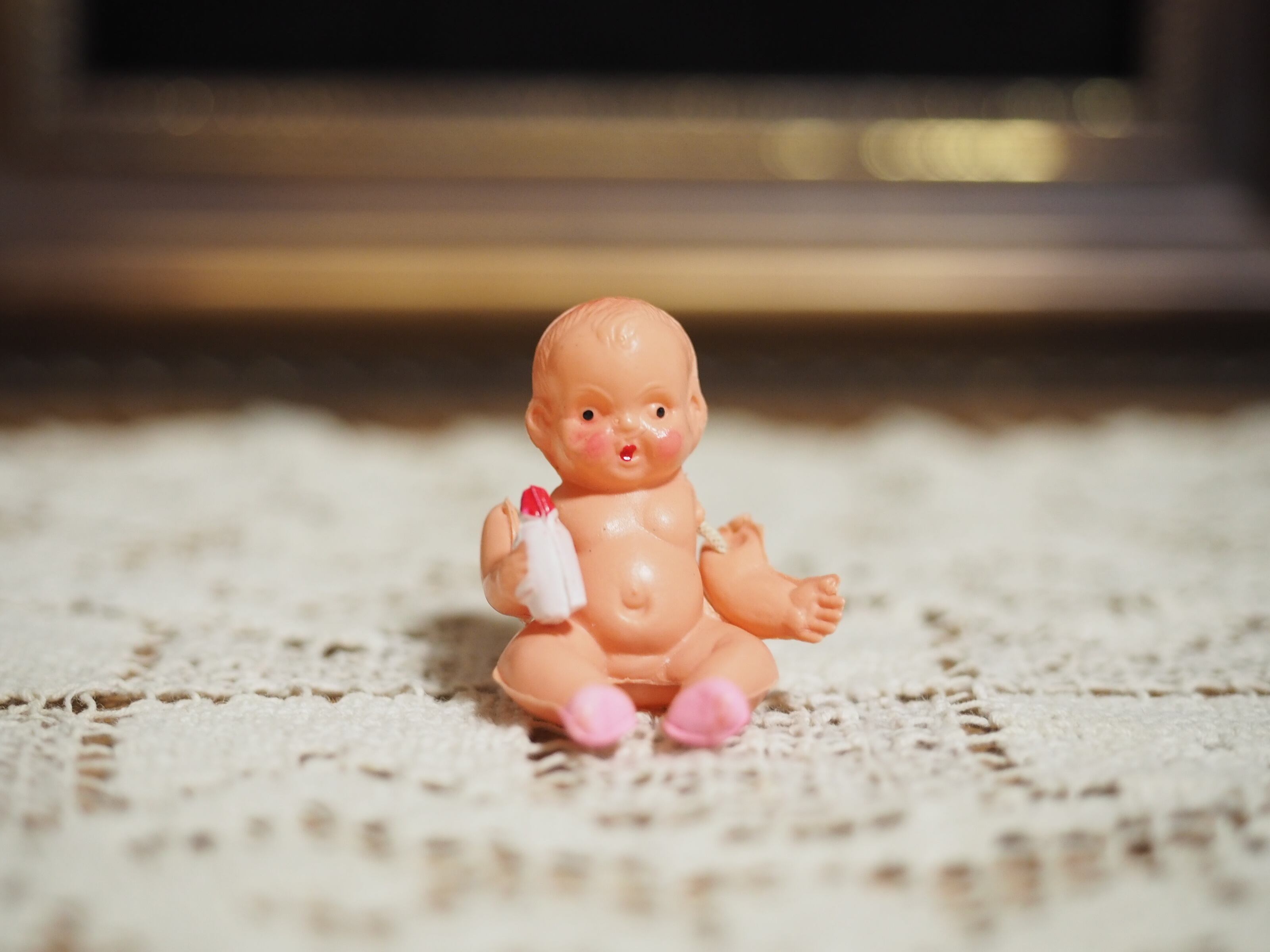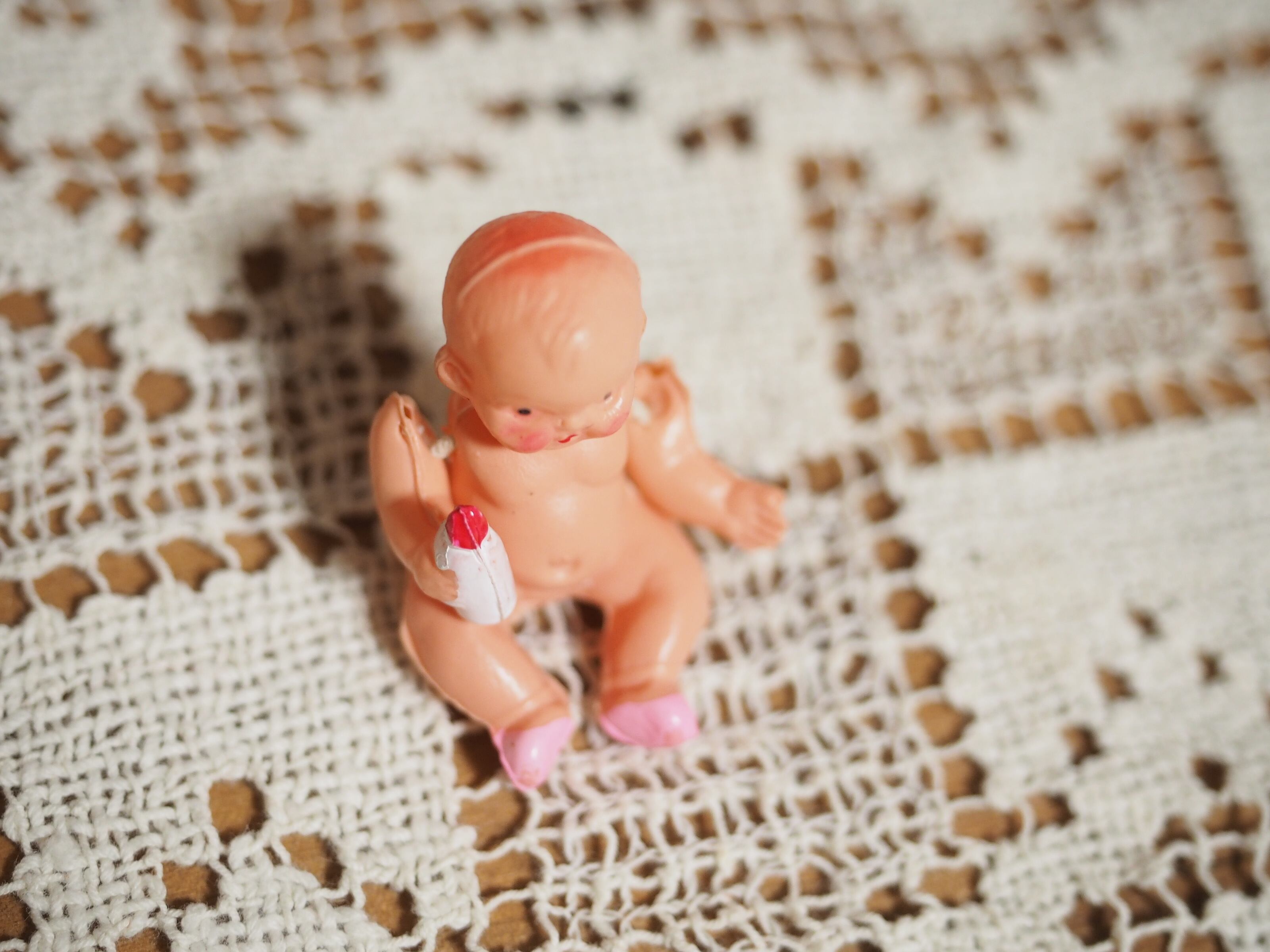 哺乳瓶を持った小さなセルロイドベビー(C)ジャパンセルロイド(へこみあり)