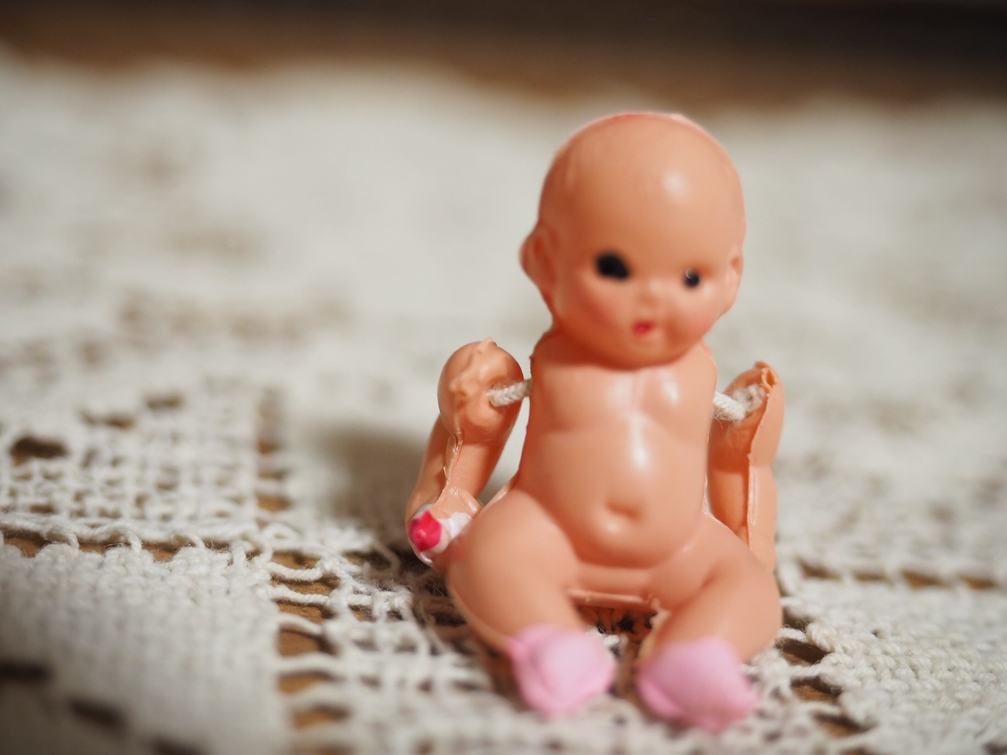 感動するような軽さと、素朴な温かみのあるセルロイドのお人形です。