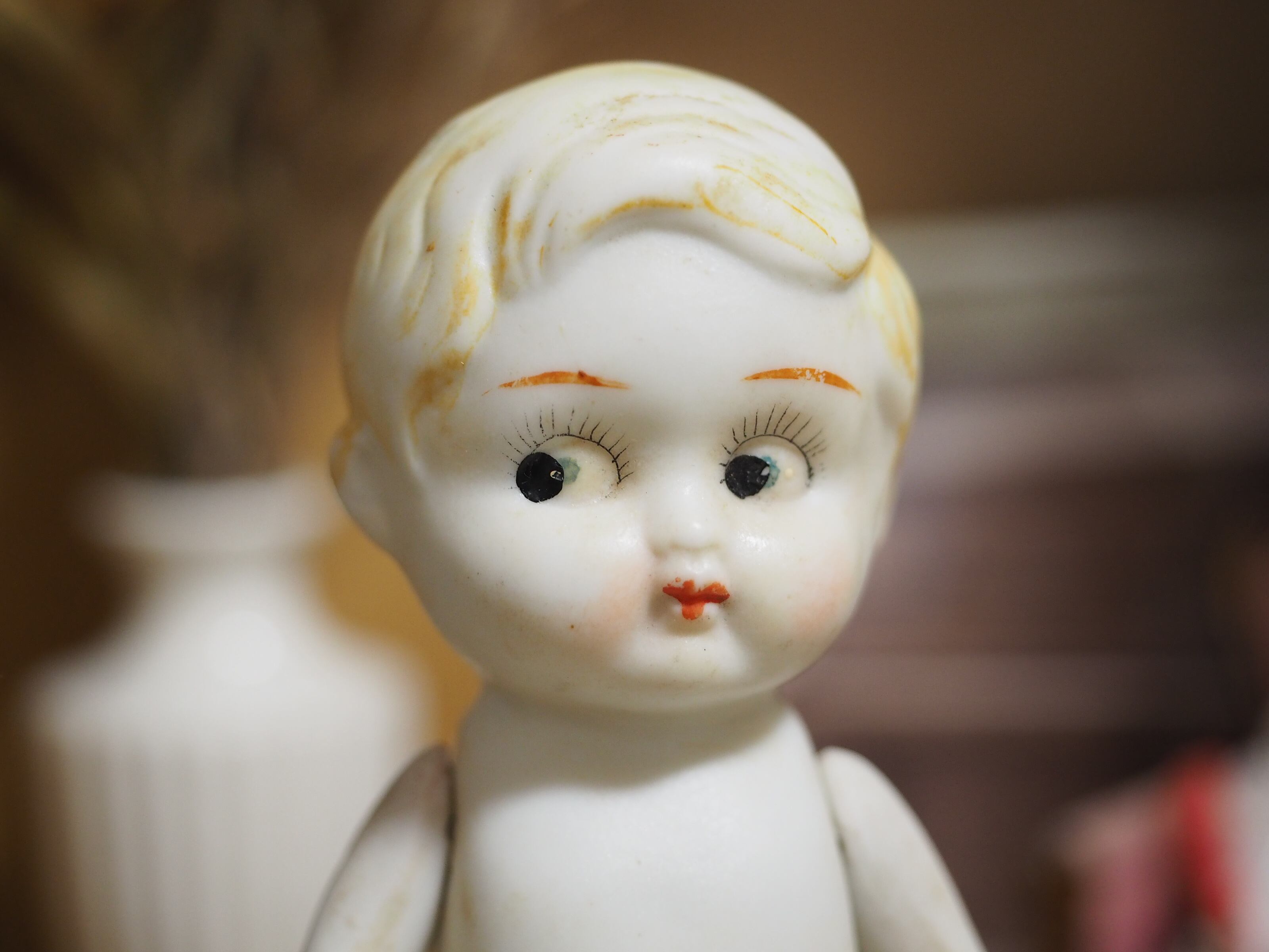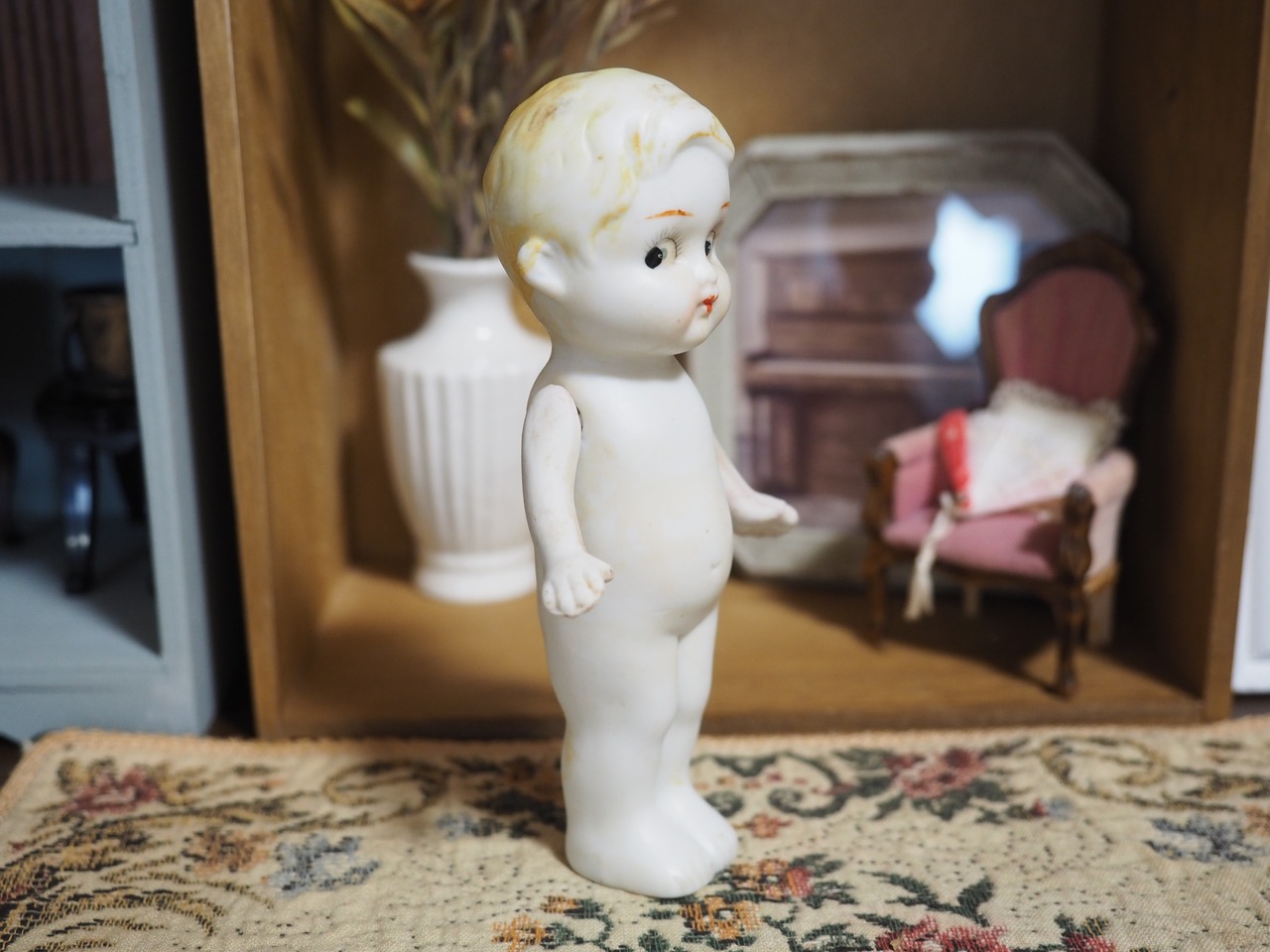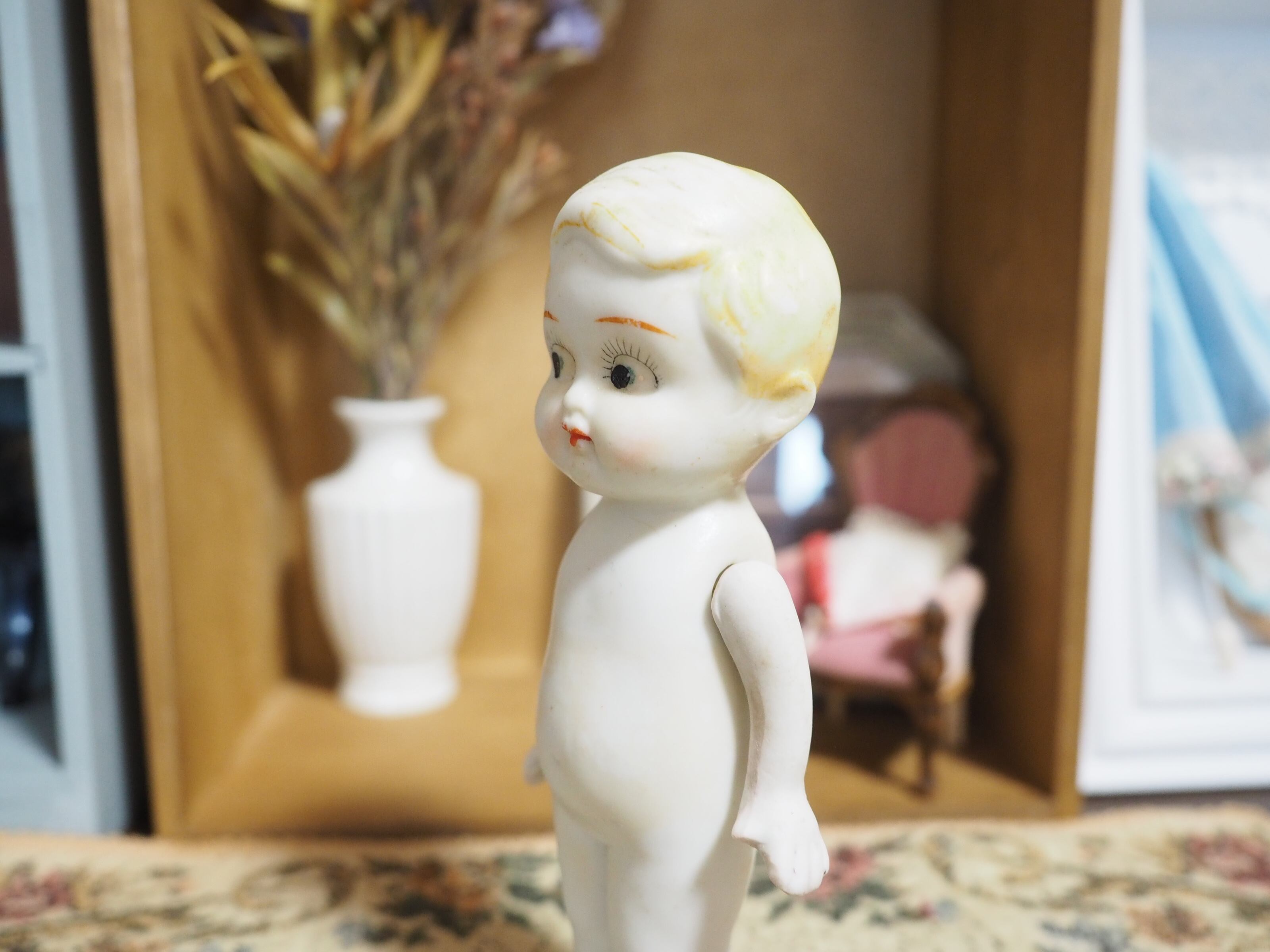 頭が大きくふっくらしたお顔にキュートな目元、非常に愛らしい男の子のジャパンビスクです。