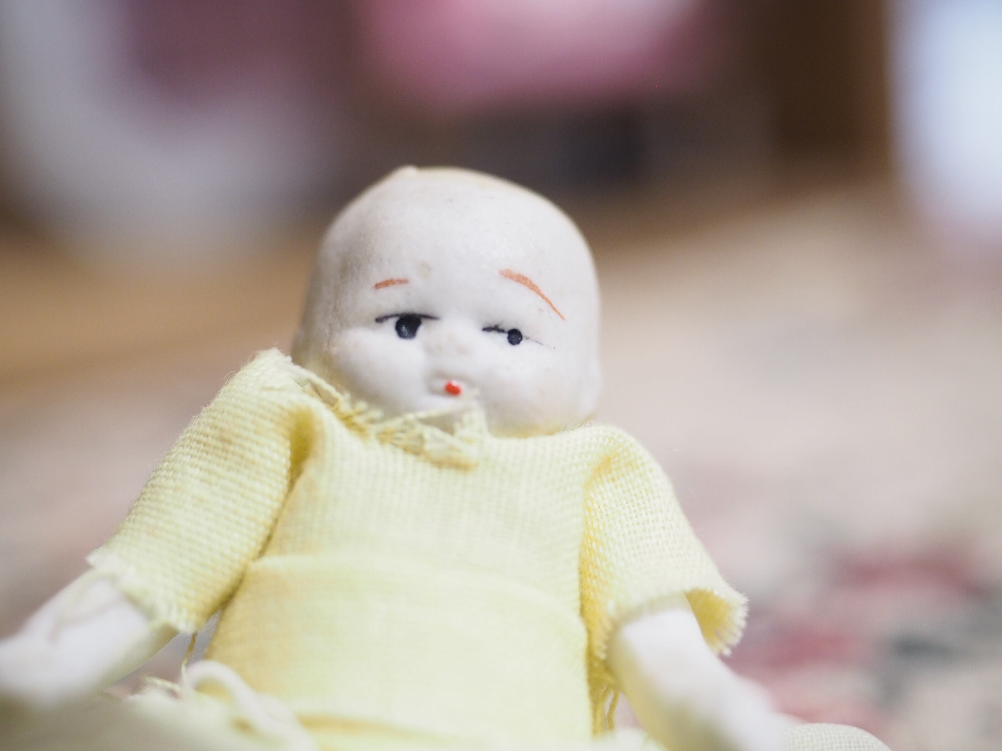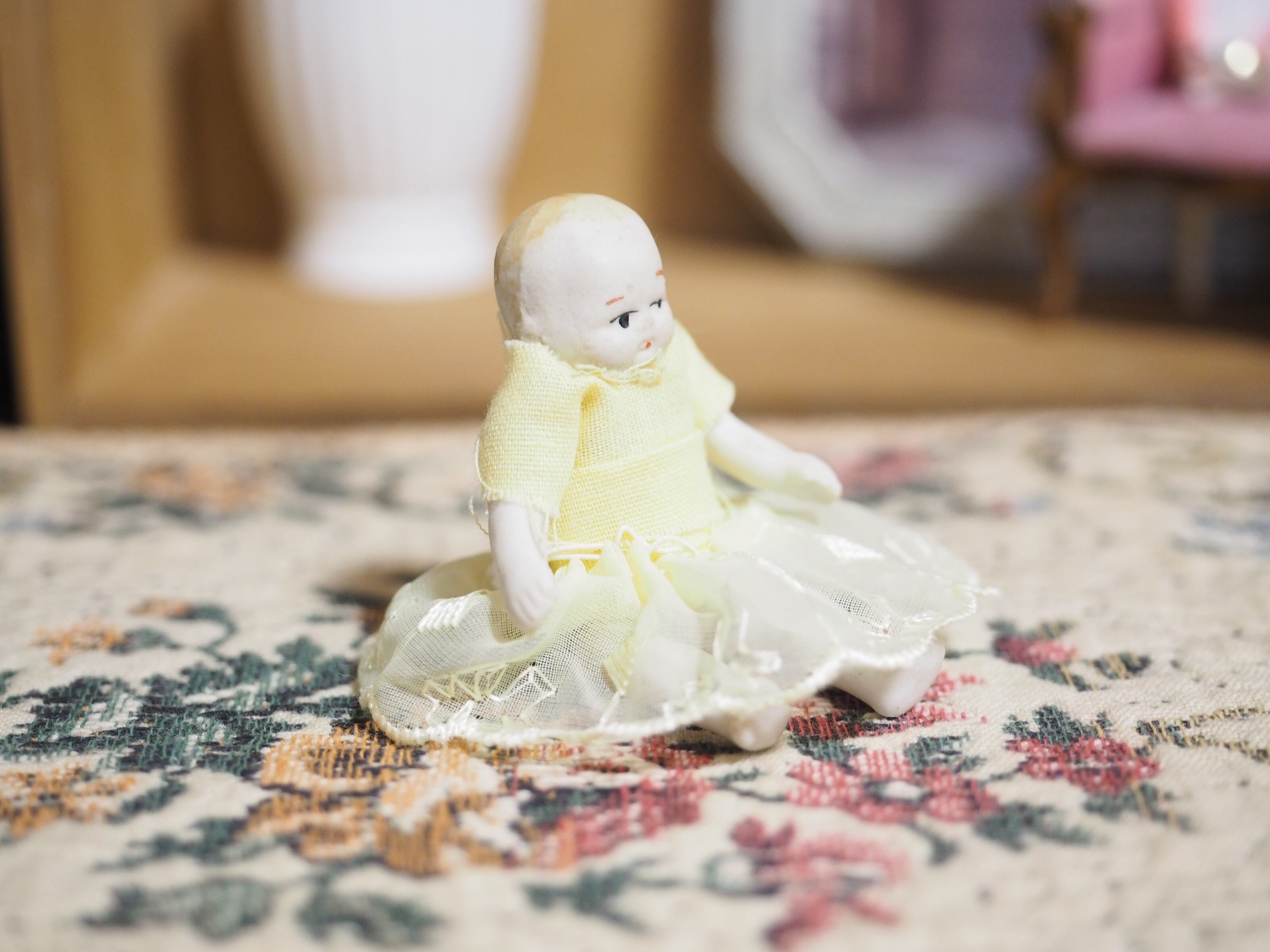 かわいい坊主頭とイエロースカートのビスクベビードールです。