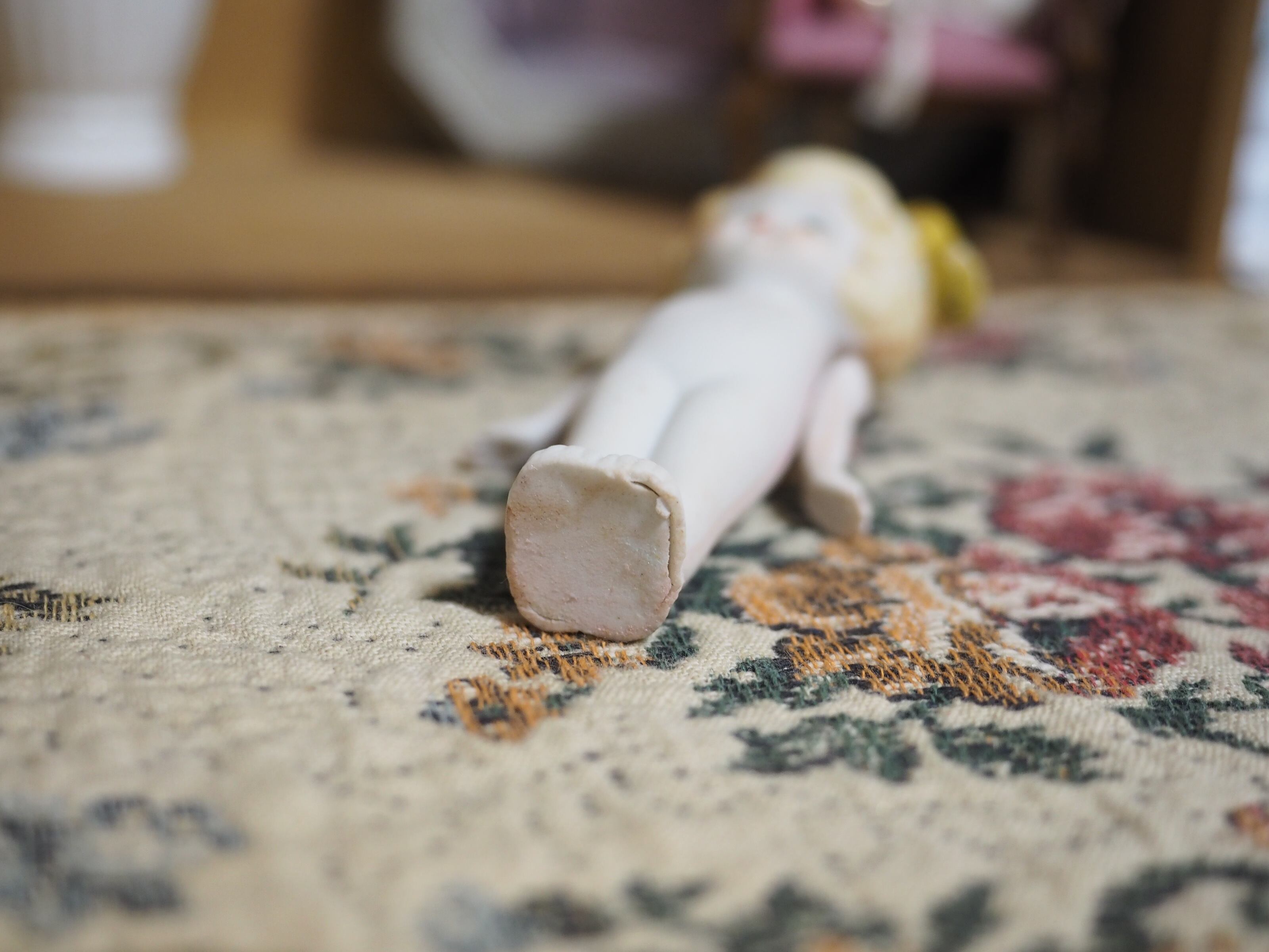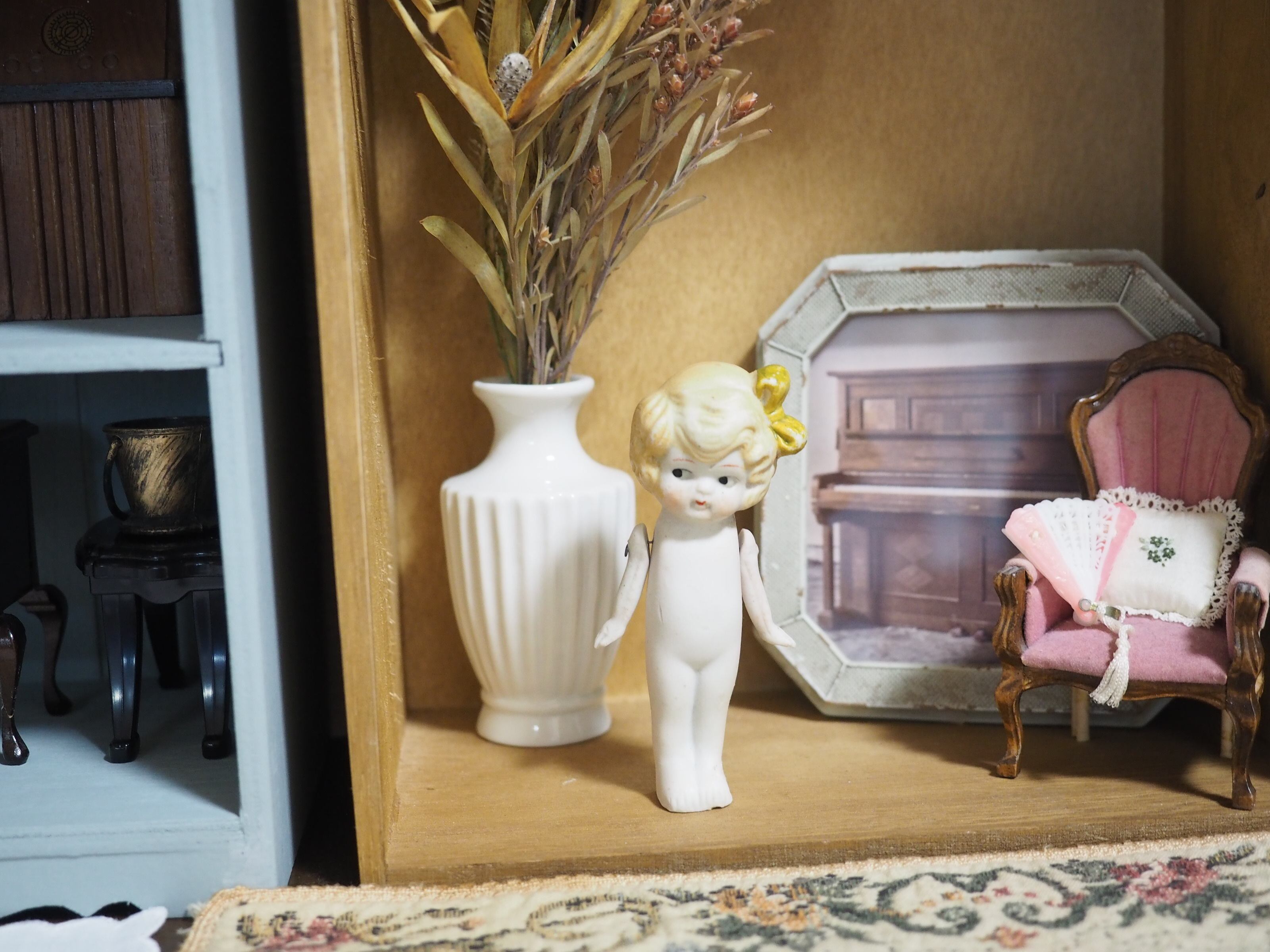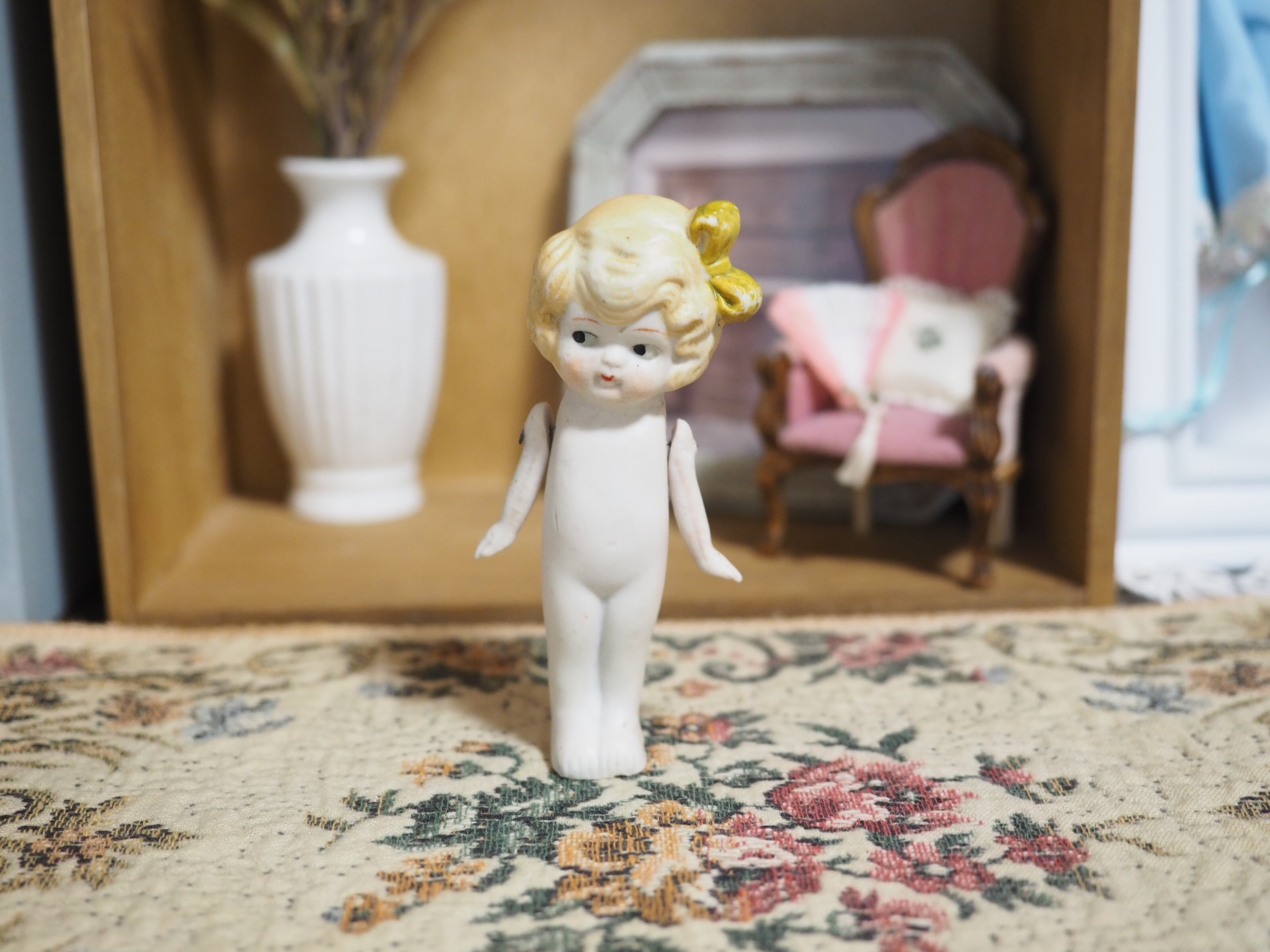 ふんわりしたヘアは淡く上品にペイントされ、大きな縦リボンはくるんと巻かれたしわ、形がとてもかわいいです(ペイント剥げあり)。