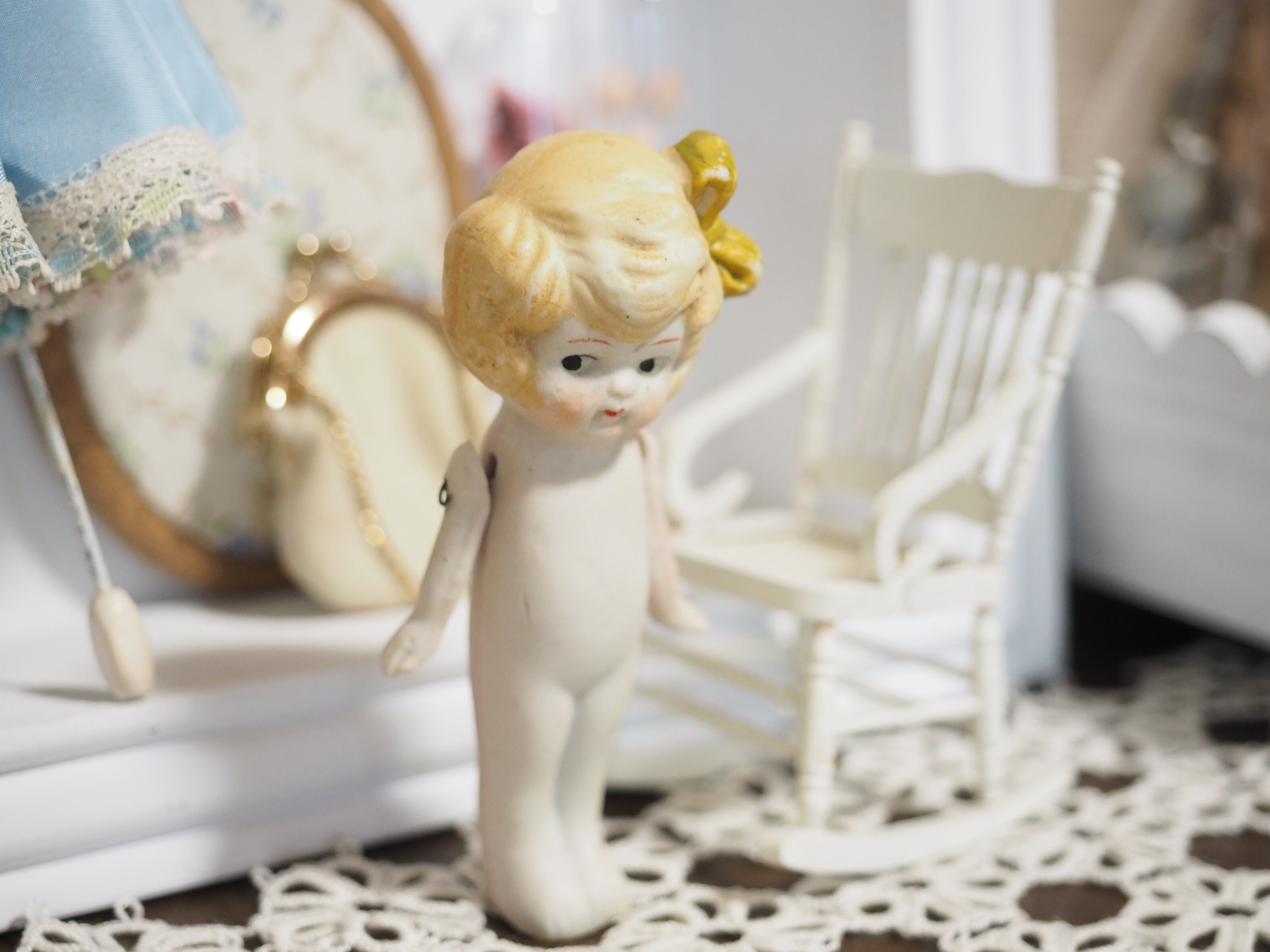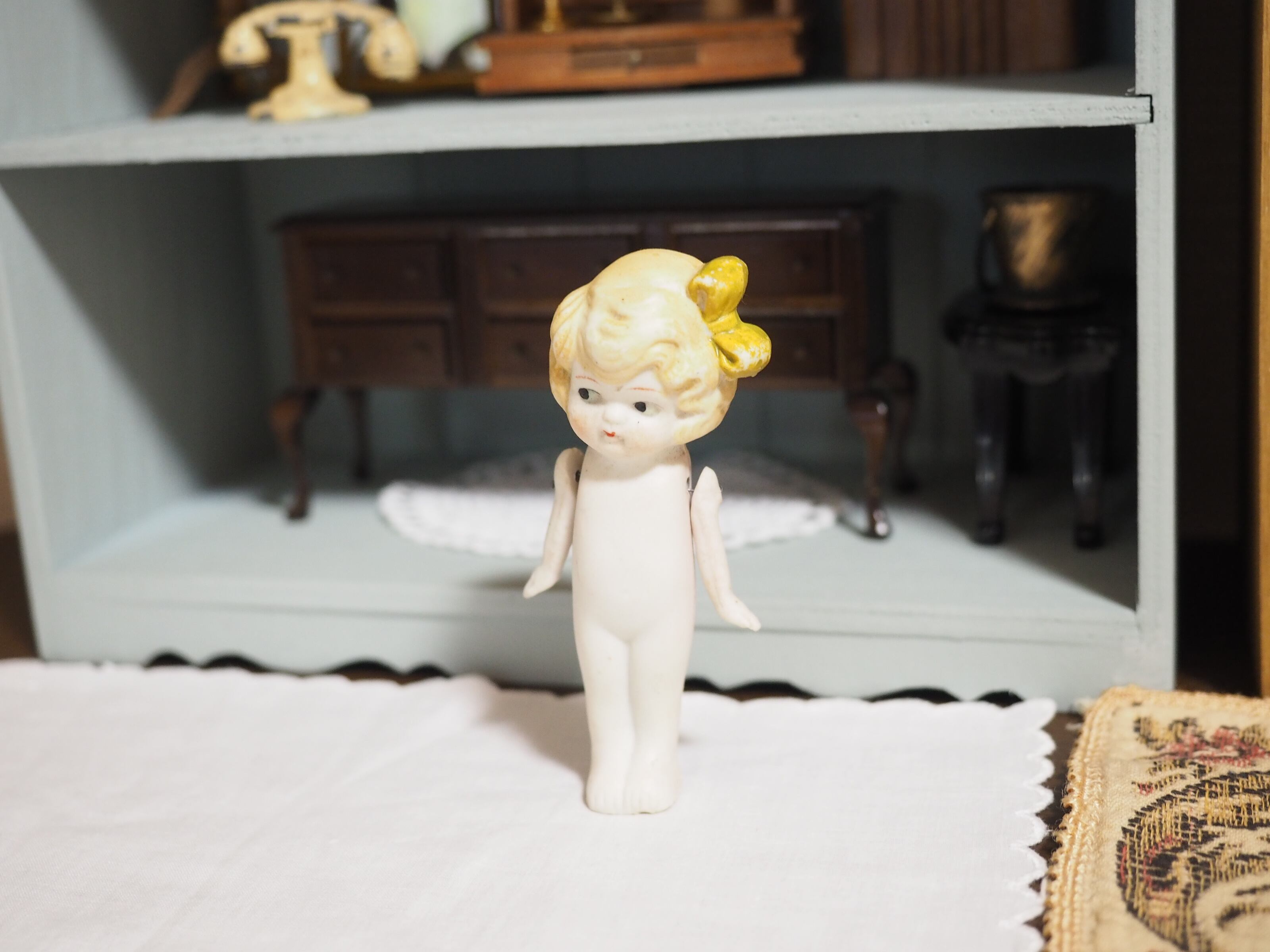 控えめに佇むような様子が素敵なビスクドールです。