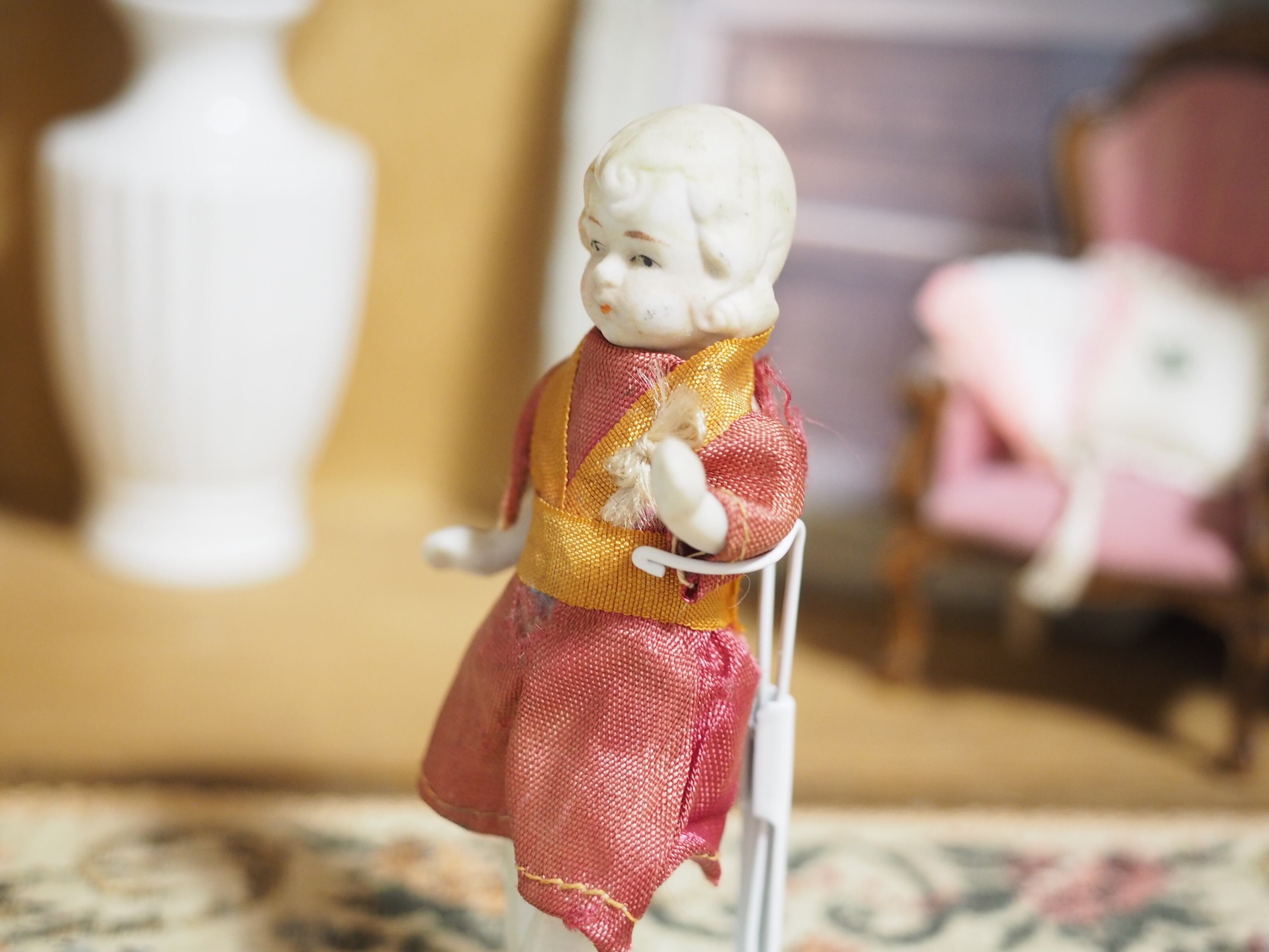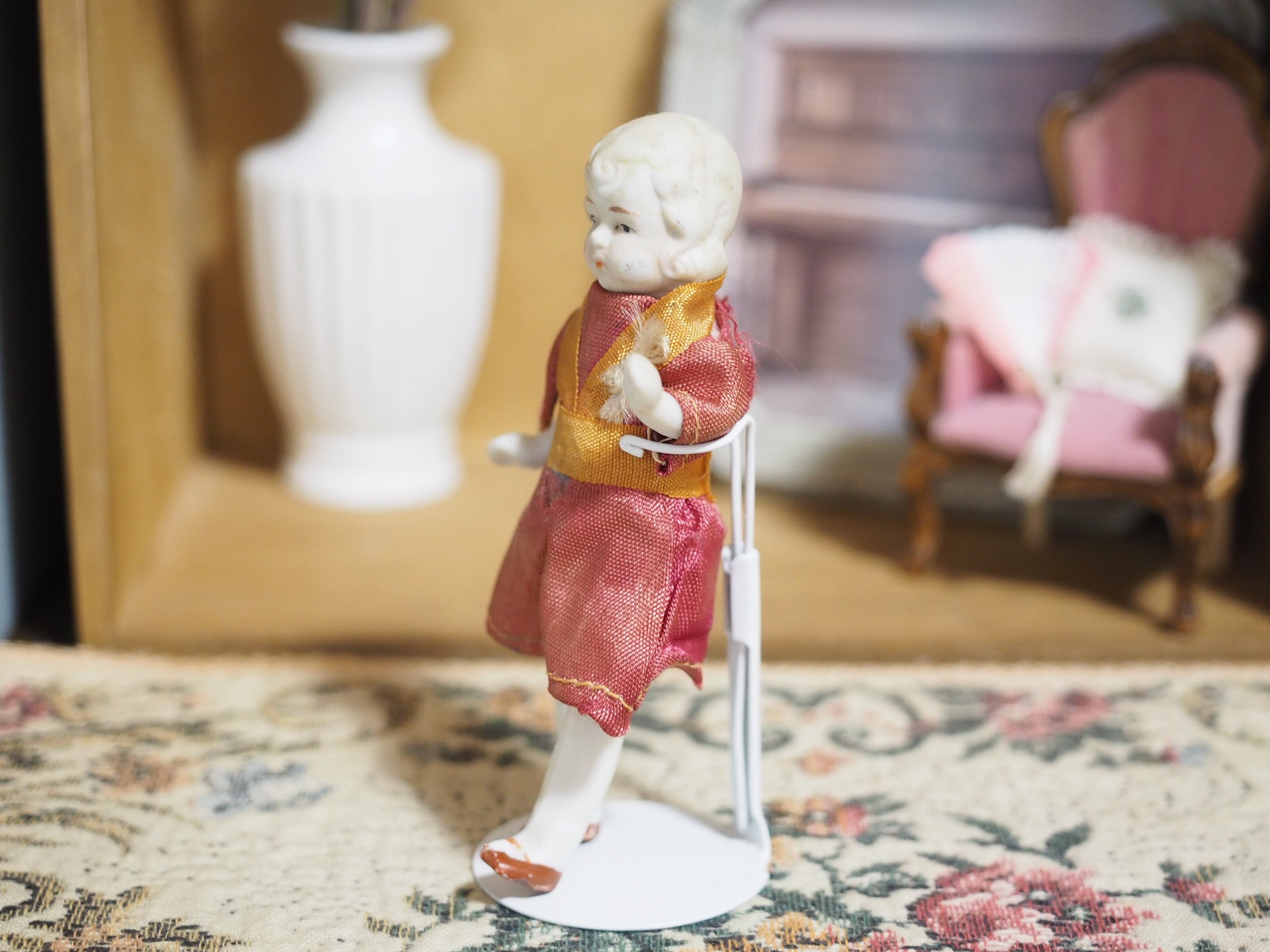 ヘアスタイルと相まって、高貴なかわいらしさのあるビスクドールです。