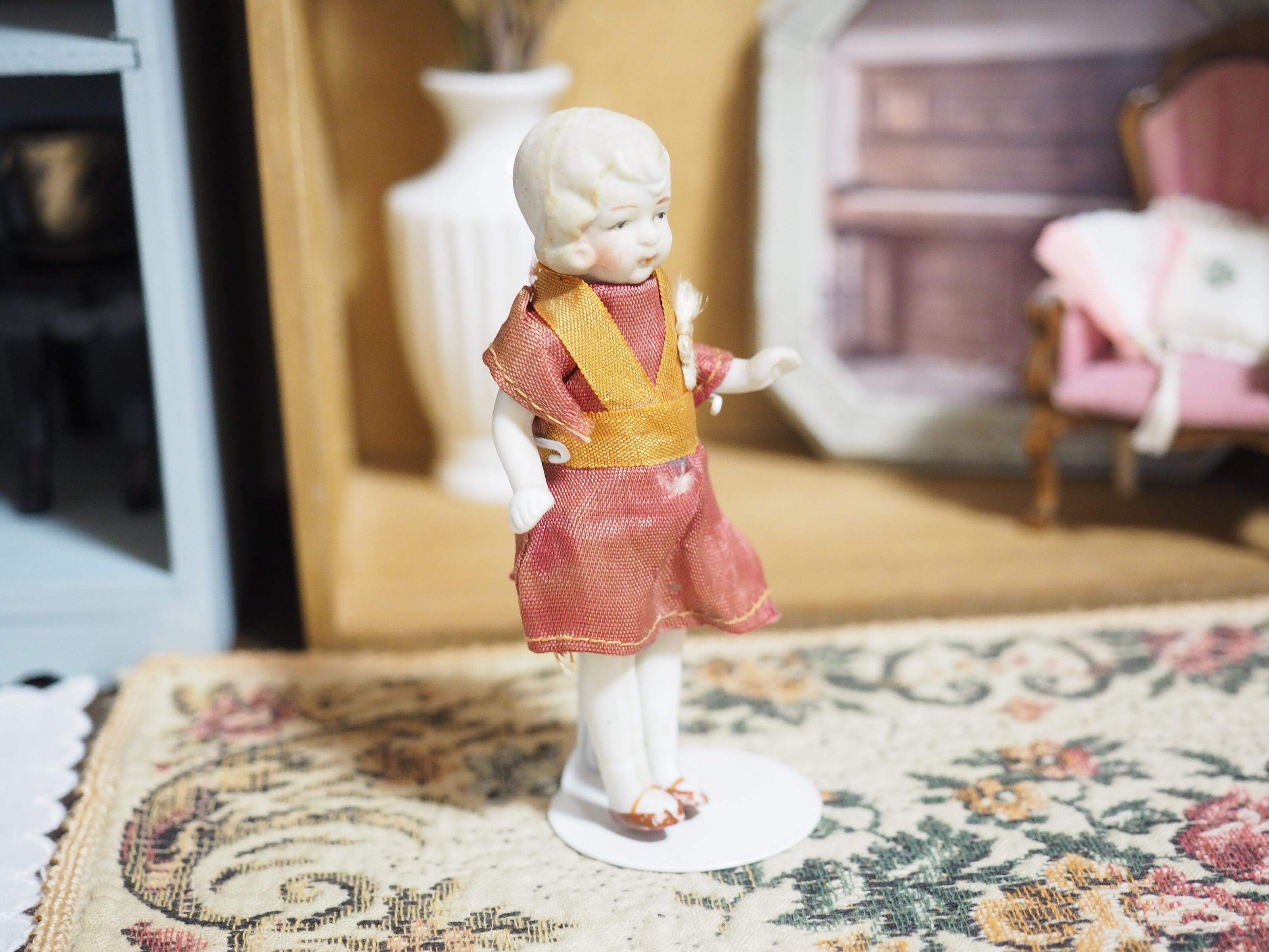 腕脚ジョイントのドールは立たせる際にグラグラしやすいですが、座った姿が素敵です。