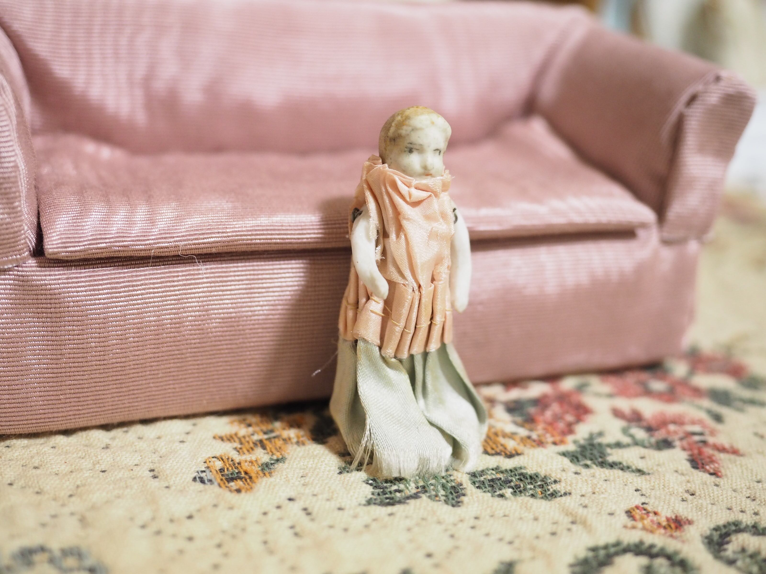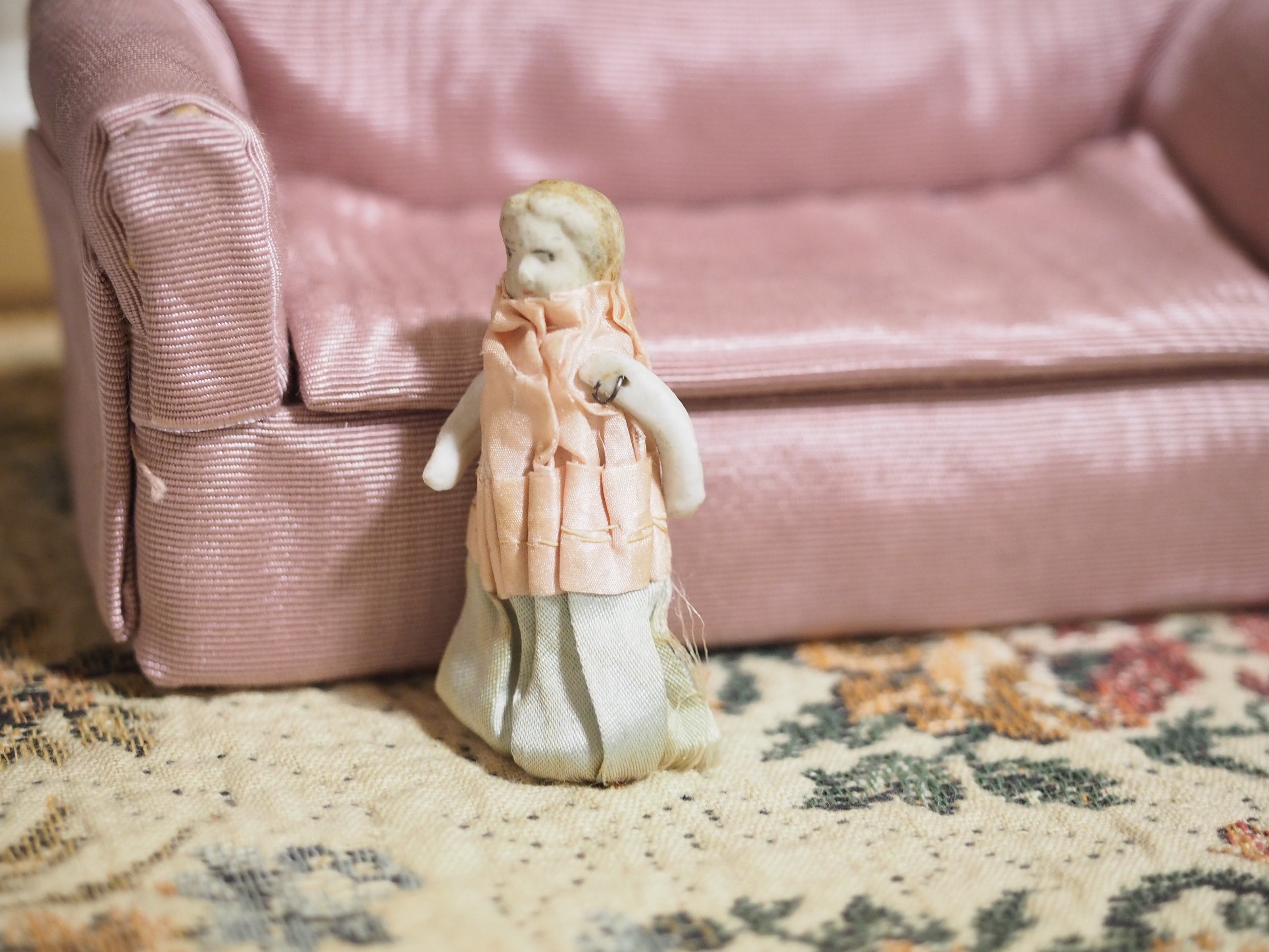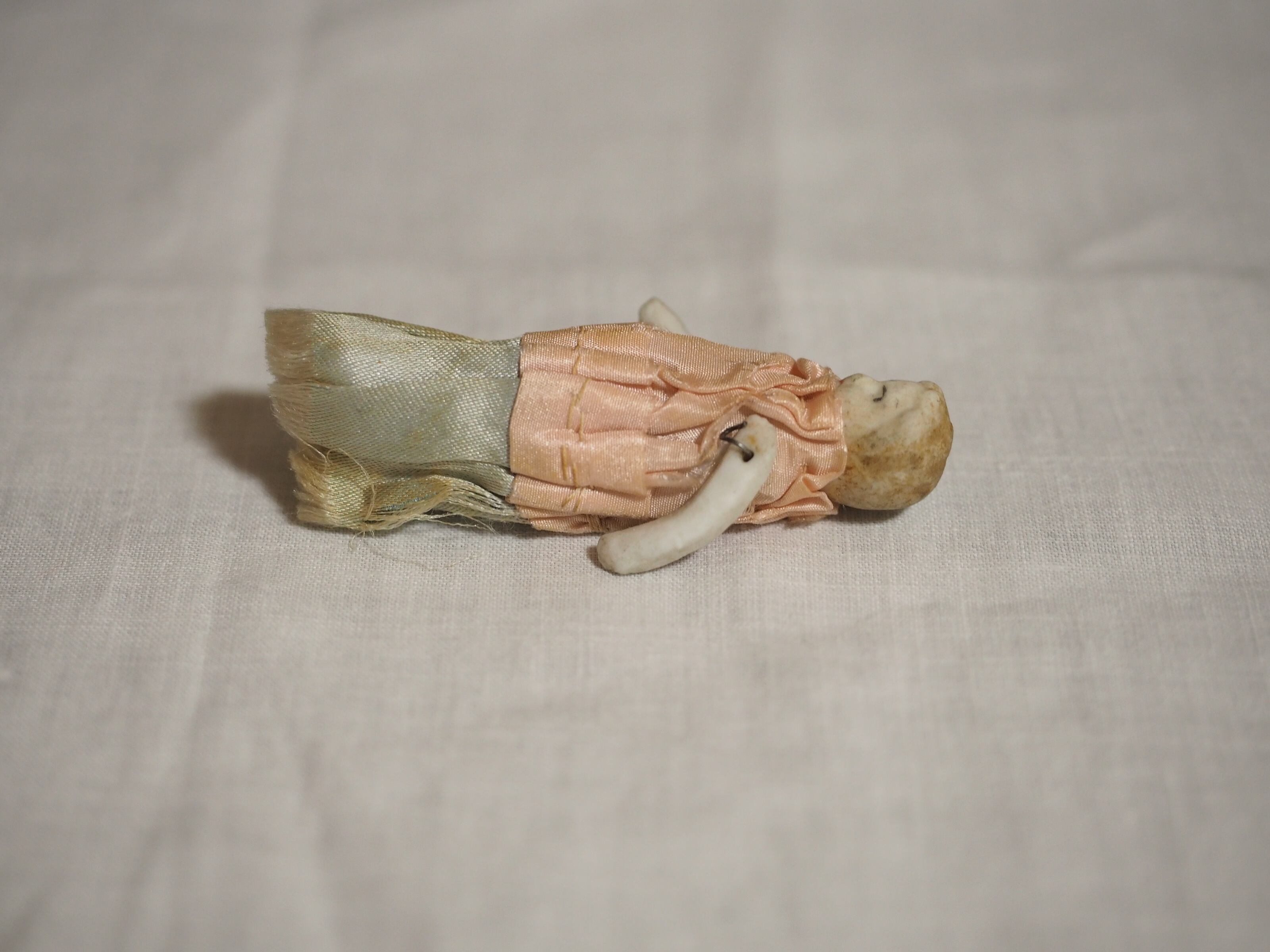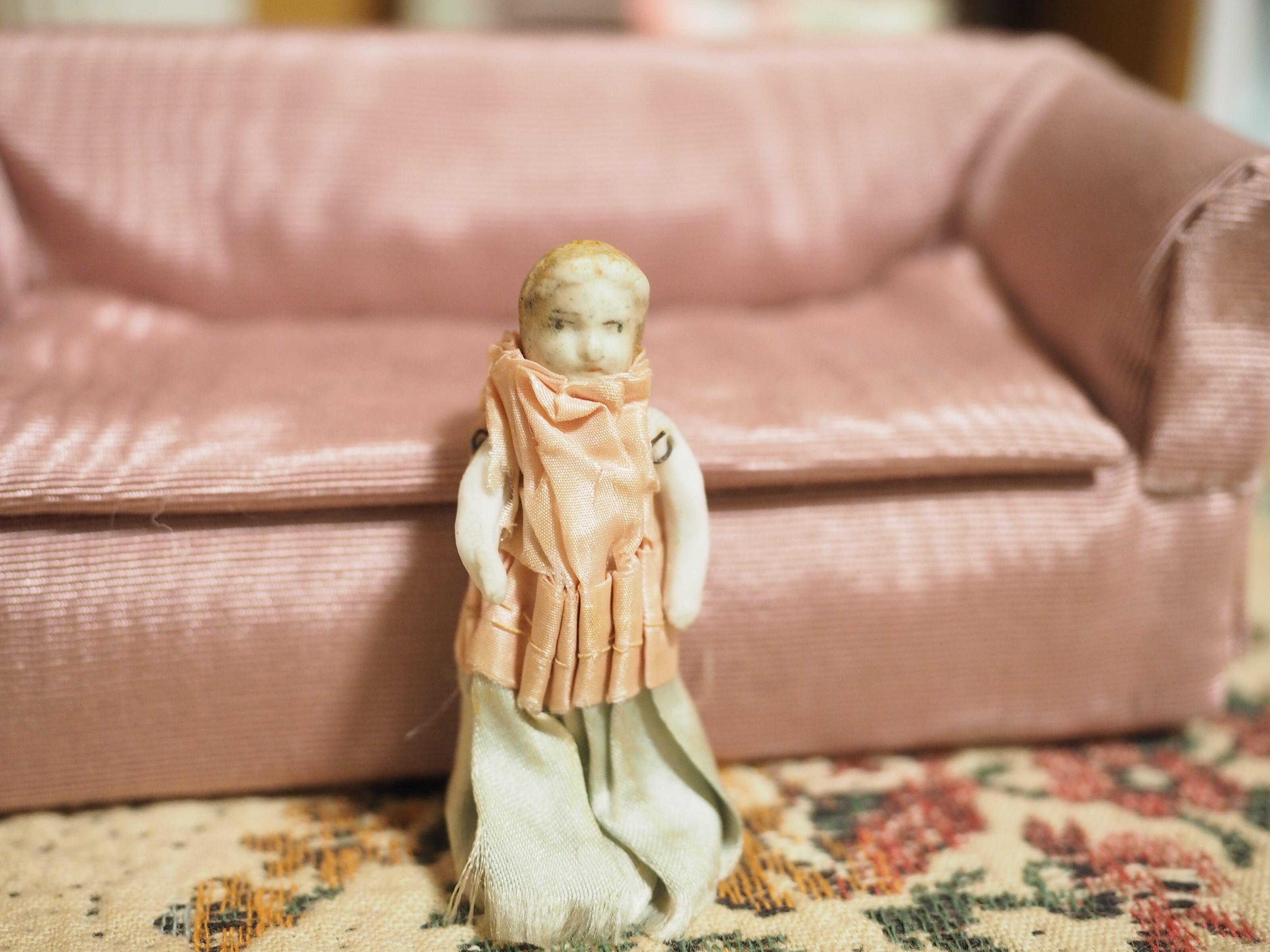 小さな小さなサテンドレスのビスクドール
