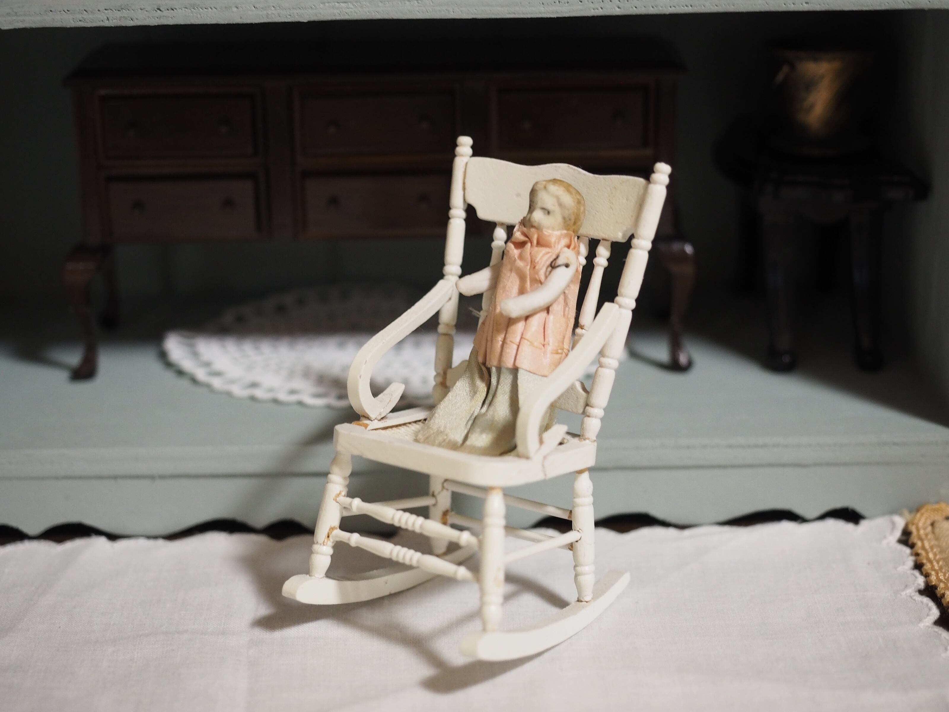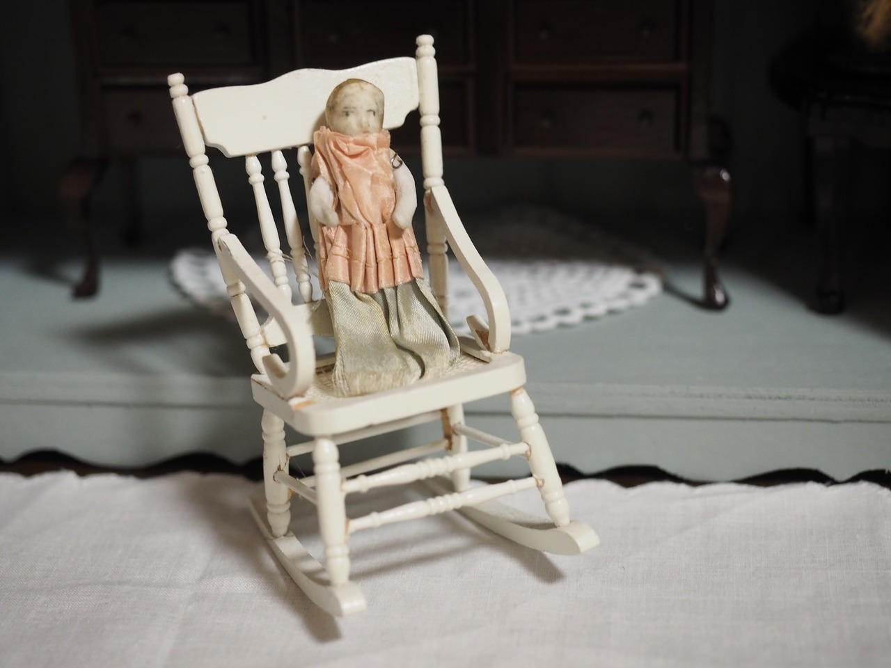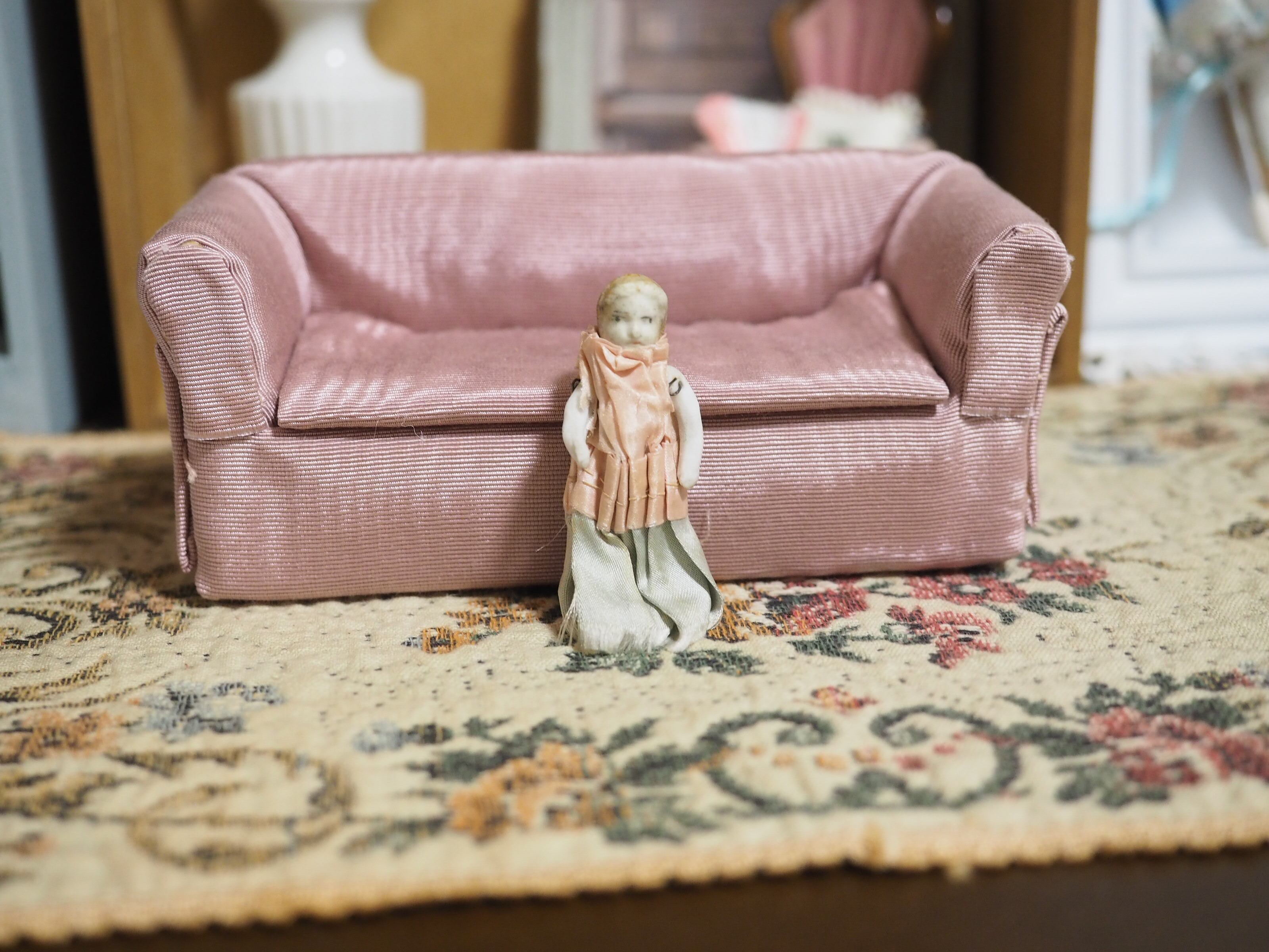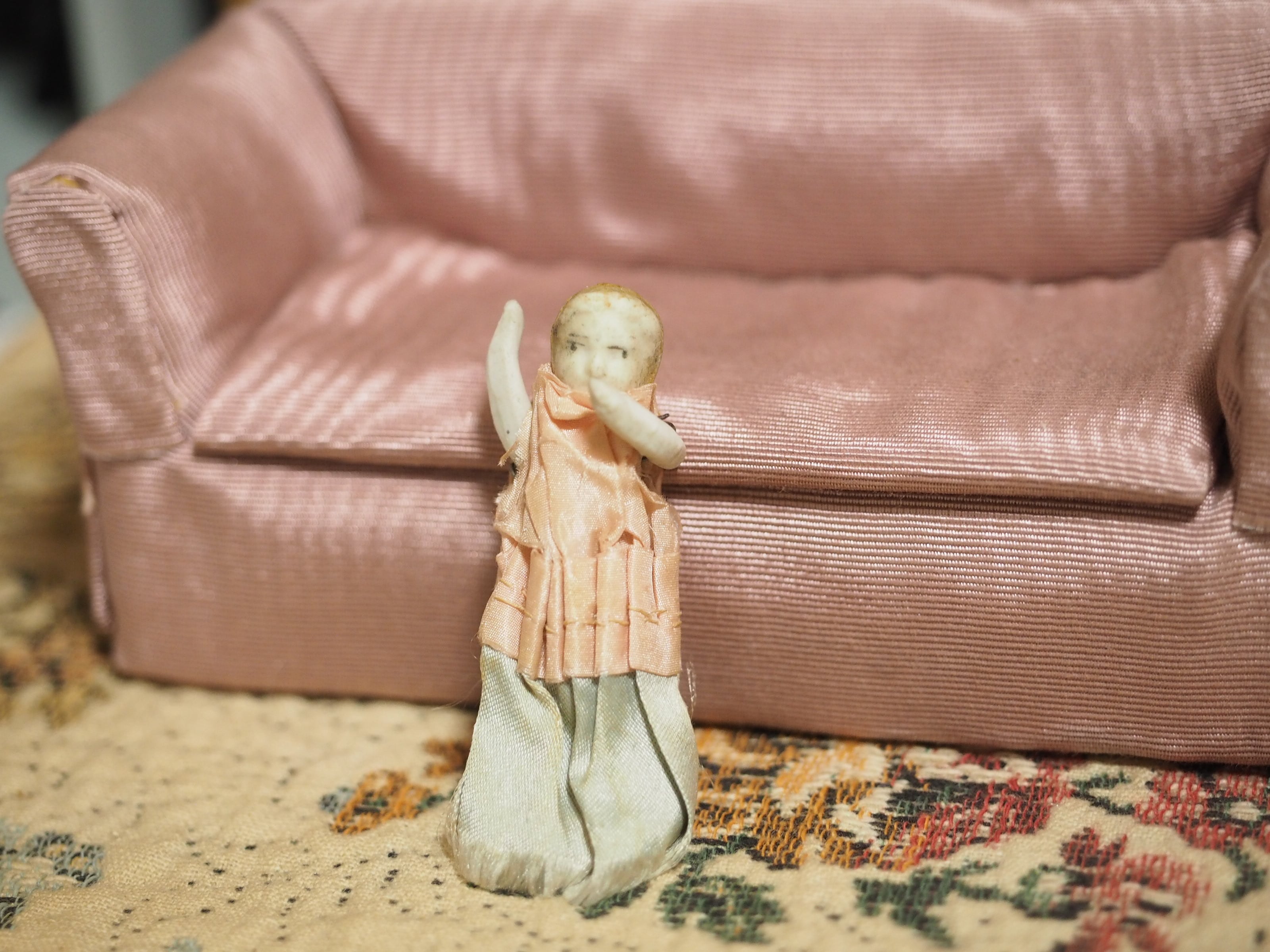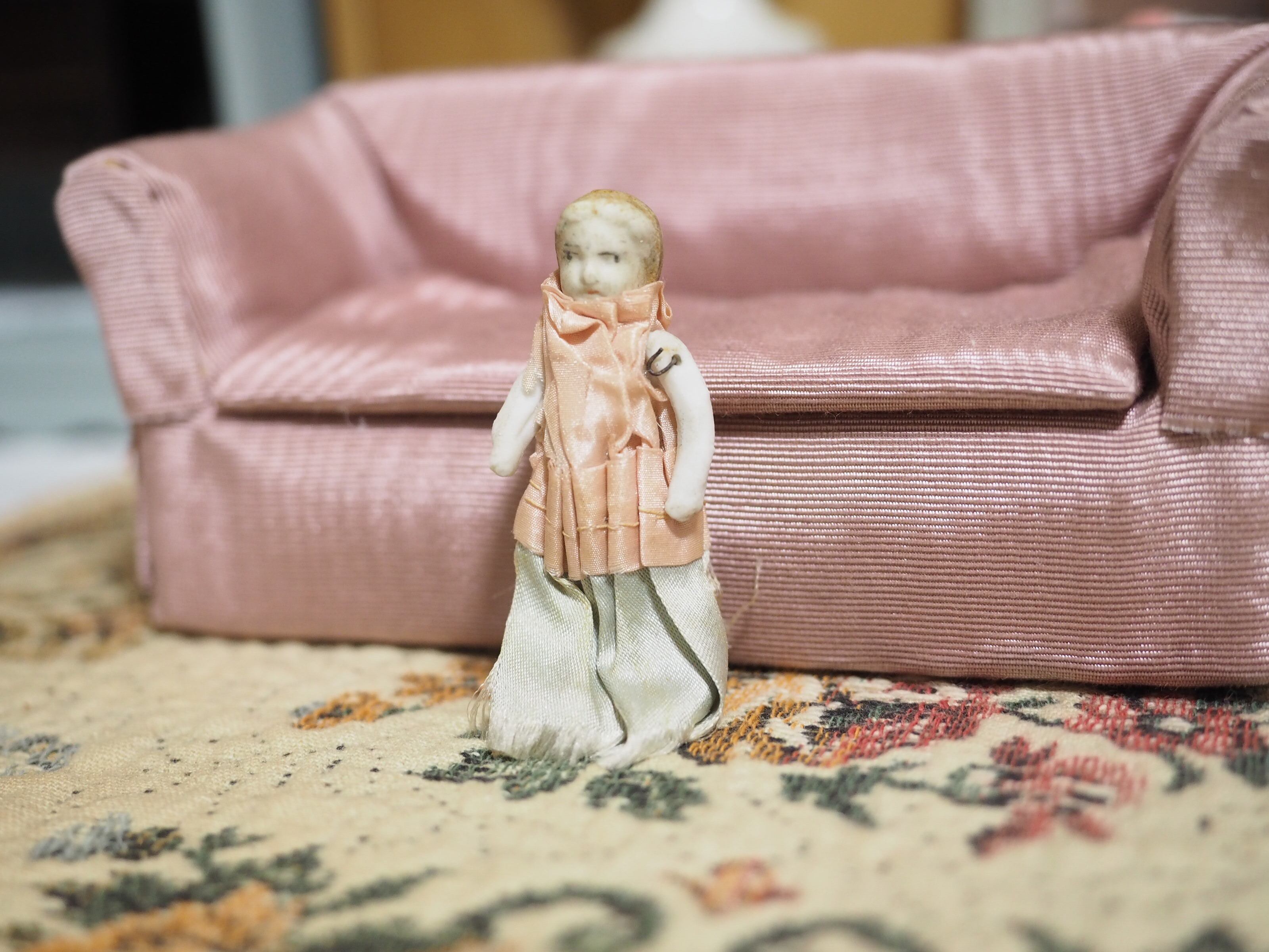 小さな小さなサテンドレスのビスクドール