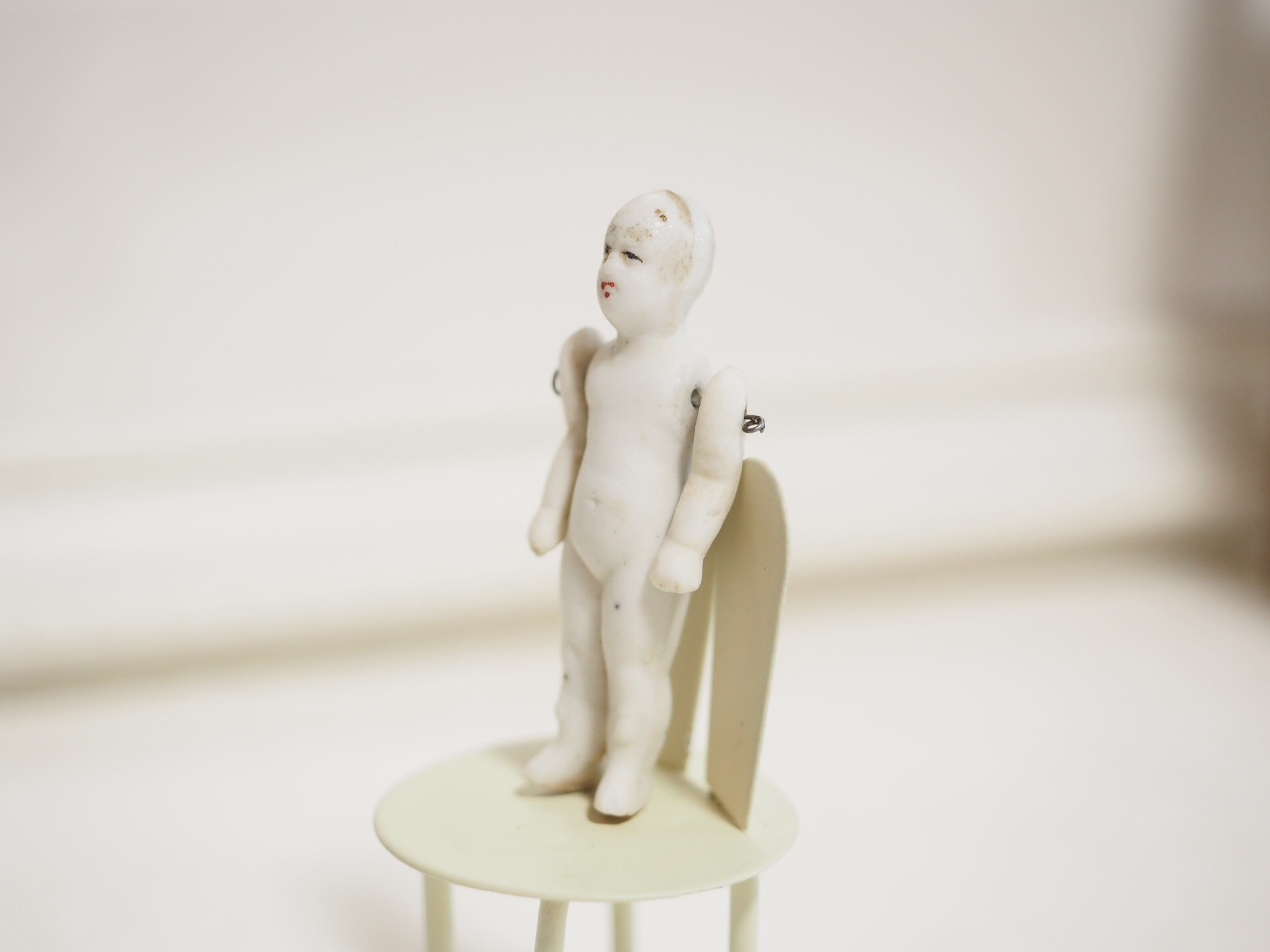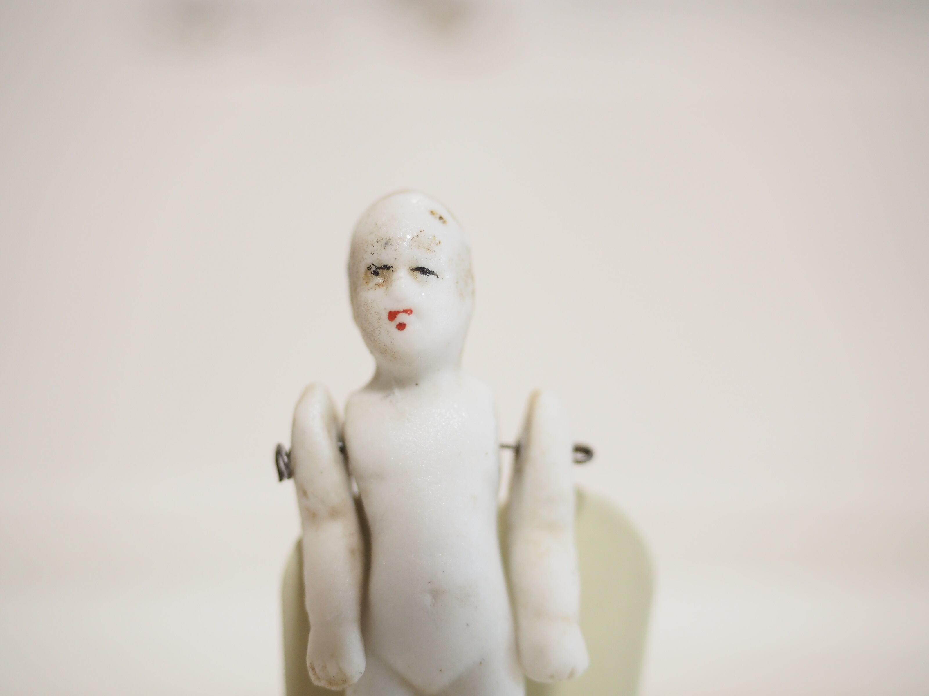 体長約5.2㎝の小さなビスクですが、腕はワイヤージョイント、精巧な作りのドールです。