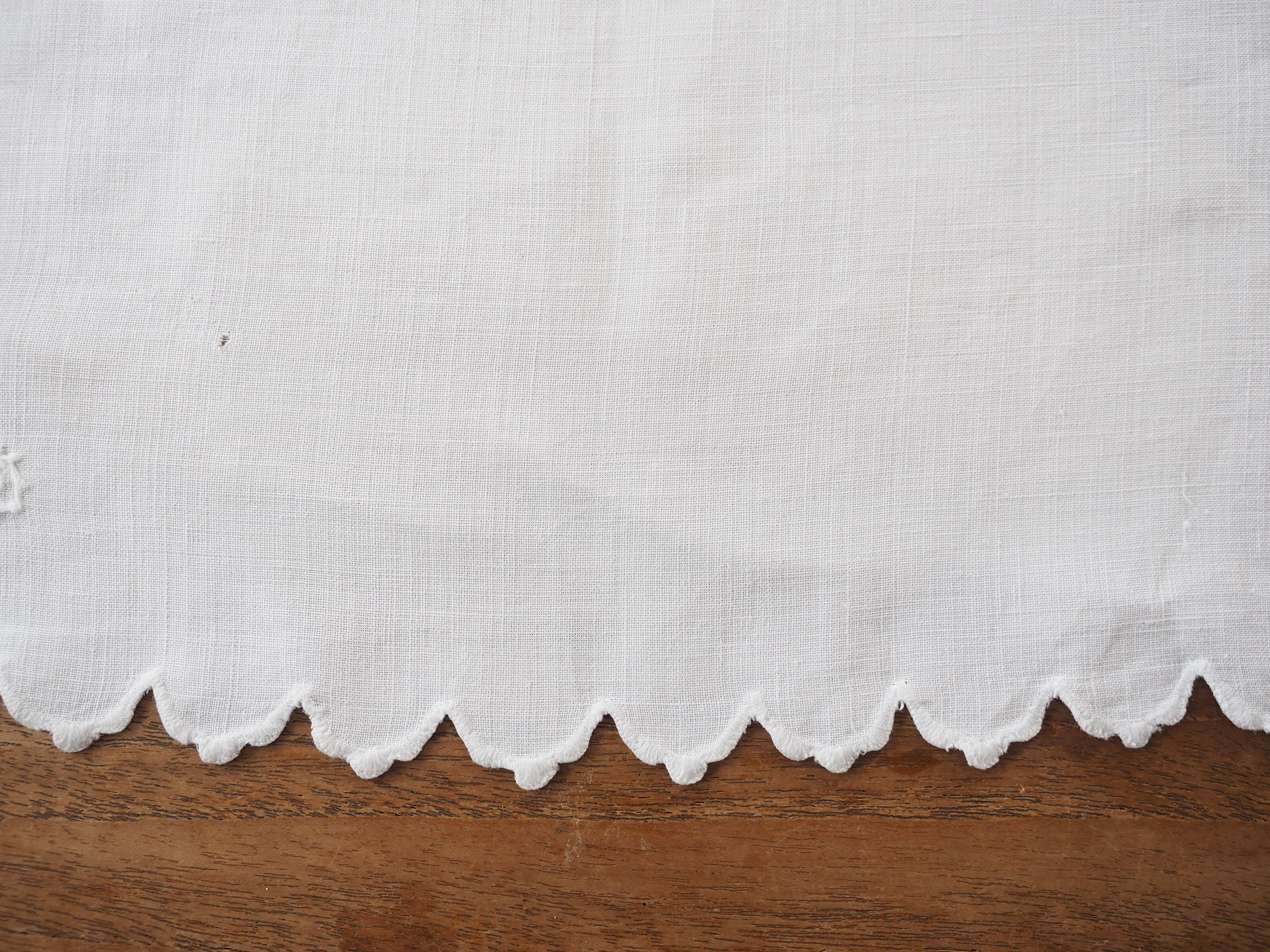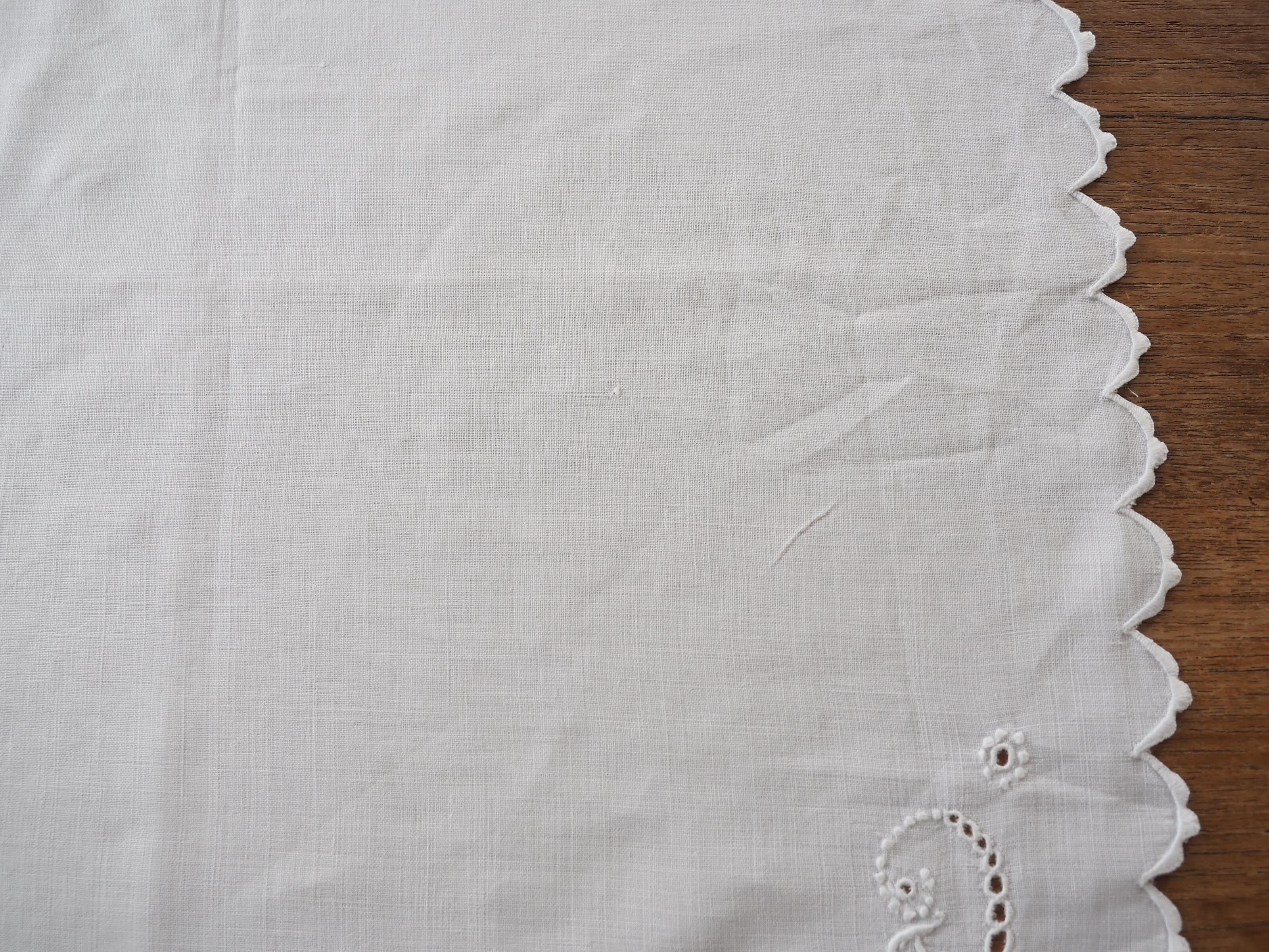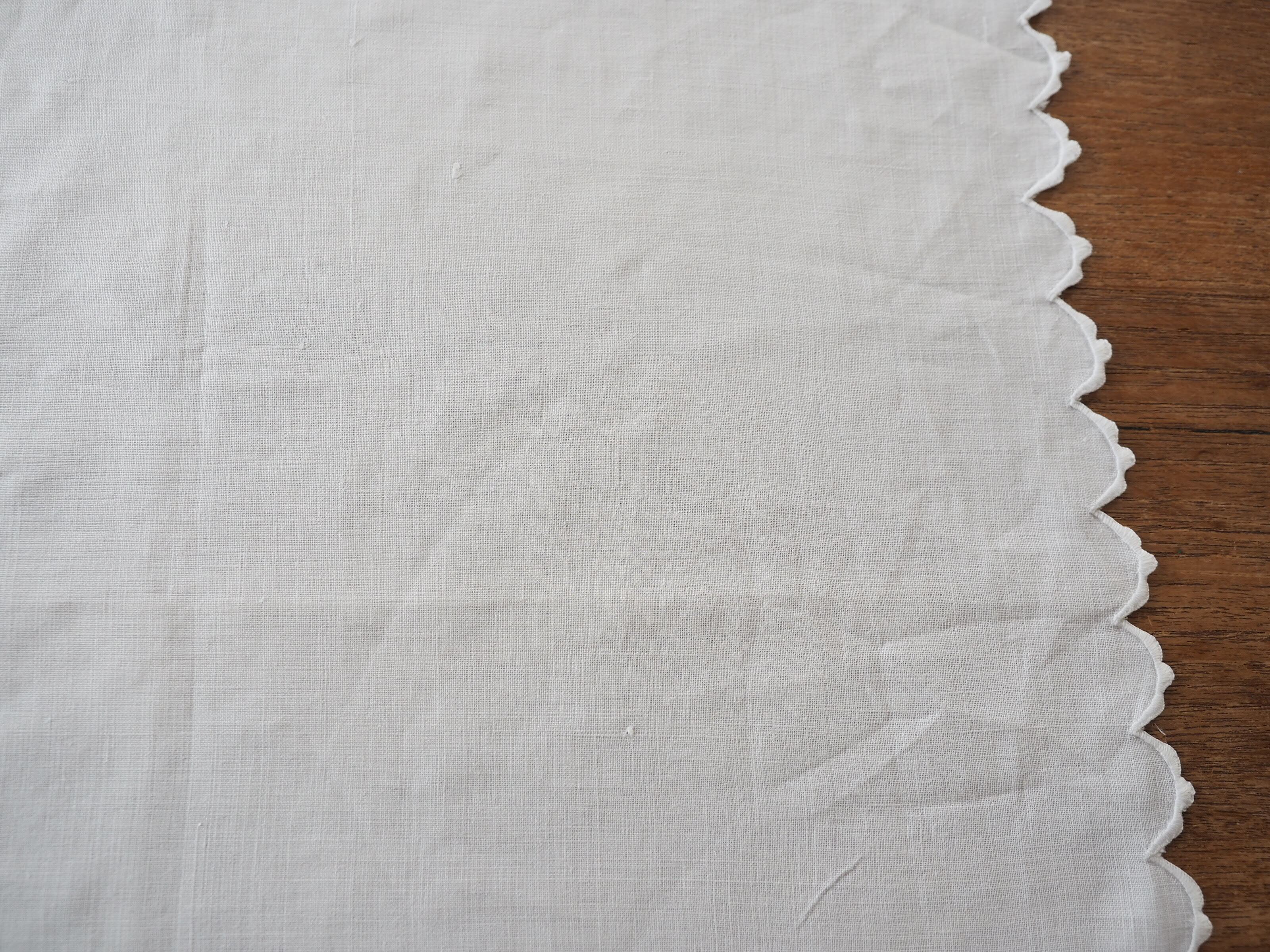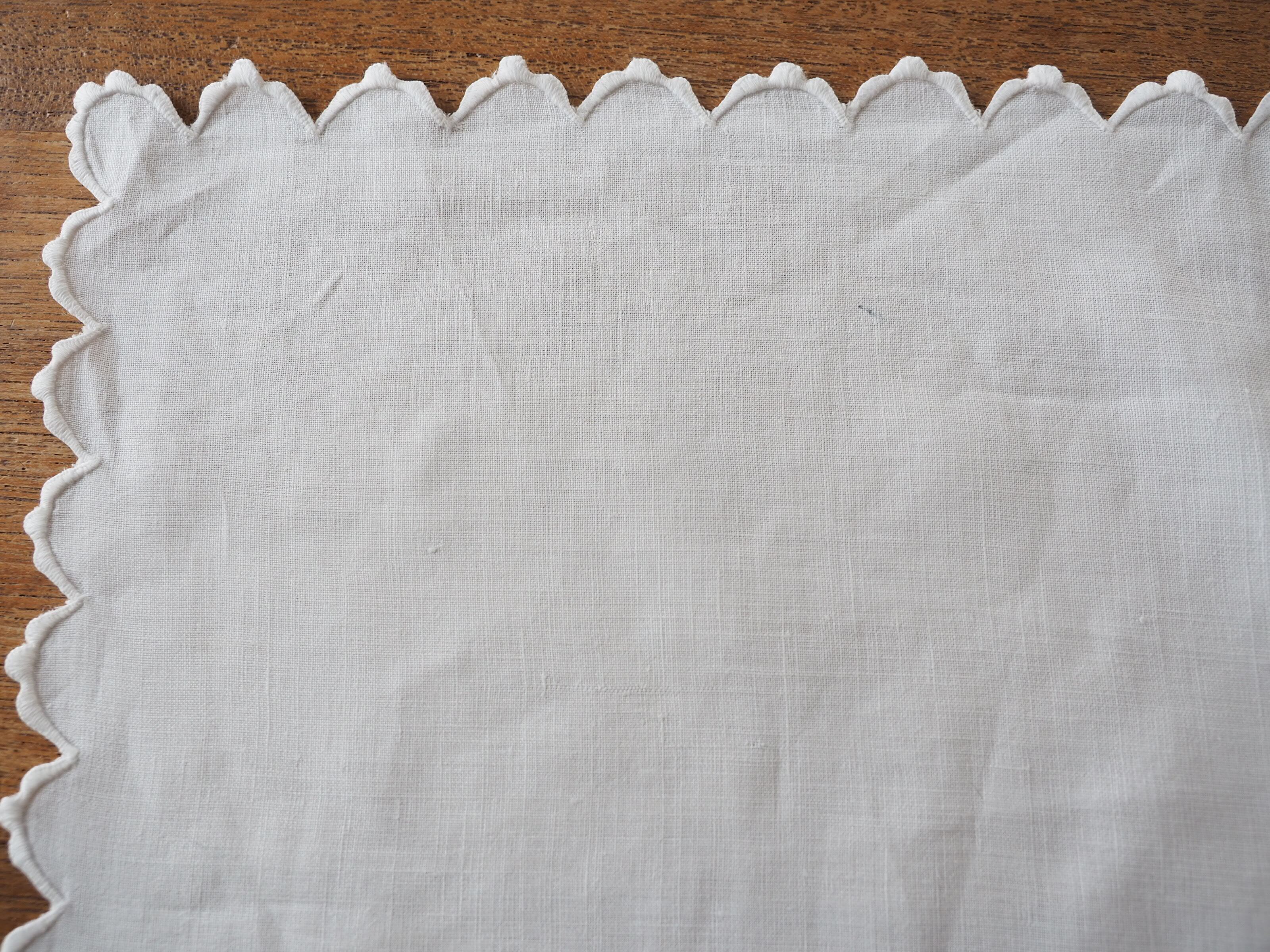 シンプルなコーナー刺繍のナプキンですが、ぐるっと縁に施されたスカラップも細やかでとても素敵です。