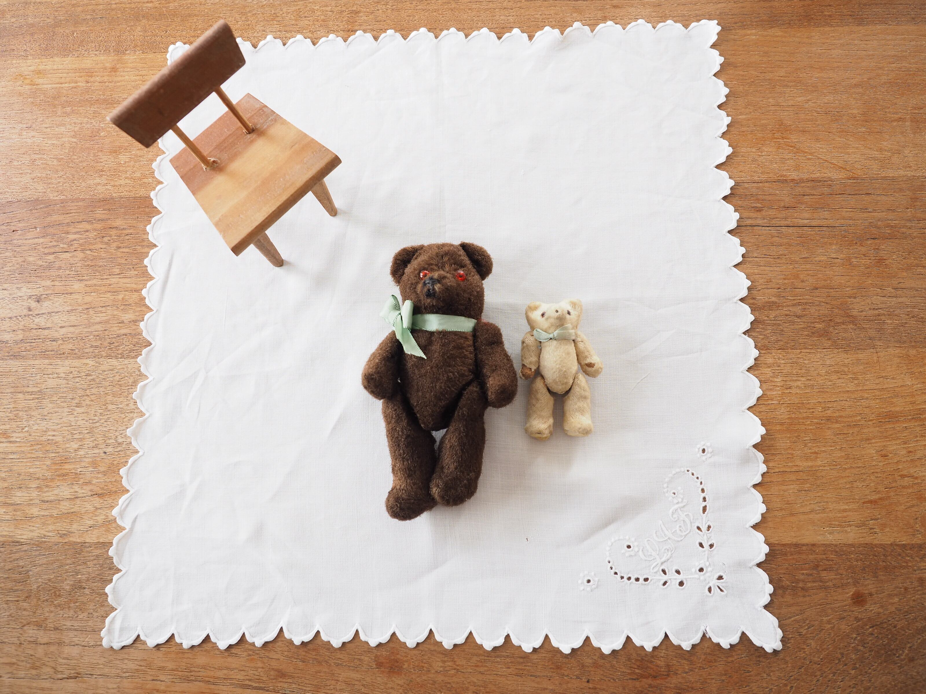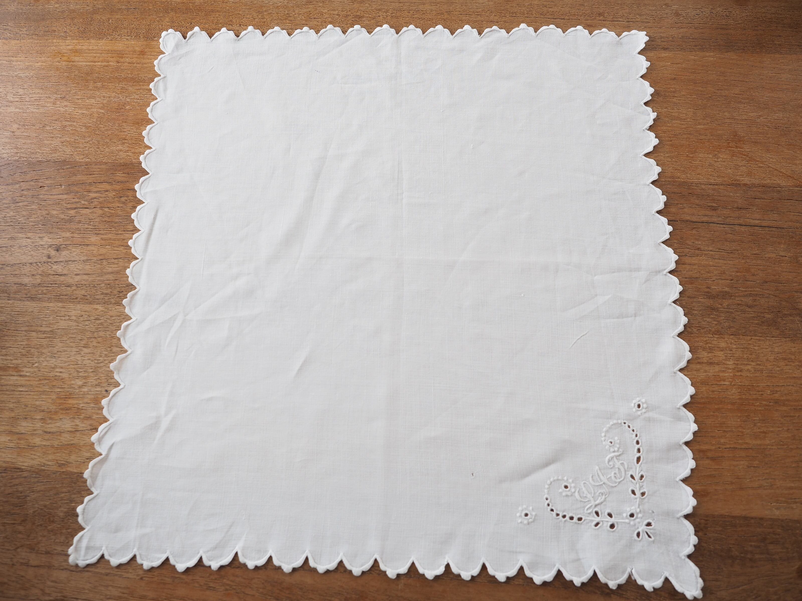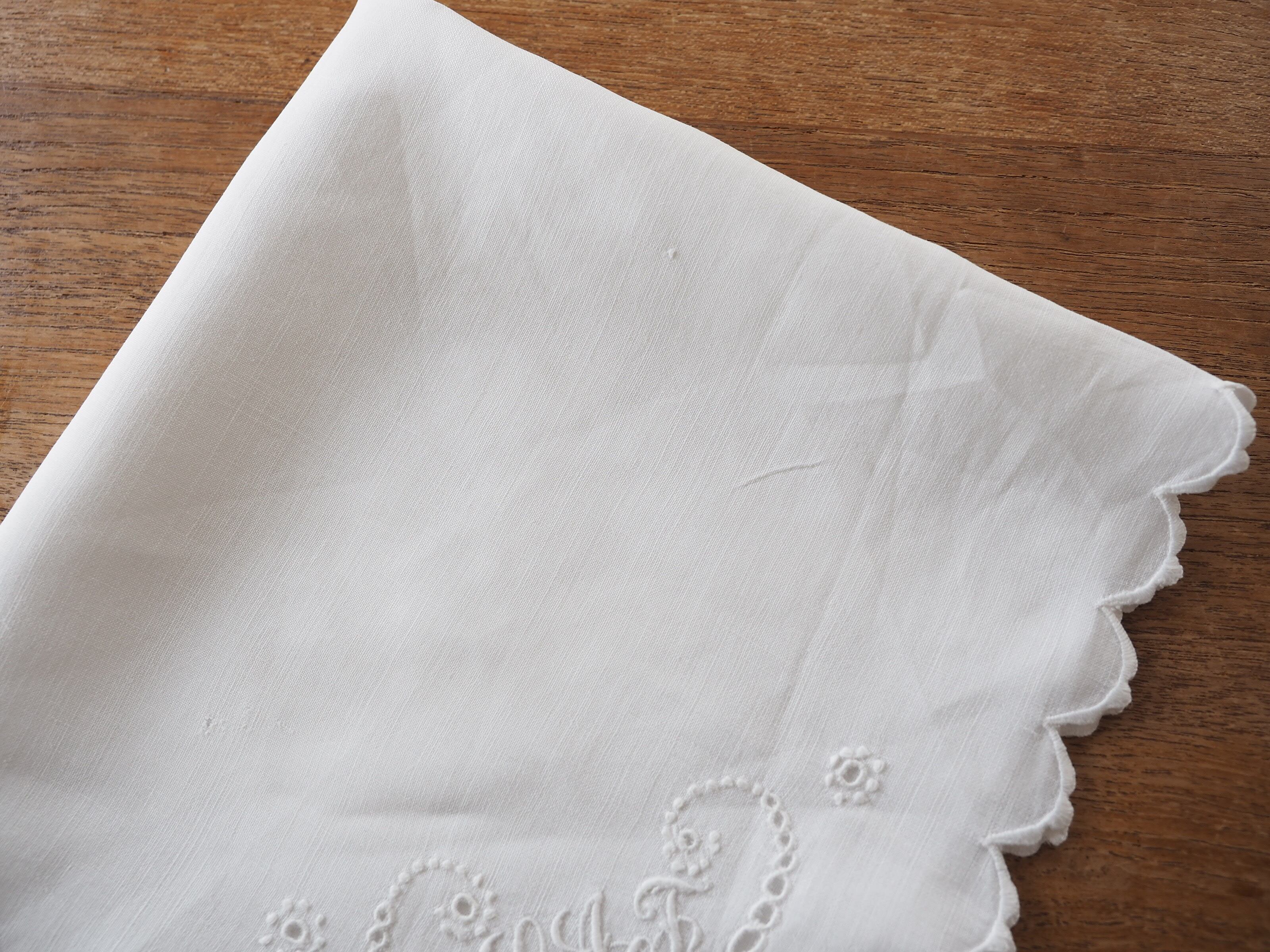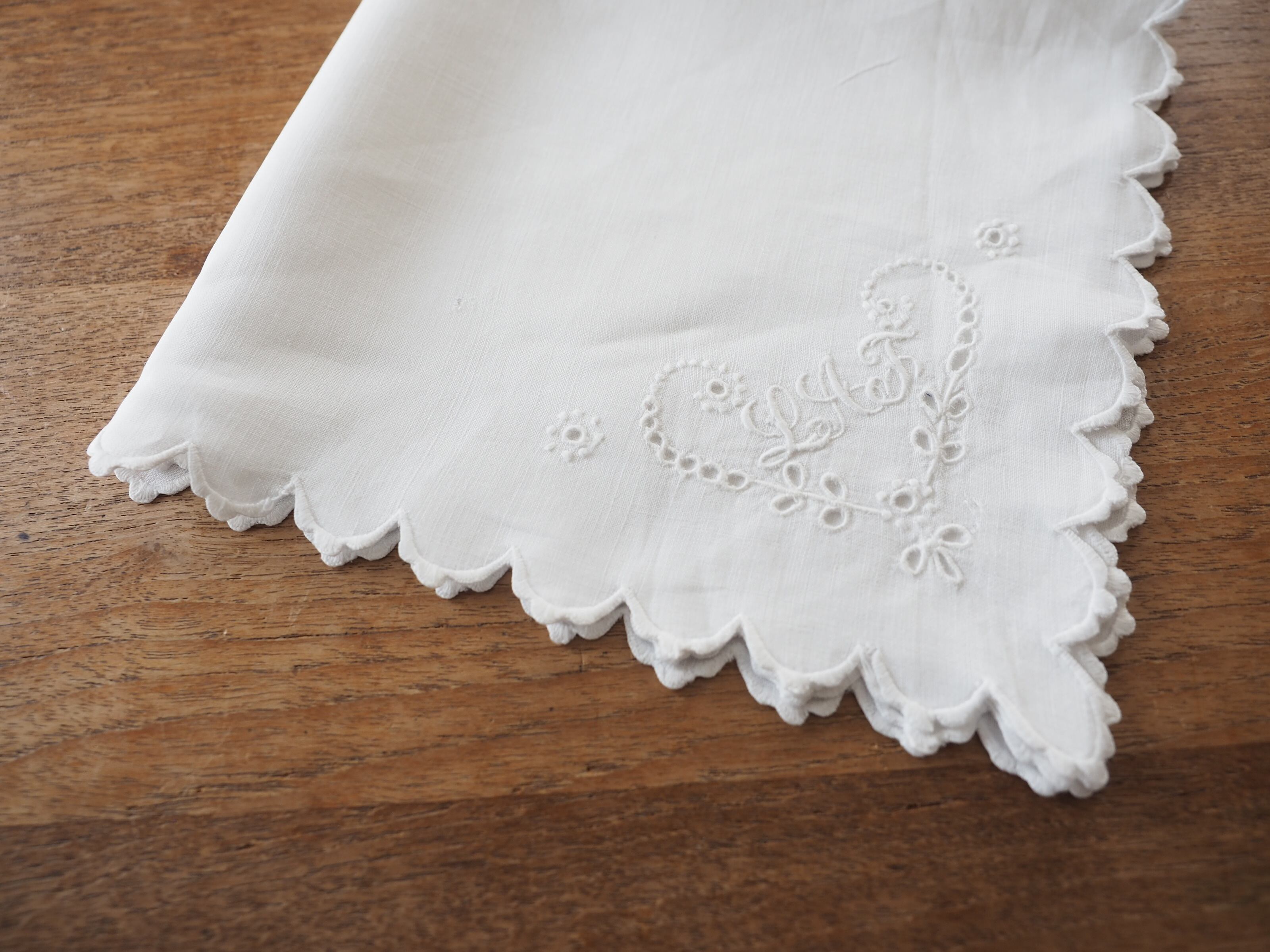 シンプルなコーナー刺繍のナプキンですが、ぐるっと縁に施されたスカラップも細やかでとても素敵です。