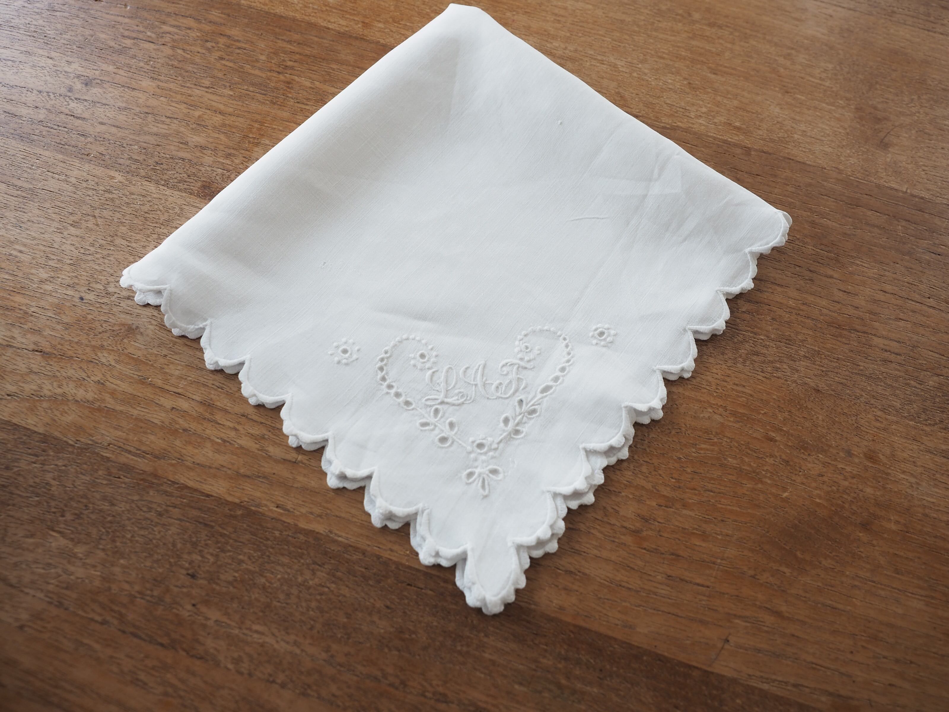 リネンナプキン イニシャルとハート型刺繍(穴・シミあり)