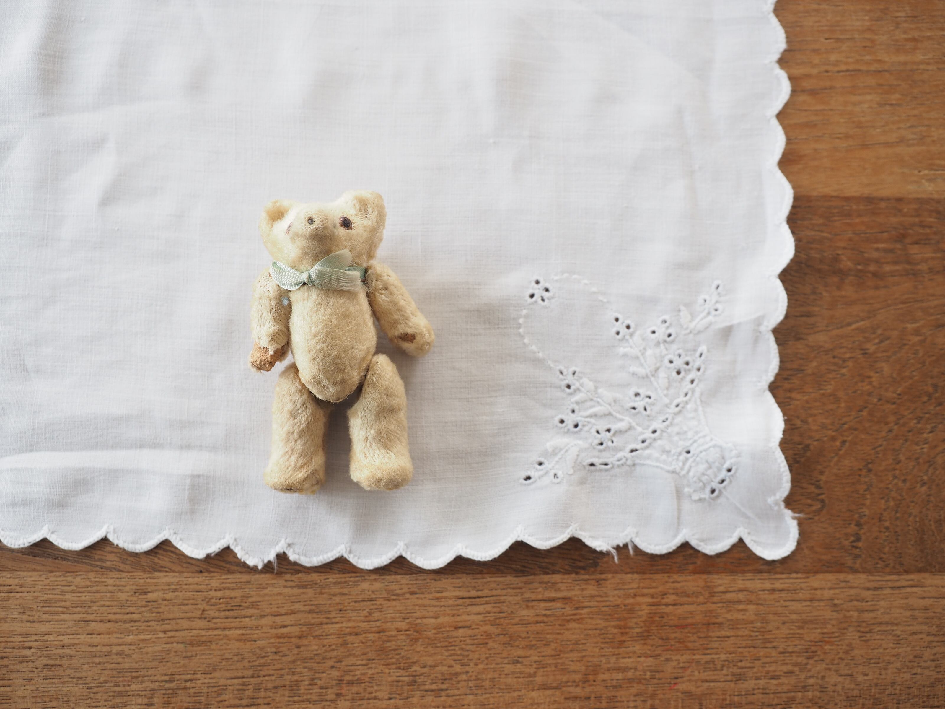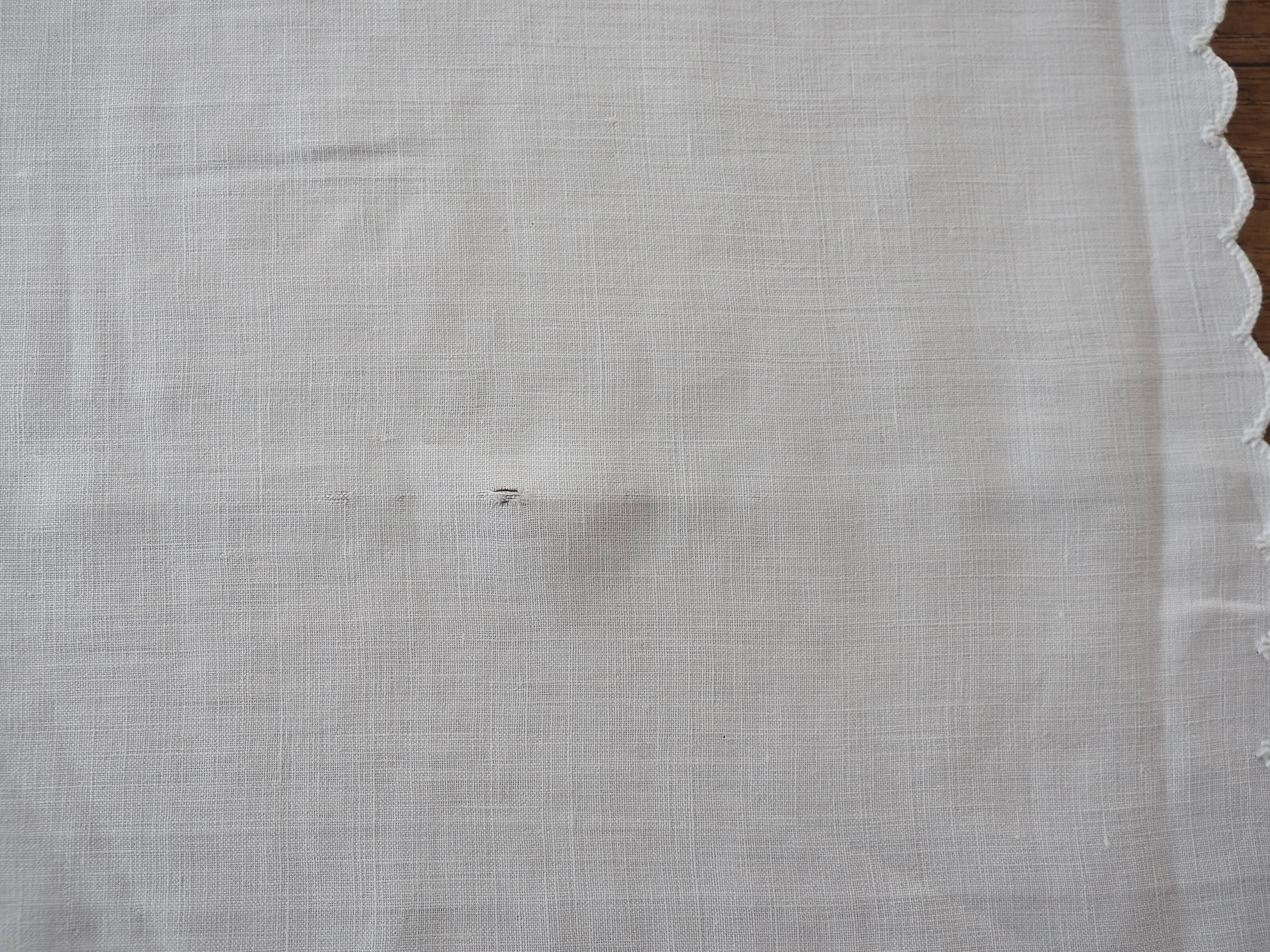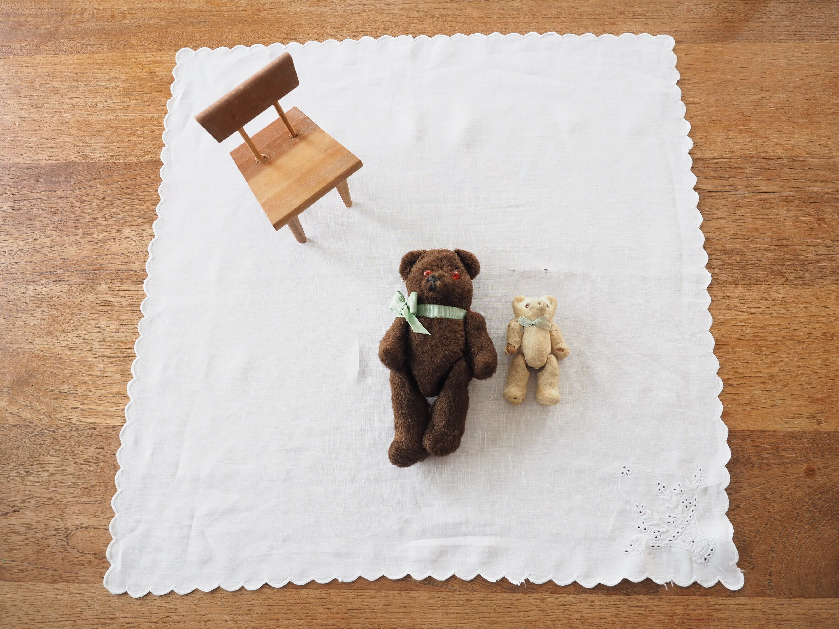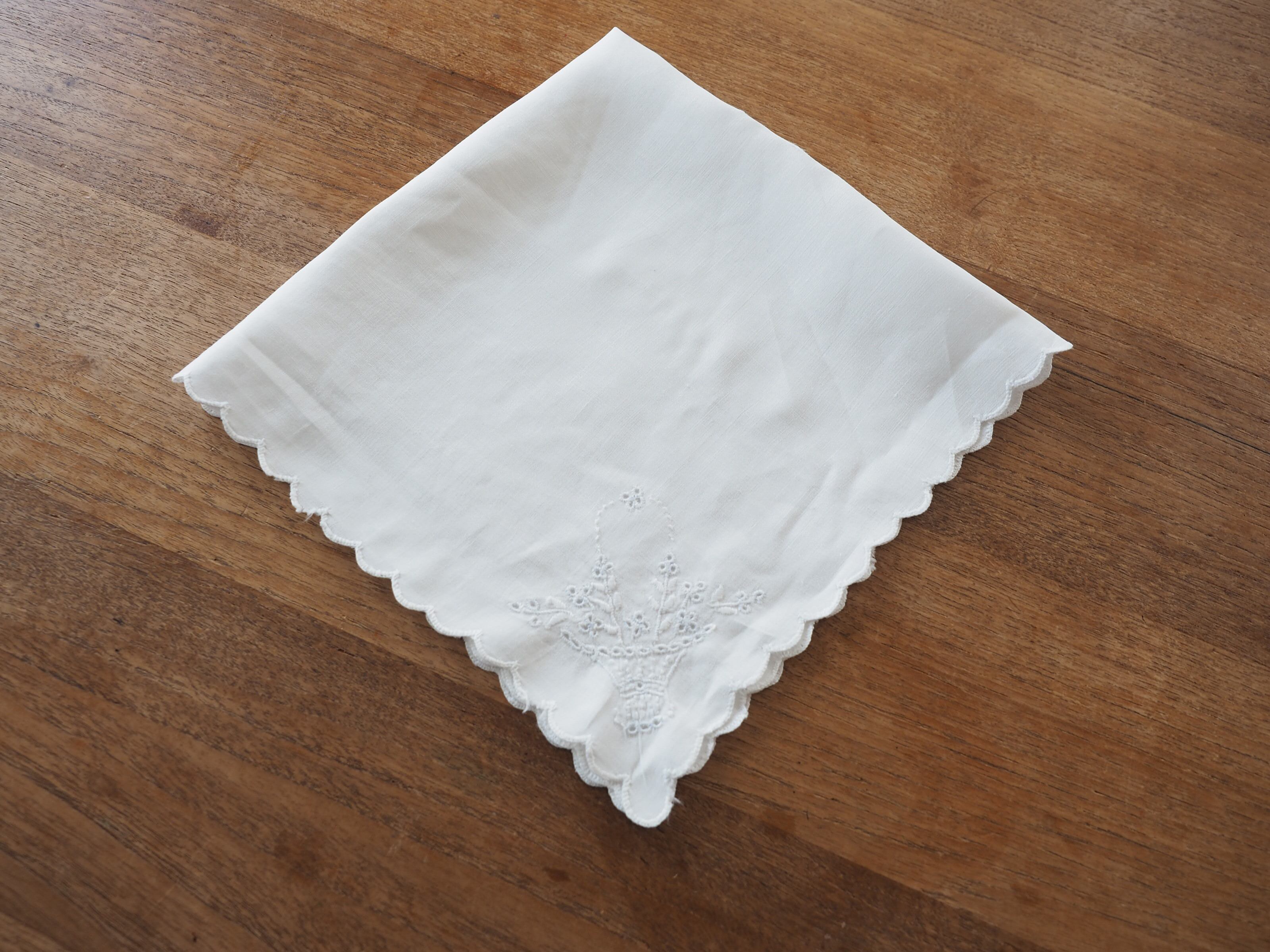 シンプルなコーナー刺繍のナプキンですが、ぐるっと縁に施されたスカラップもとても素敵です。