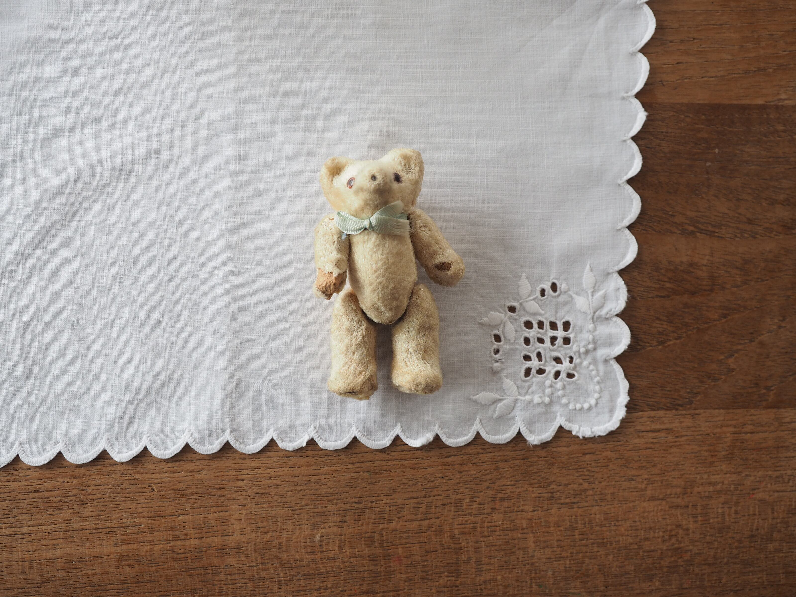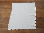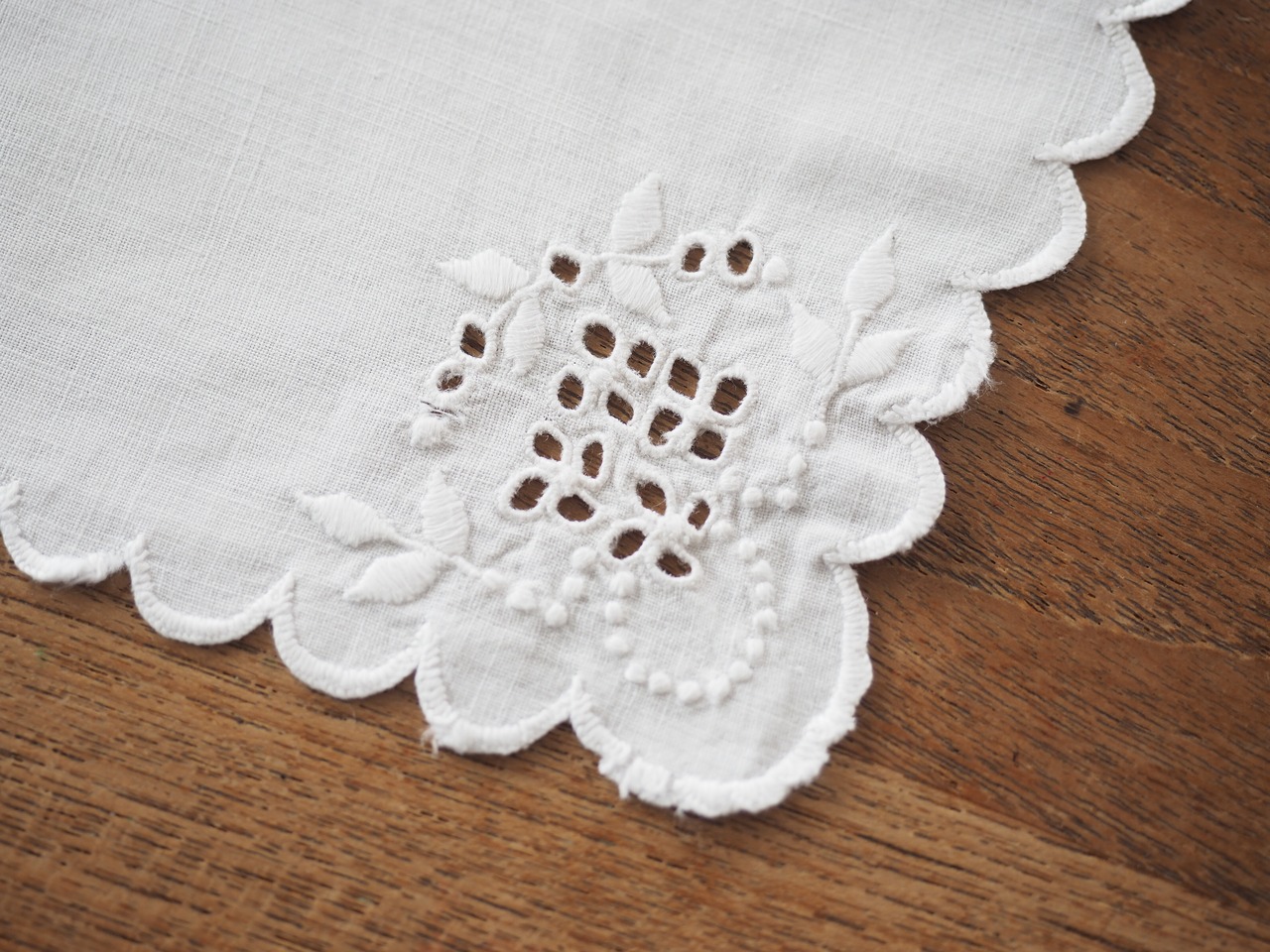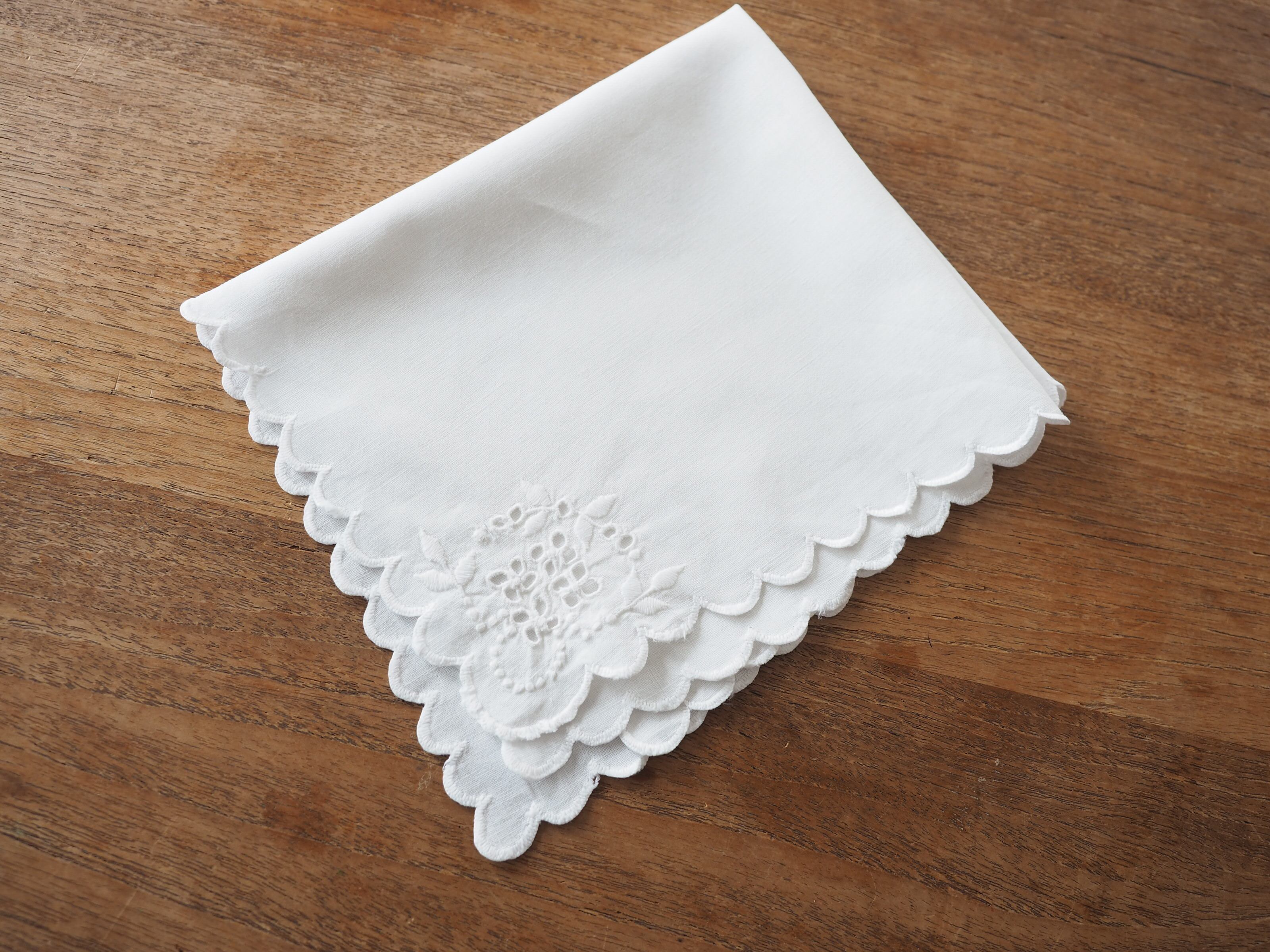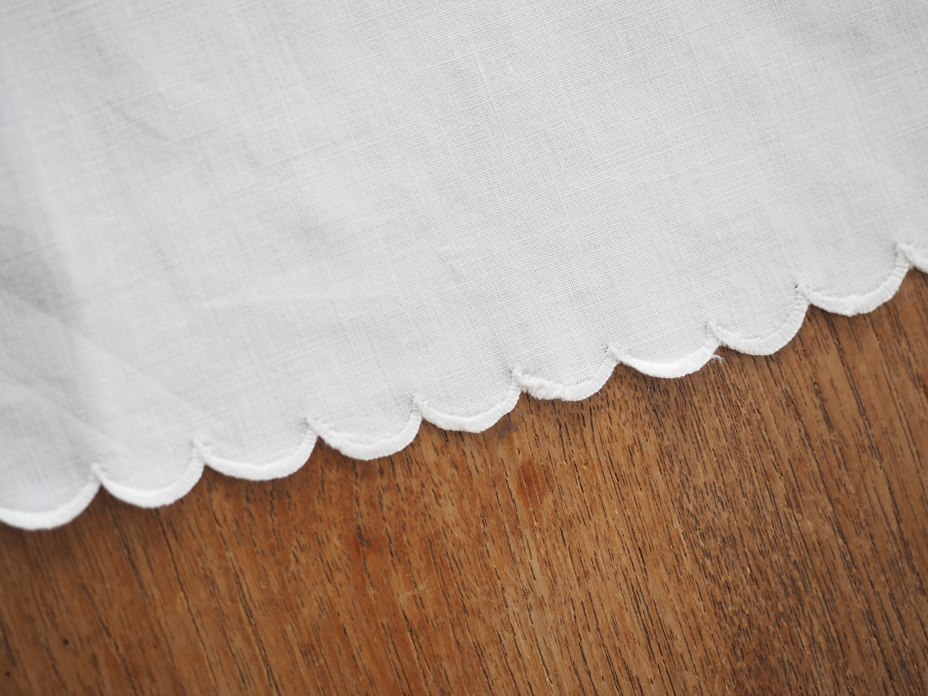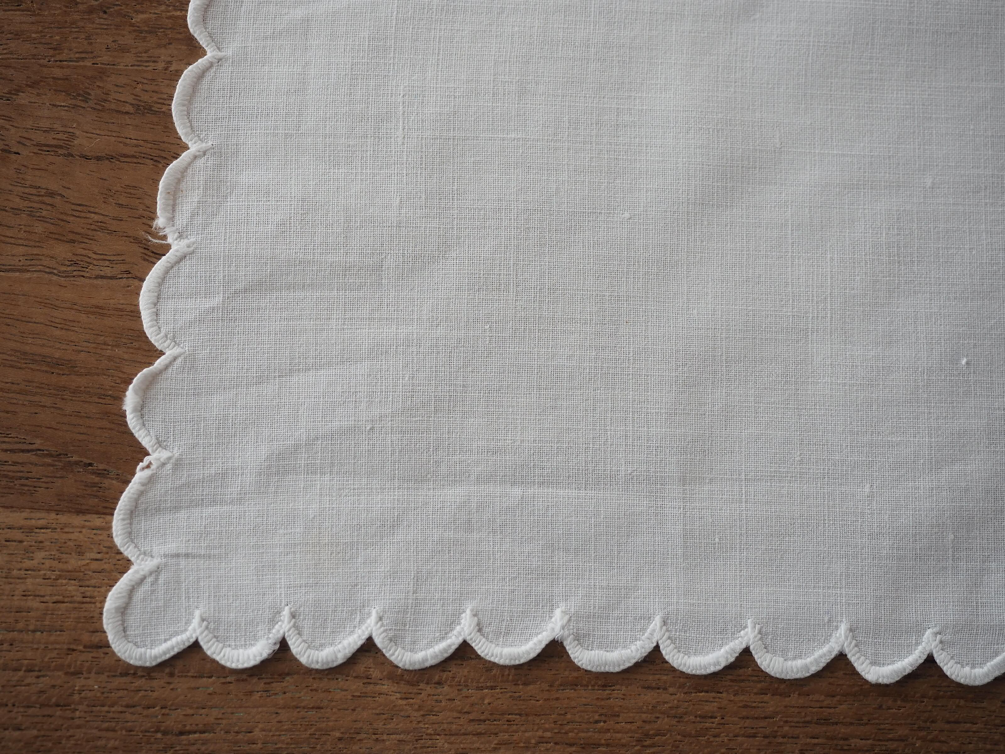 シンプルなコーナー刺繍のナプキンですが、ぐるっと縁に施されたスカラップもとても素敵です。
