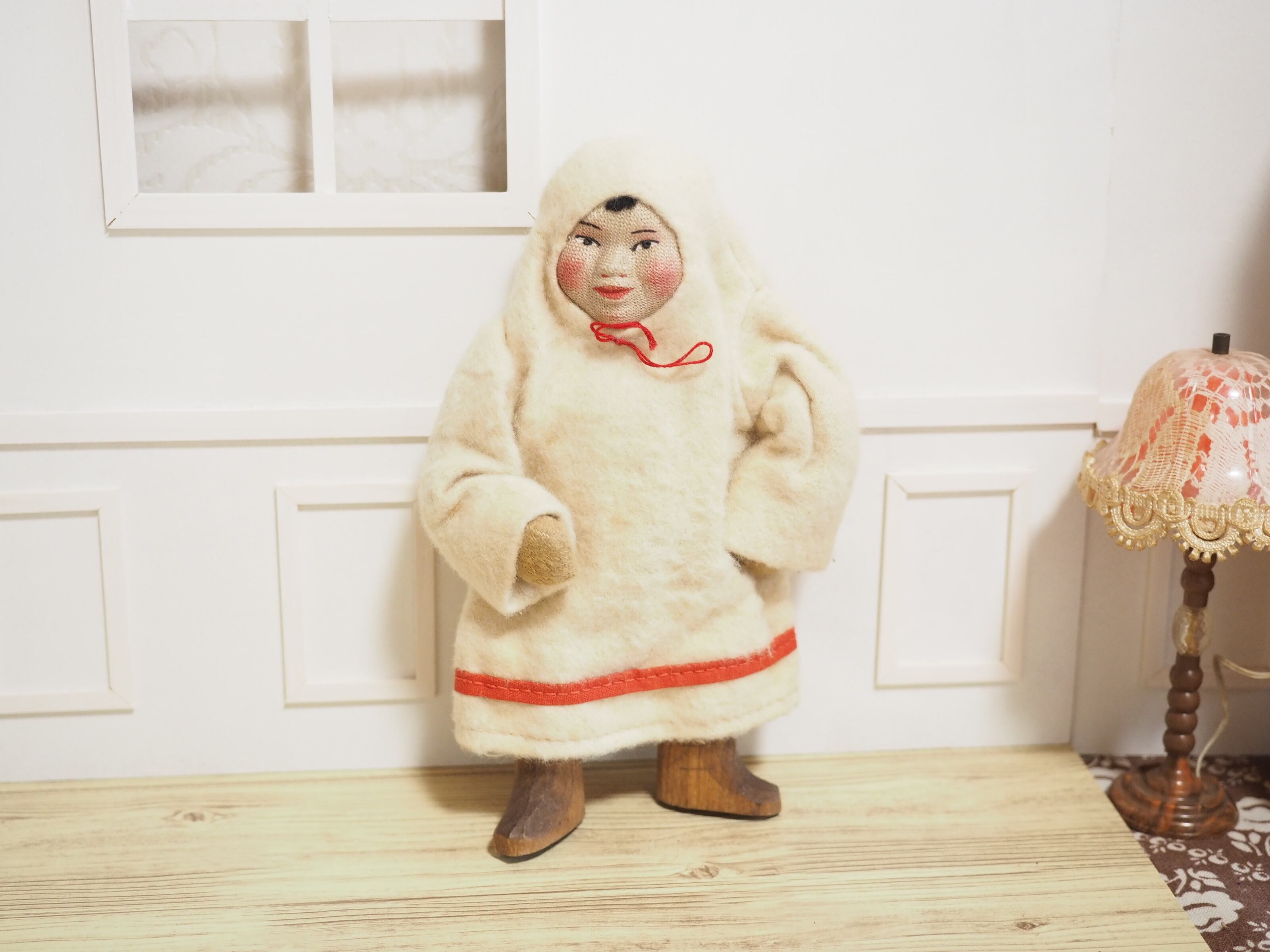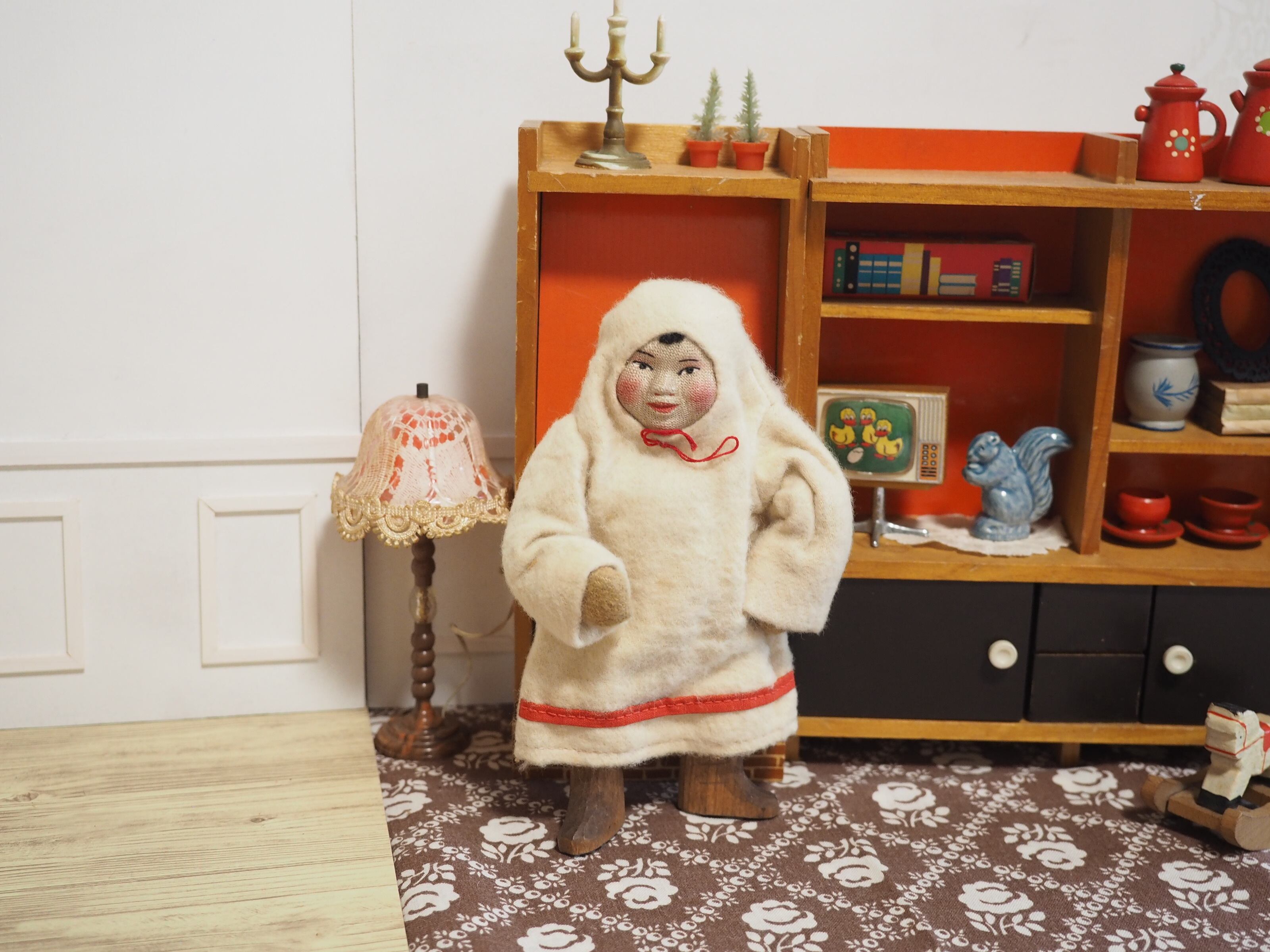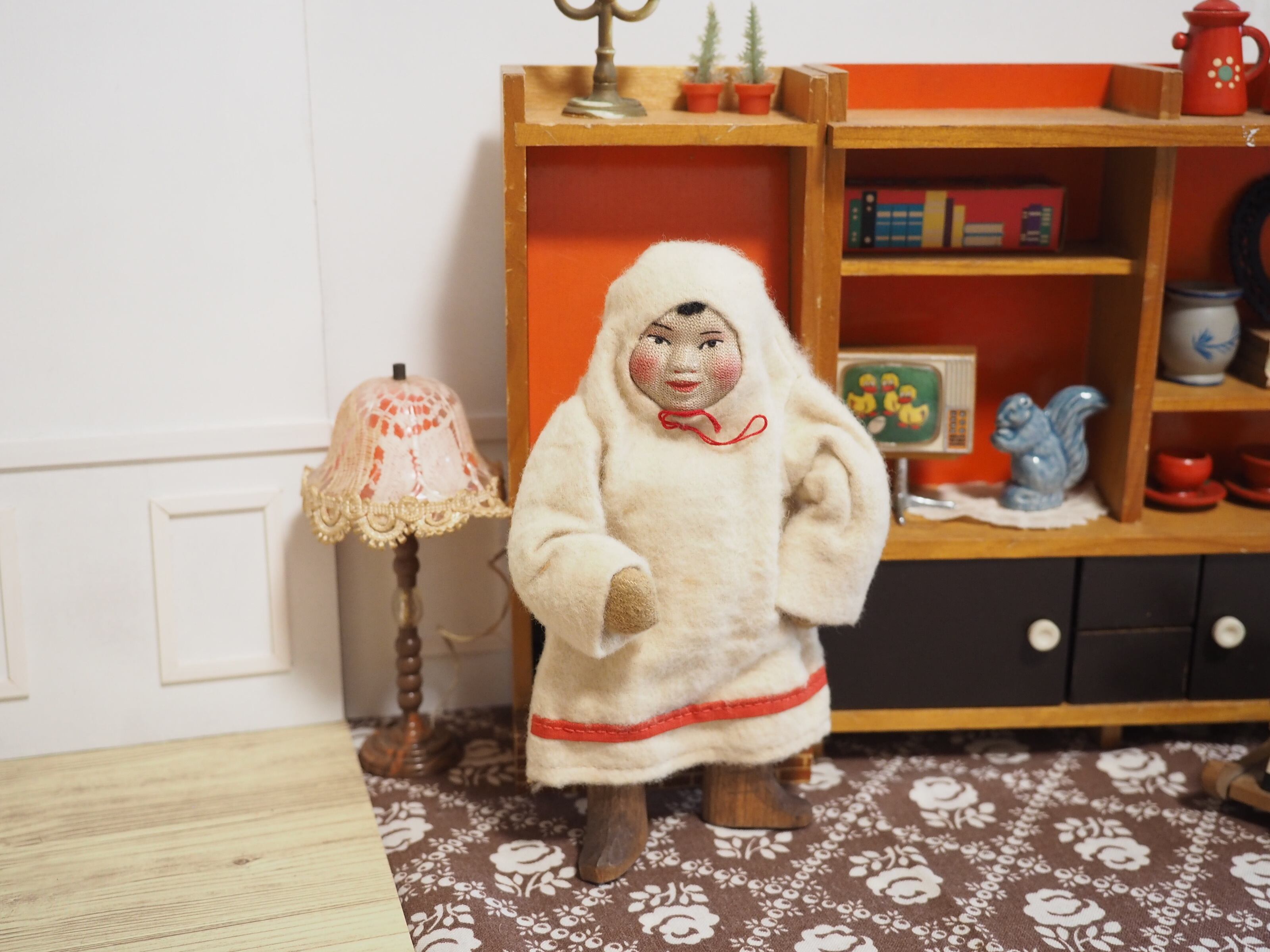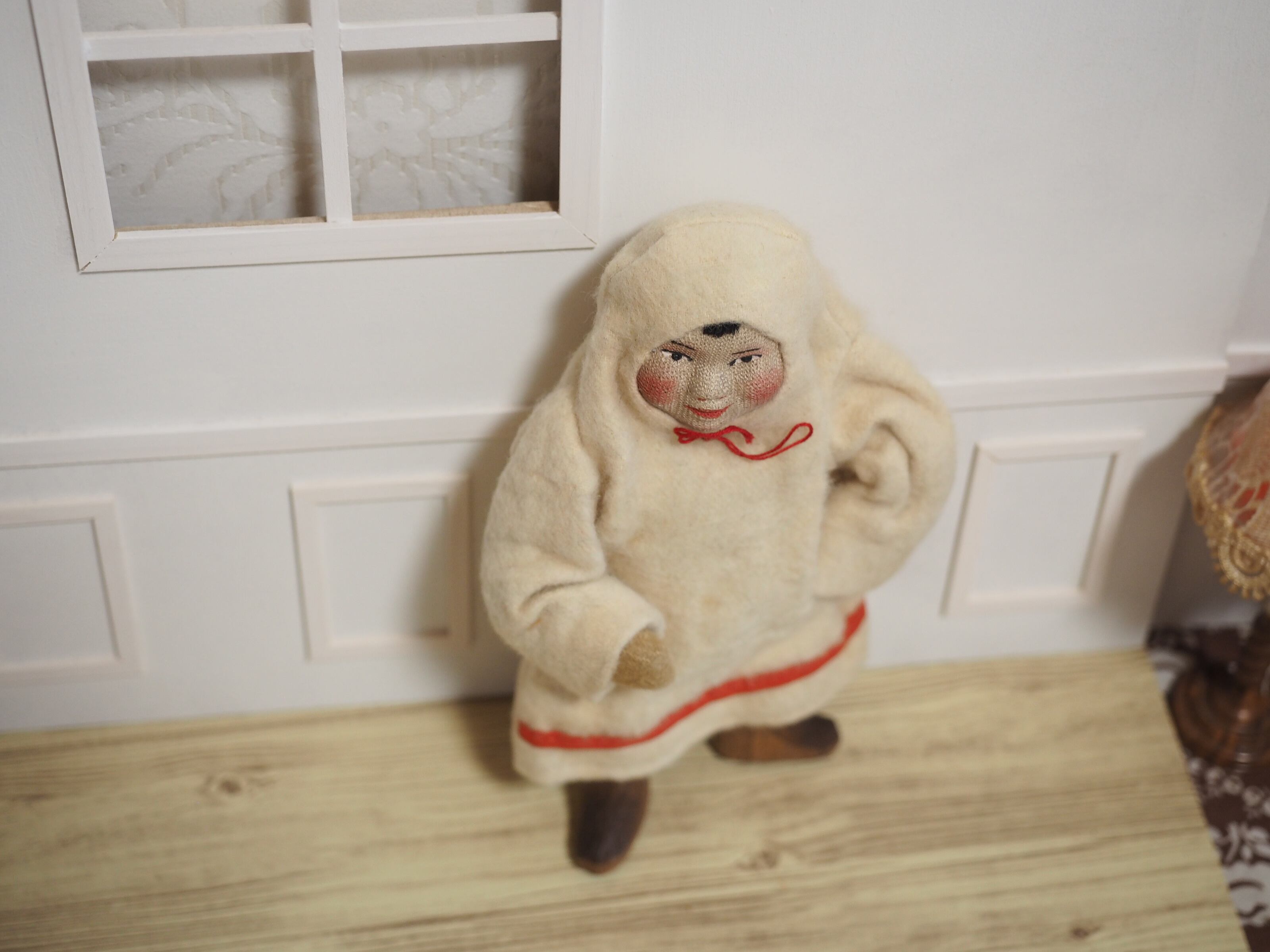 腕脚はおそらくワイヤー入り、Stockinette と言われるメリヤス編みを糊で固めたようなお顔です。