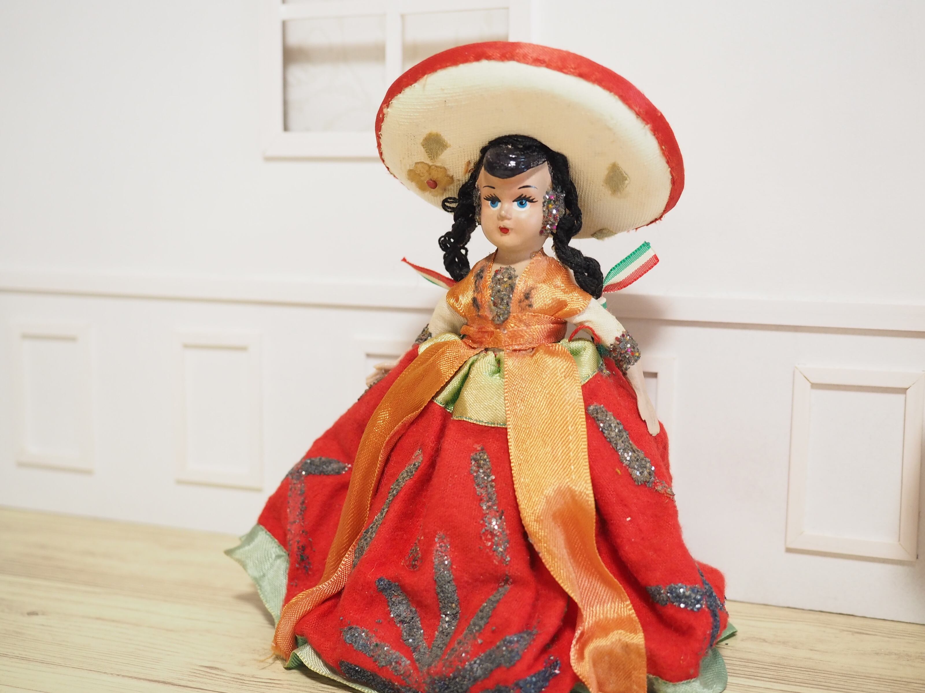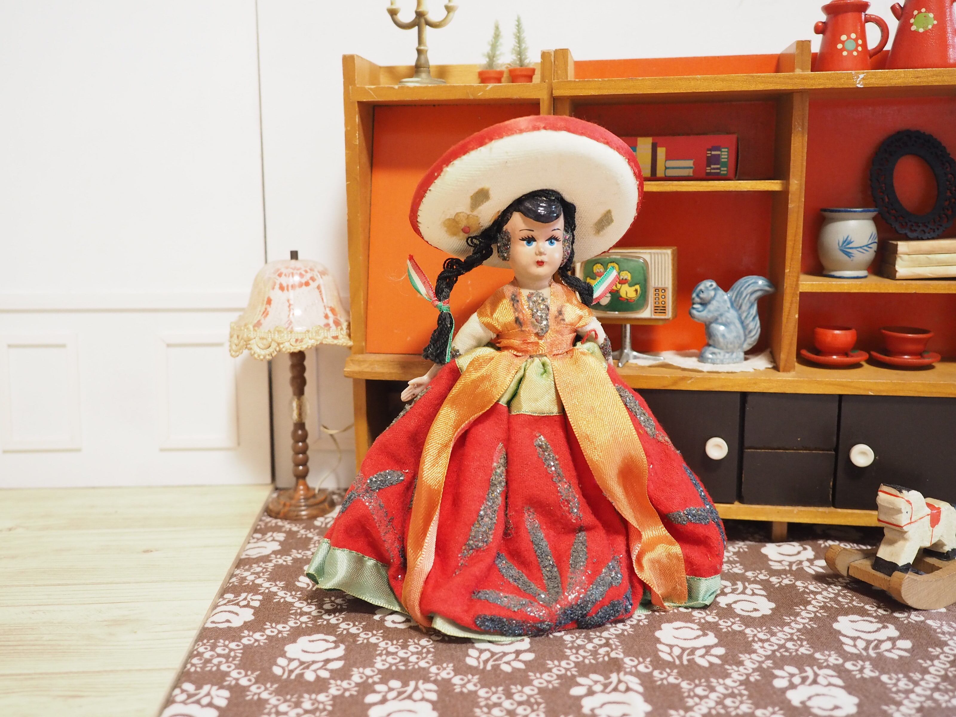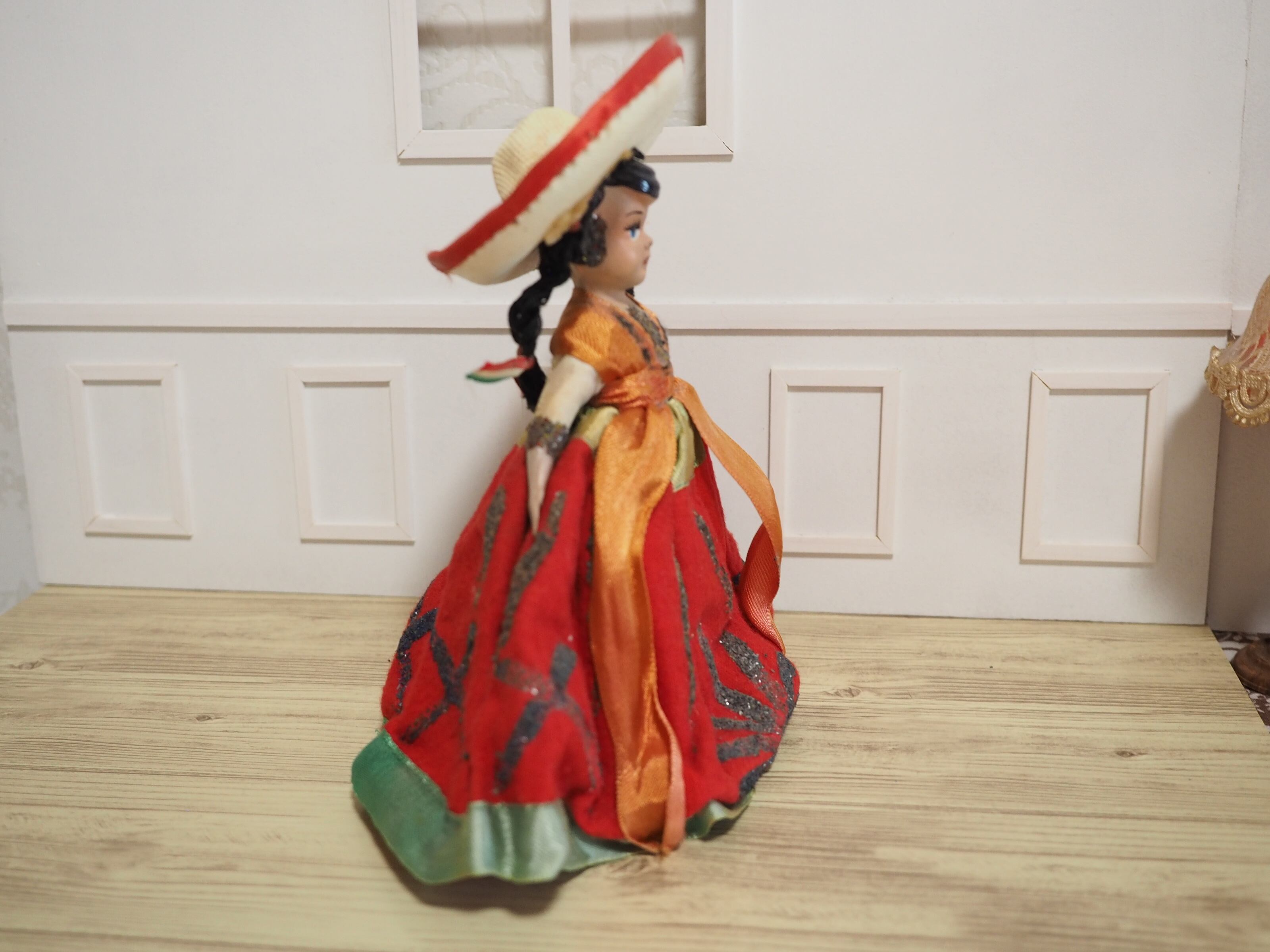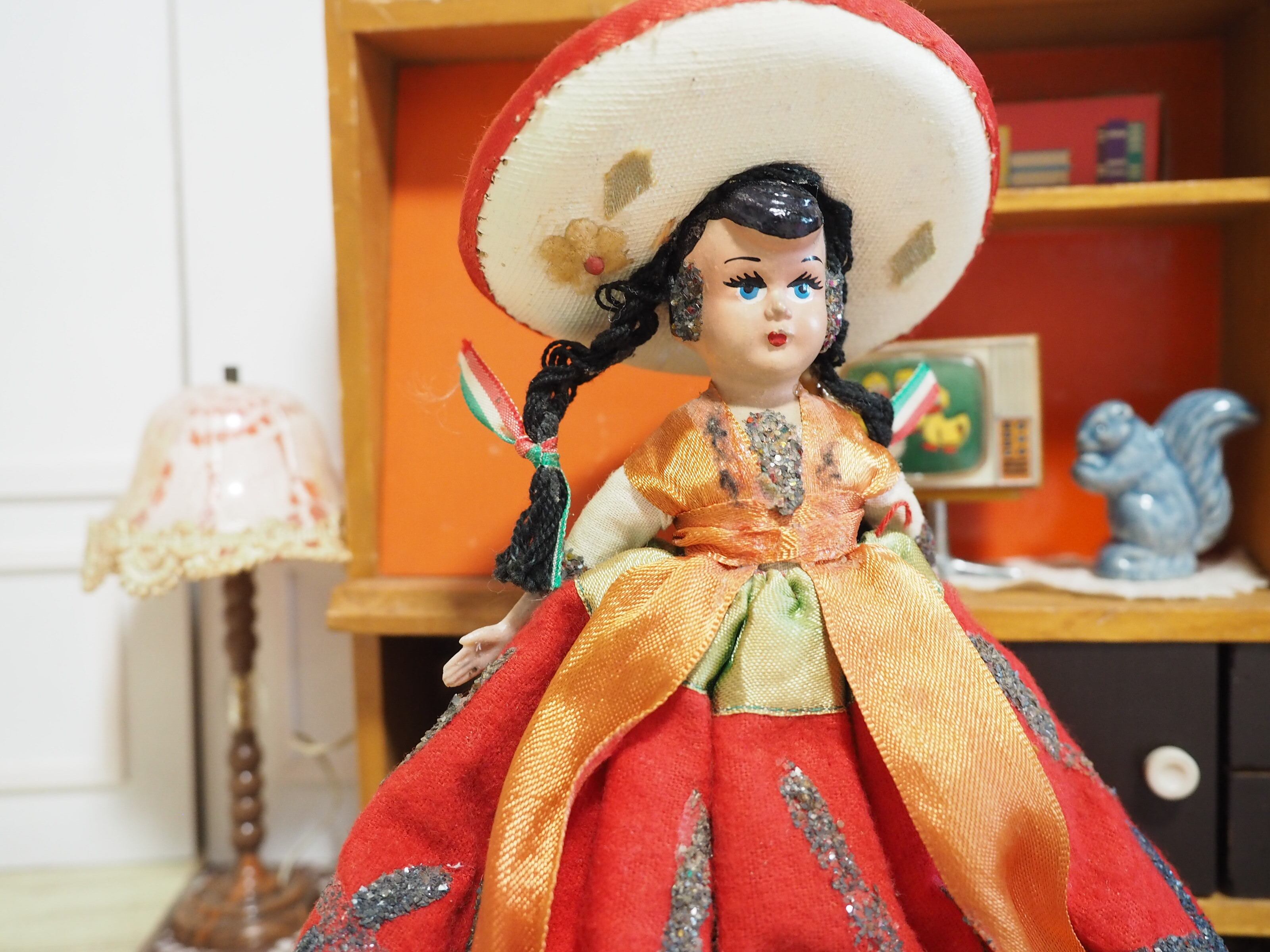 イタリア 大きな帽子 おさげの民族衣装ドール