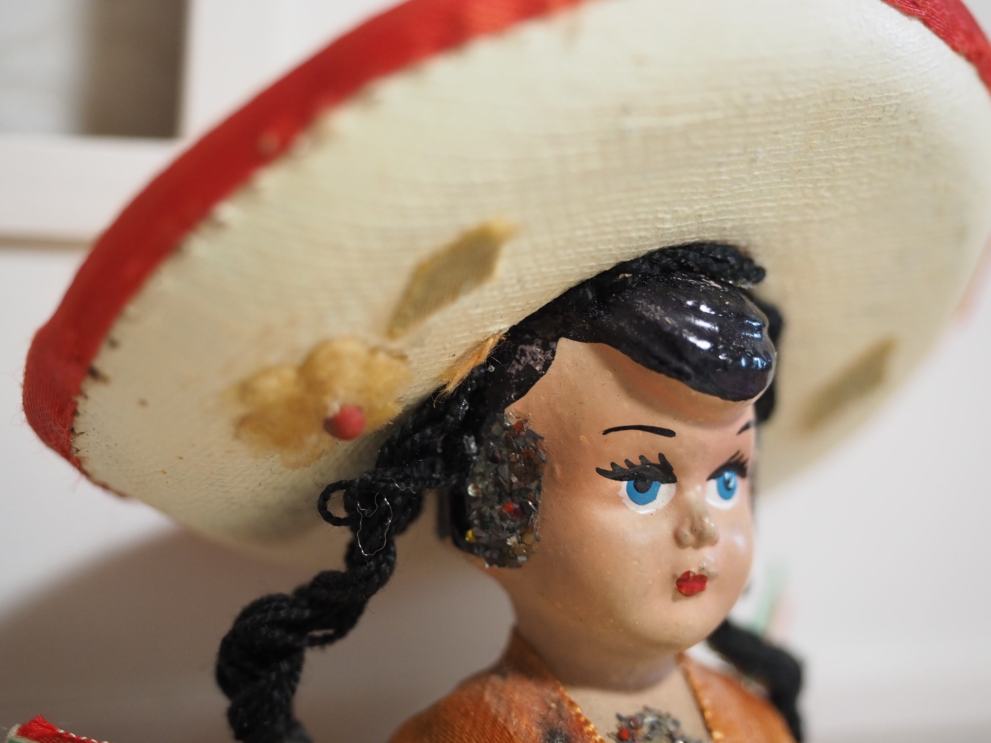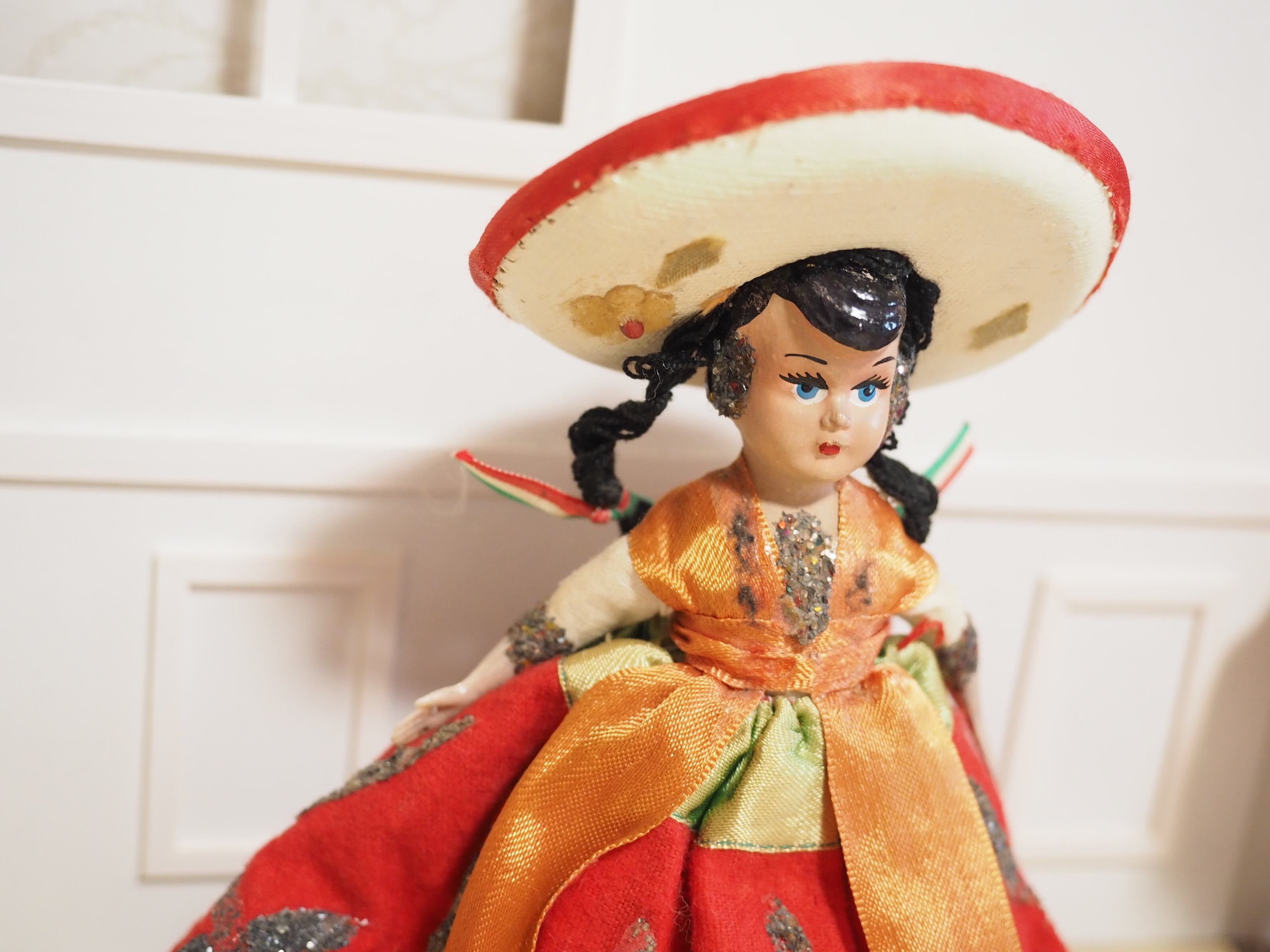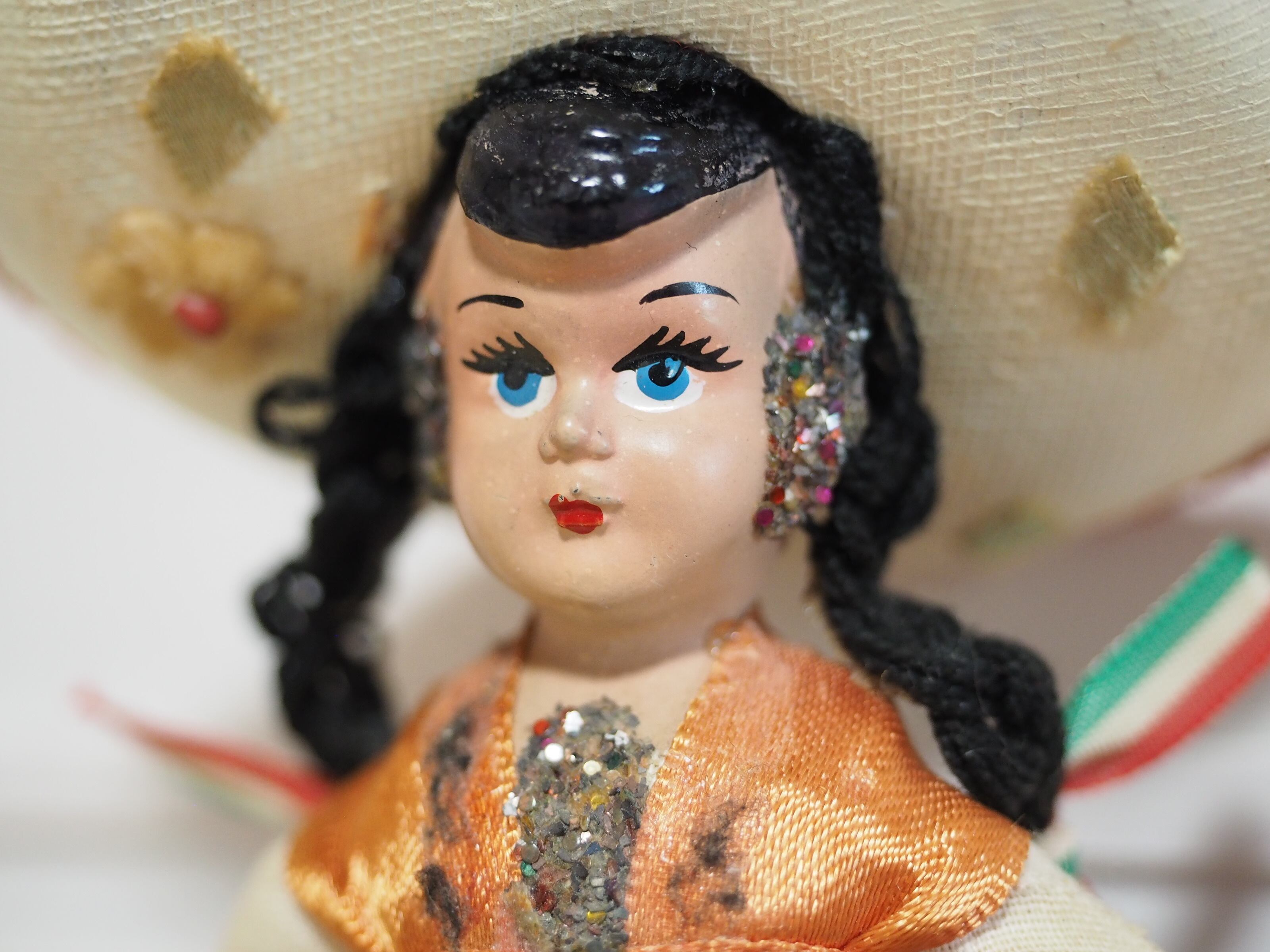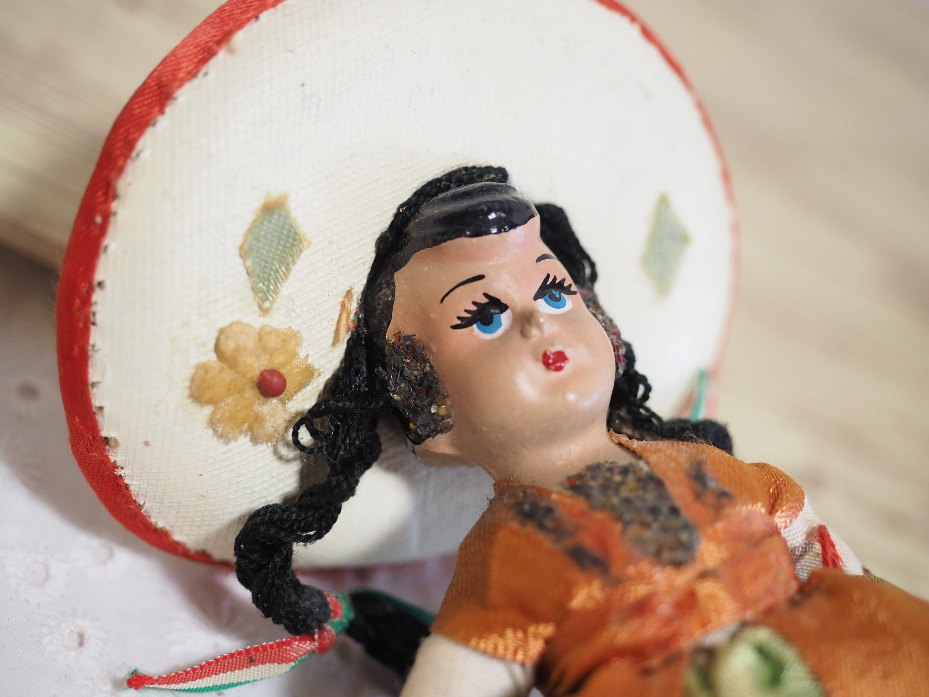 イタリア 大きな帽子 おさげの民族衣装ドール