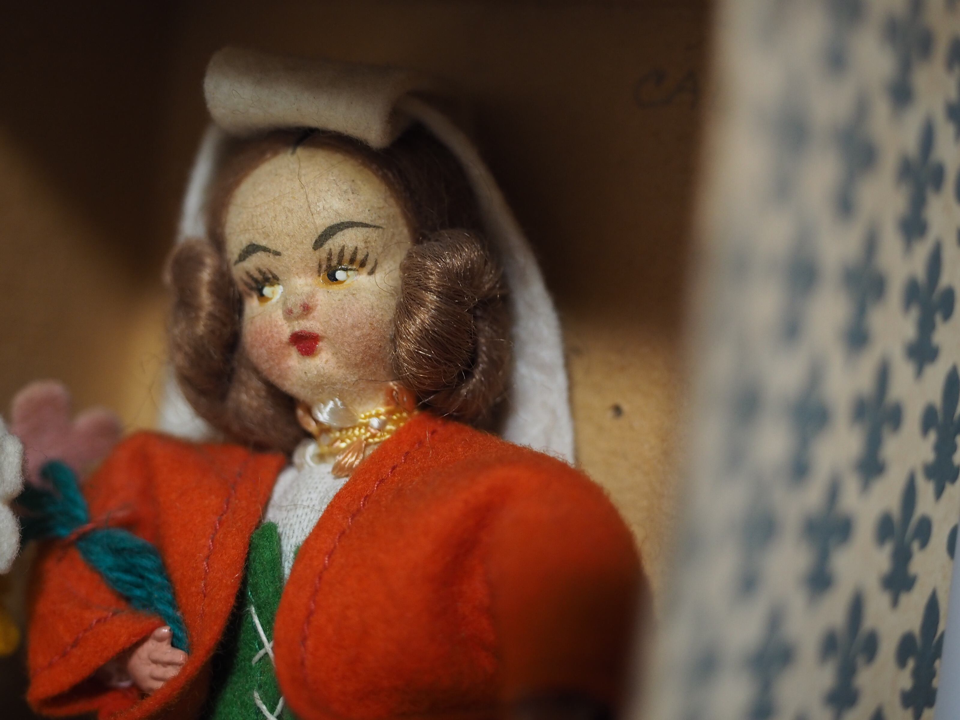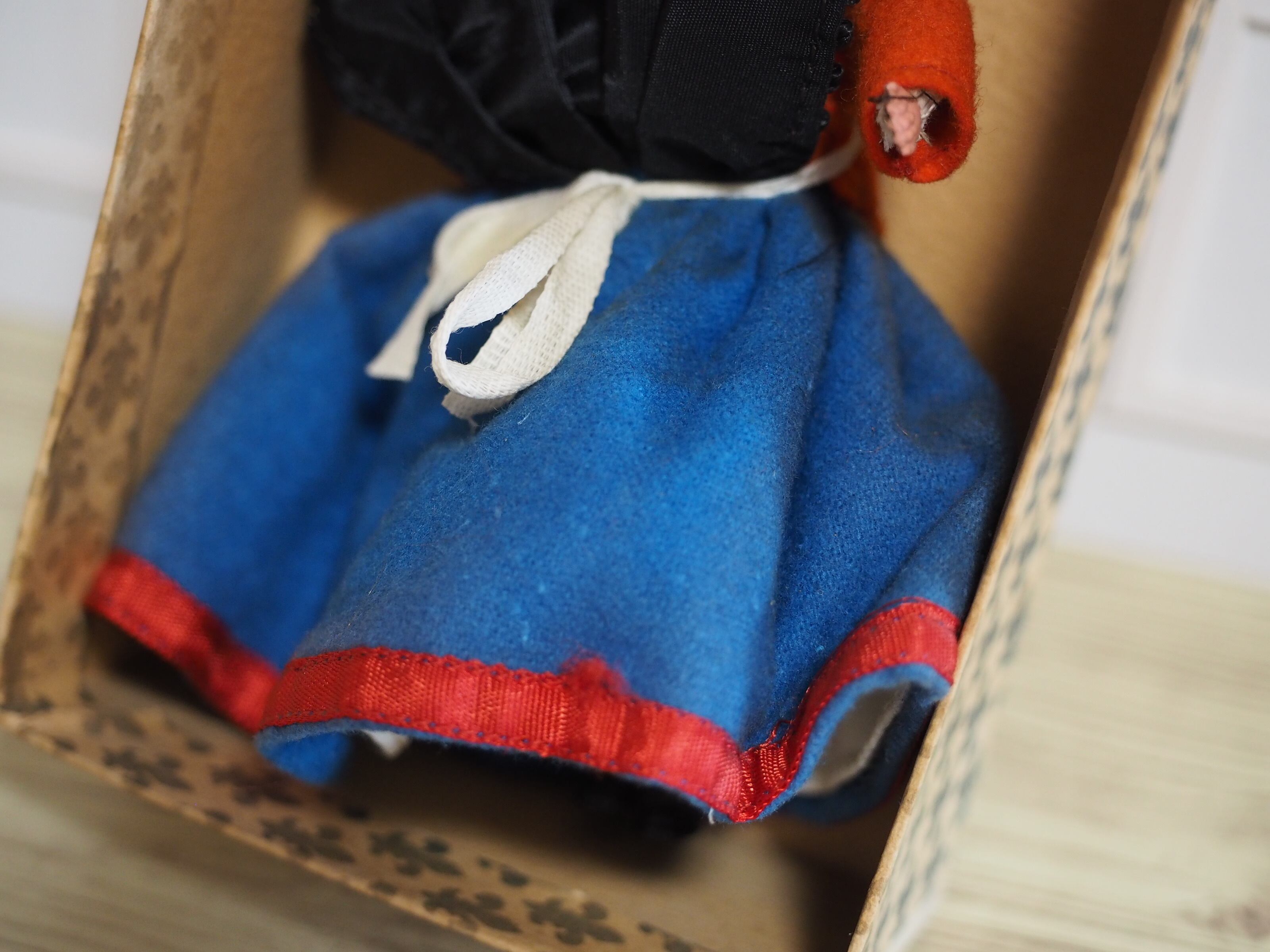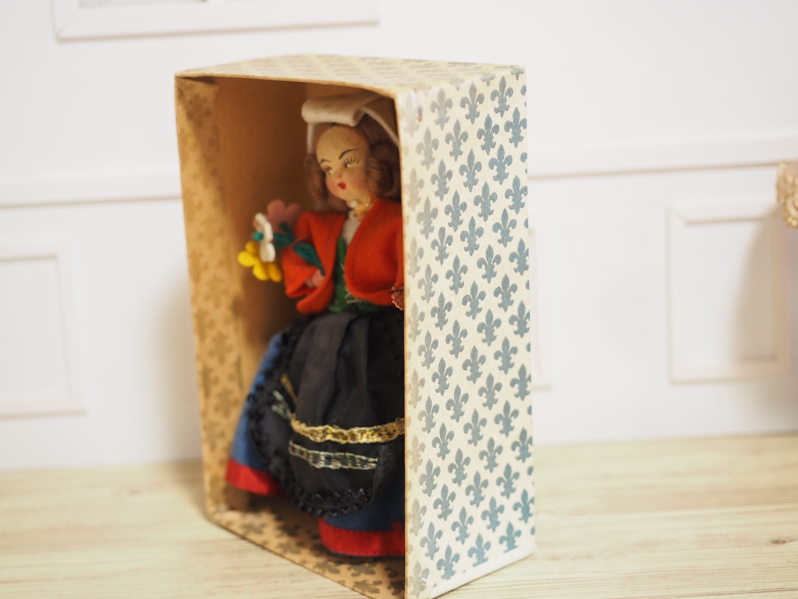 小さなお人形と箱もビンテージな風合いでかわいらしく、このまま飾って頂いても素敵です。