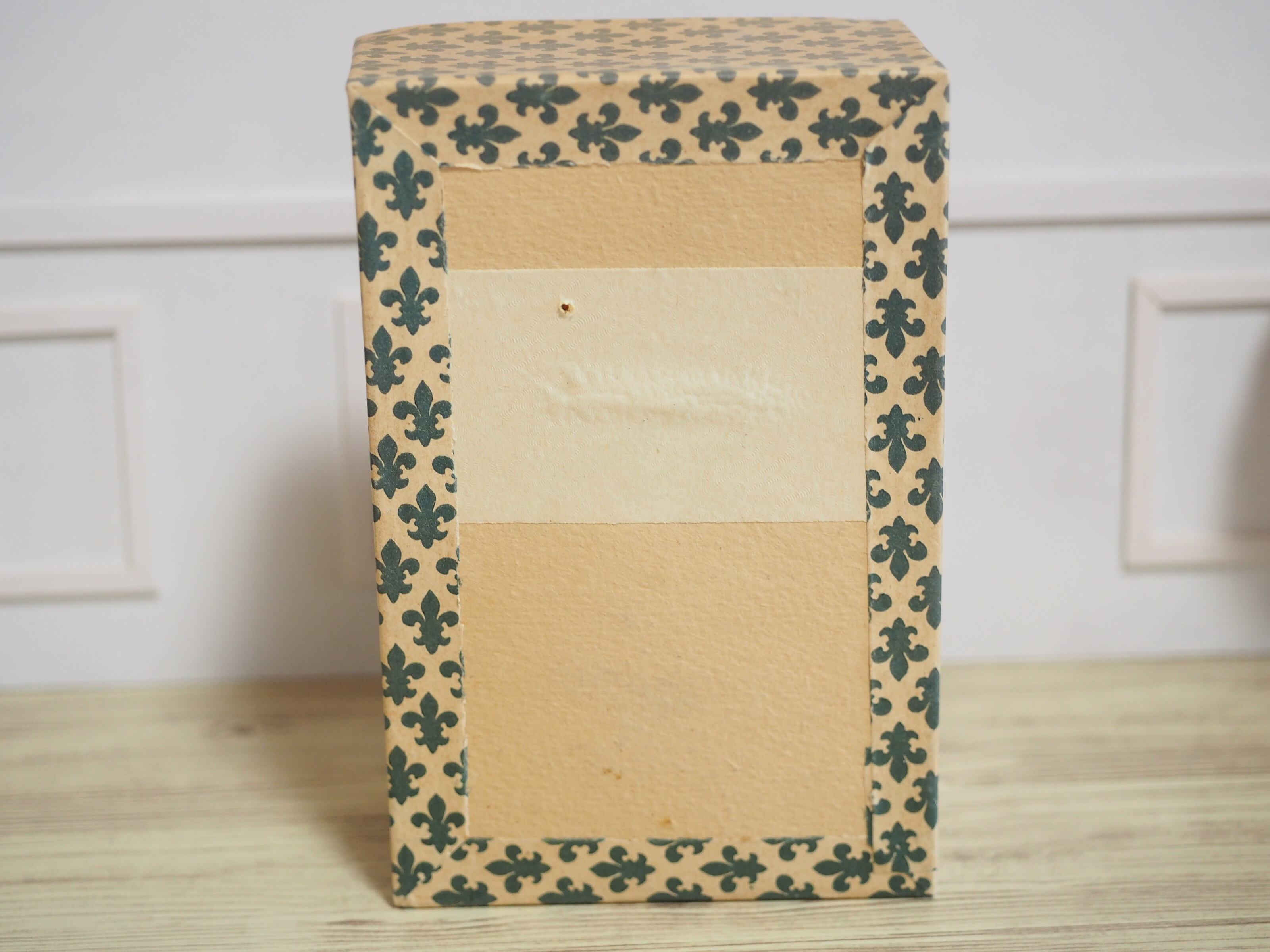 箱は百合の紋章、元々は蓋もあったようなのですが付属していません。色あせあり。