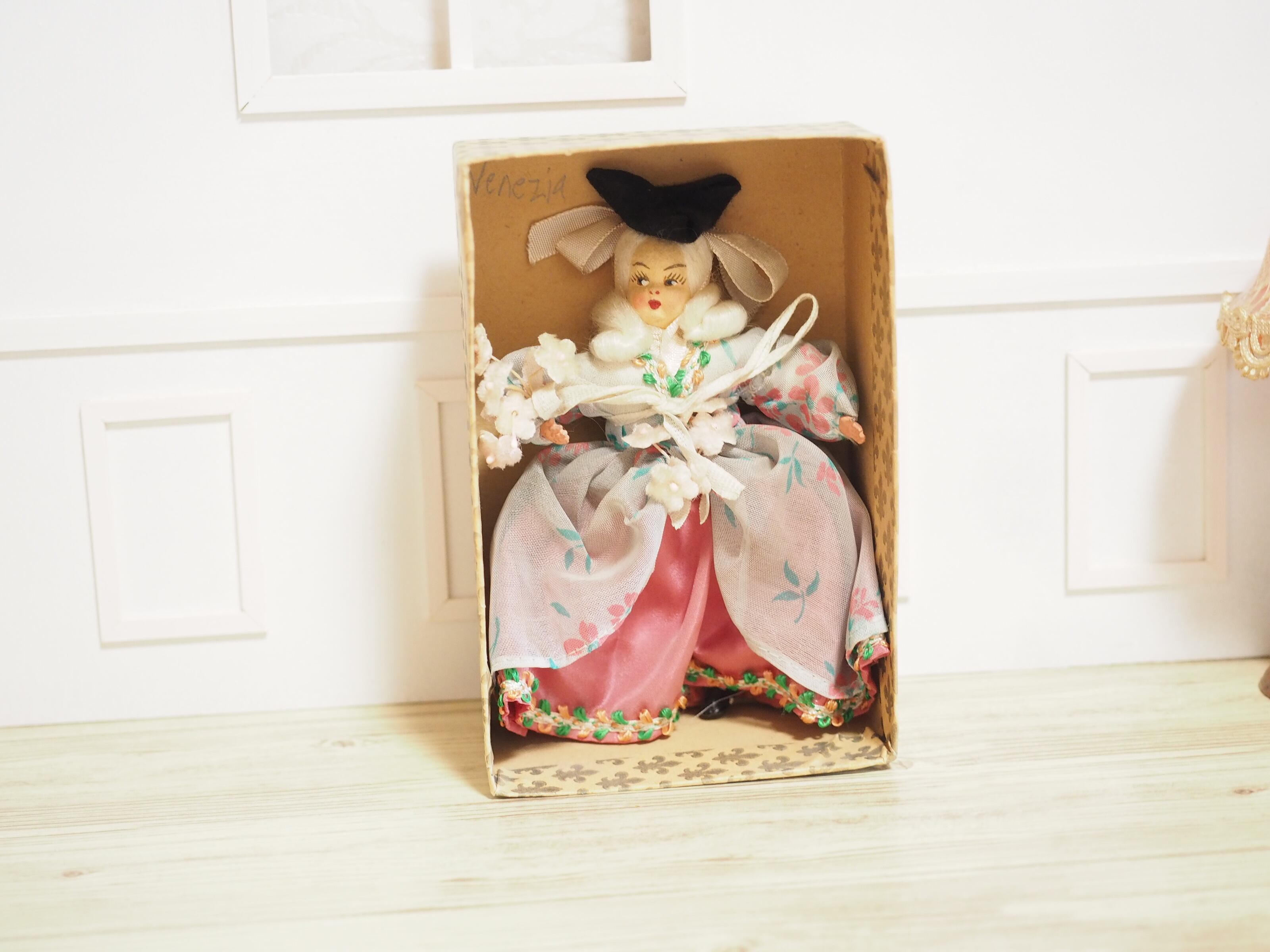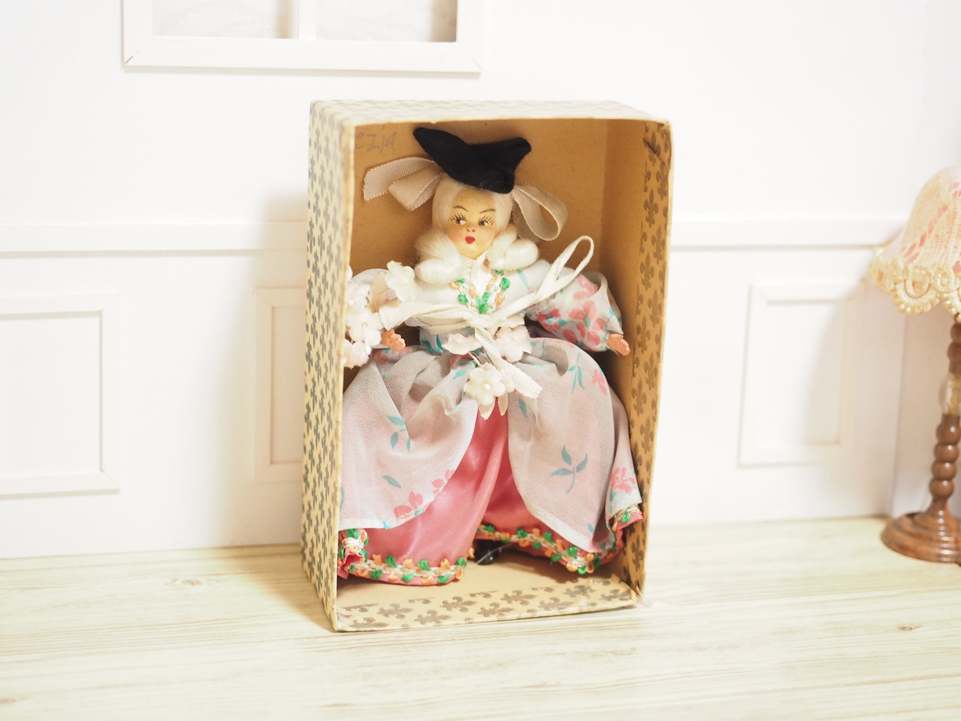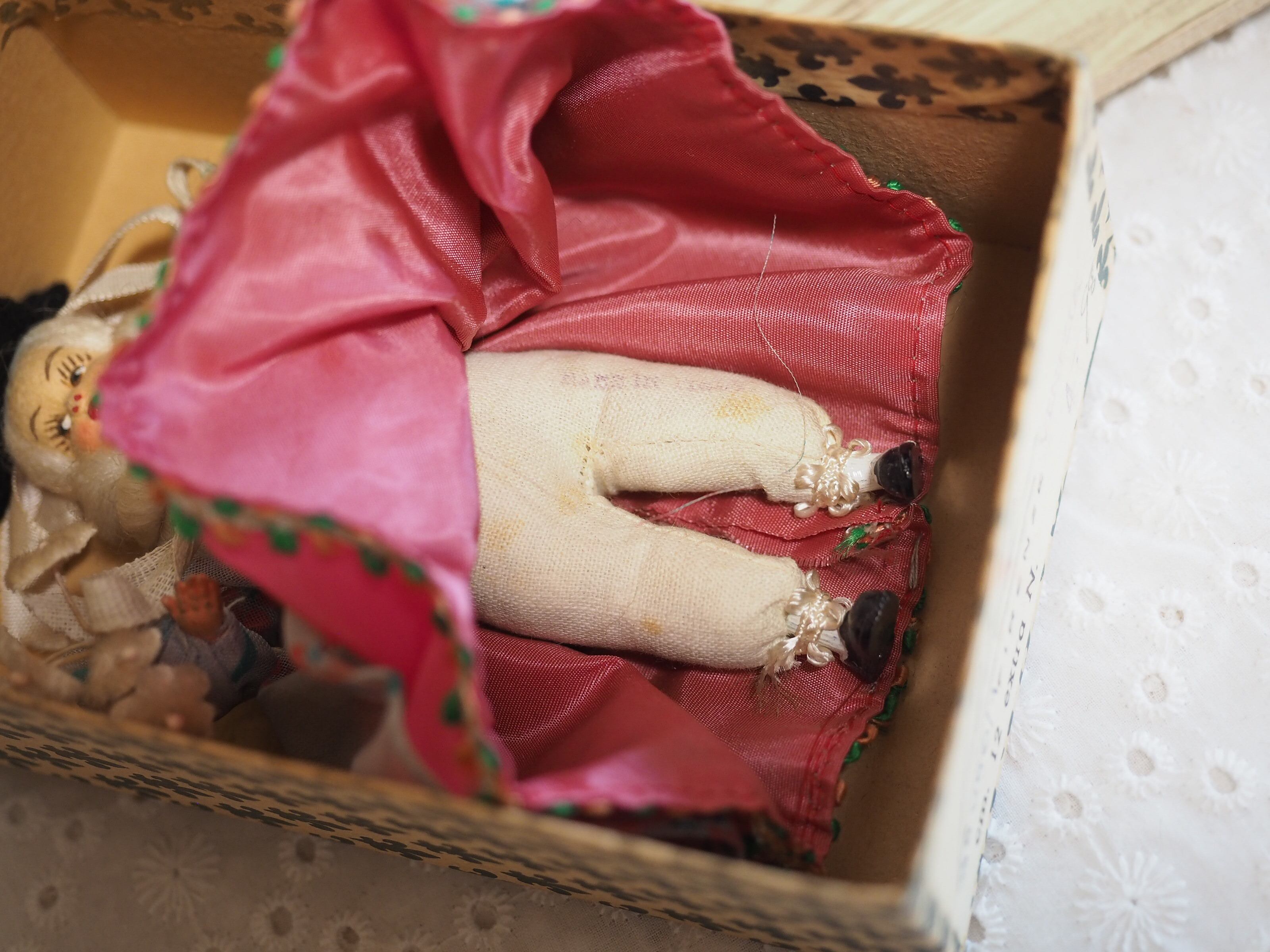 小さなお人形と箱もビンテージな風合いでかわいらしく、このまま飾って頂いても素敵です。
