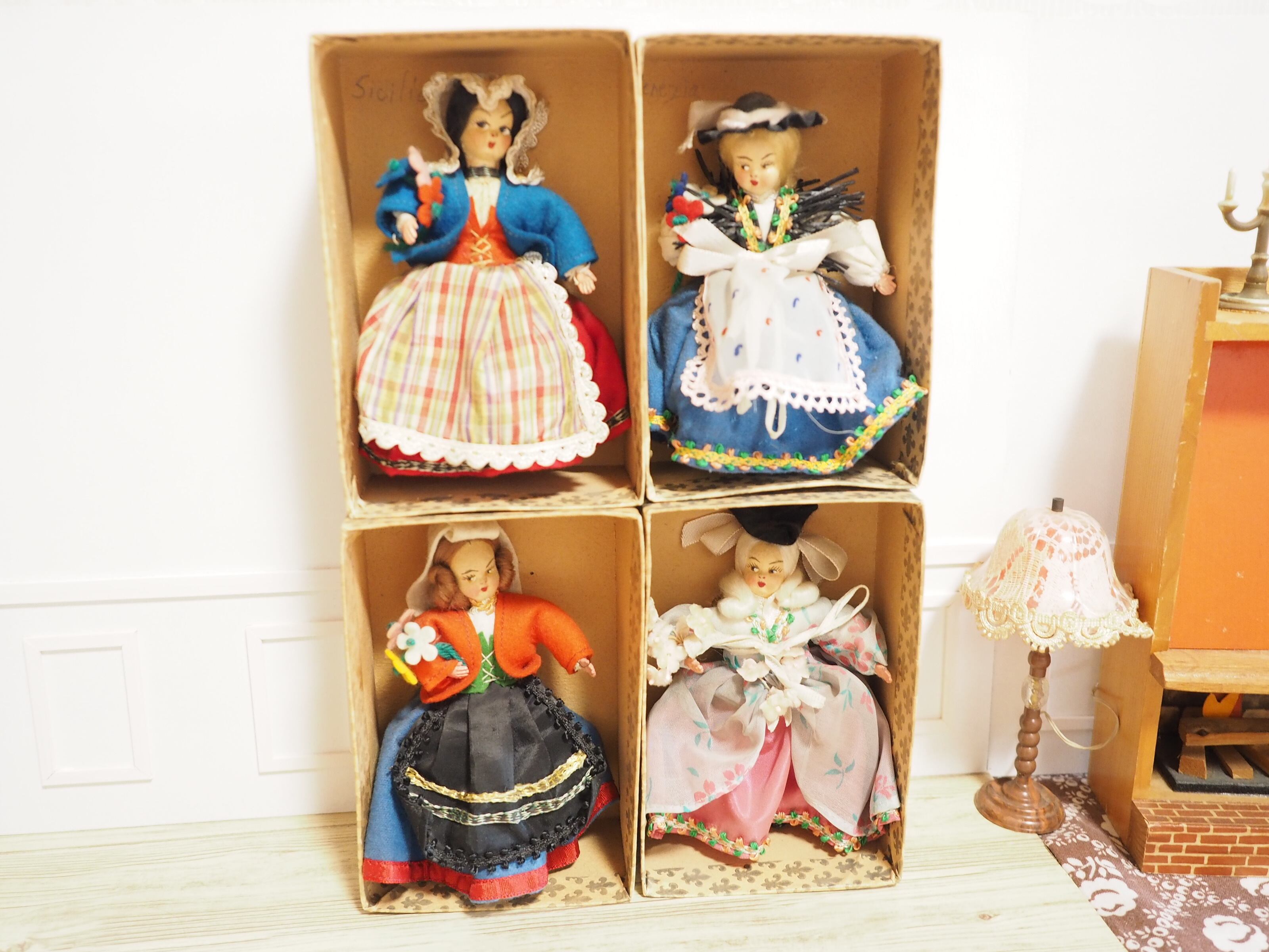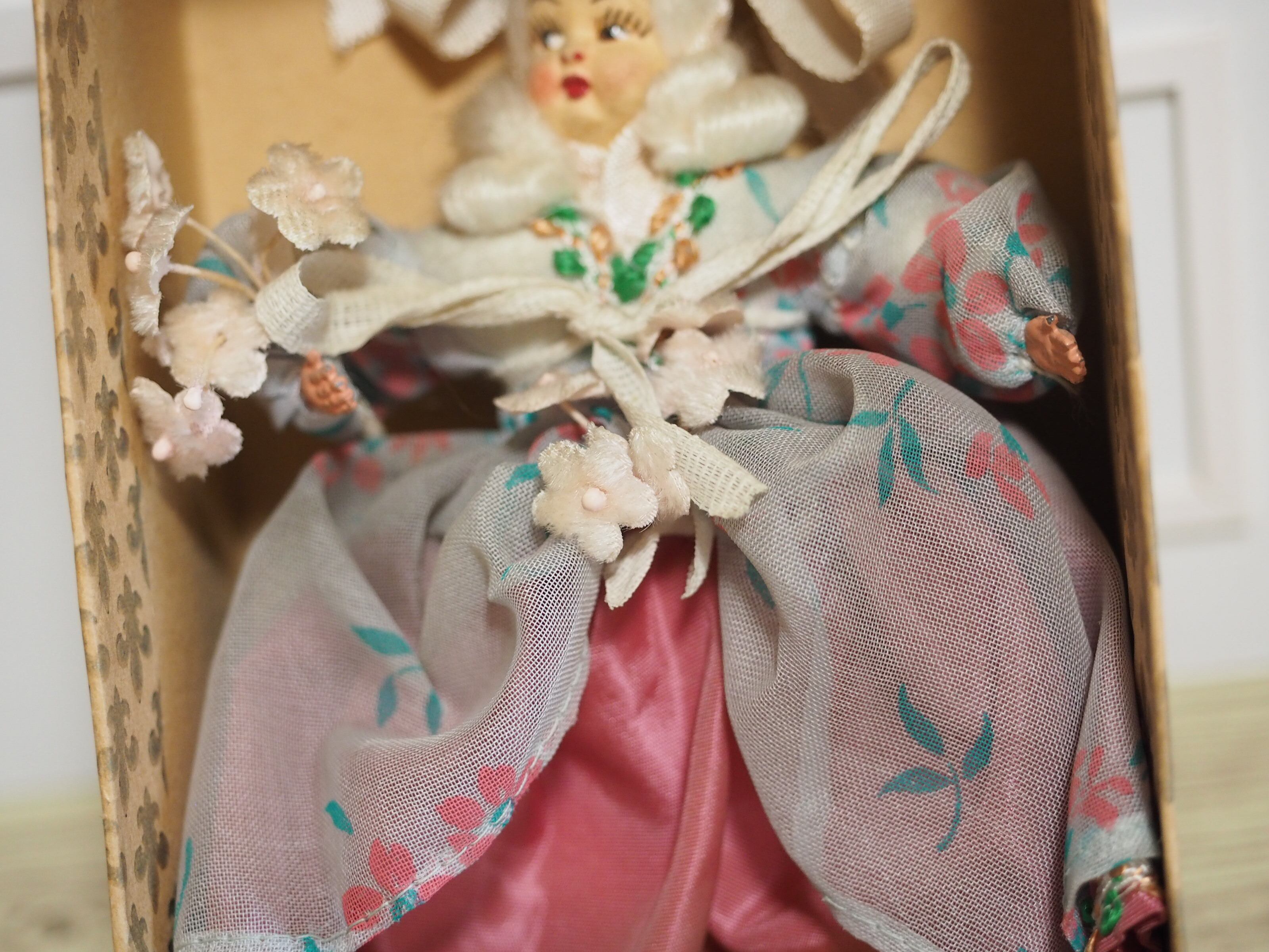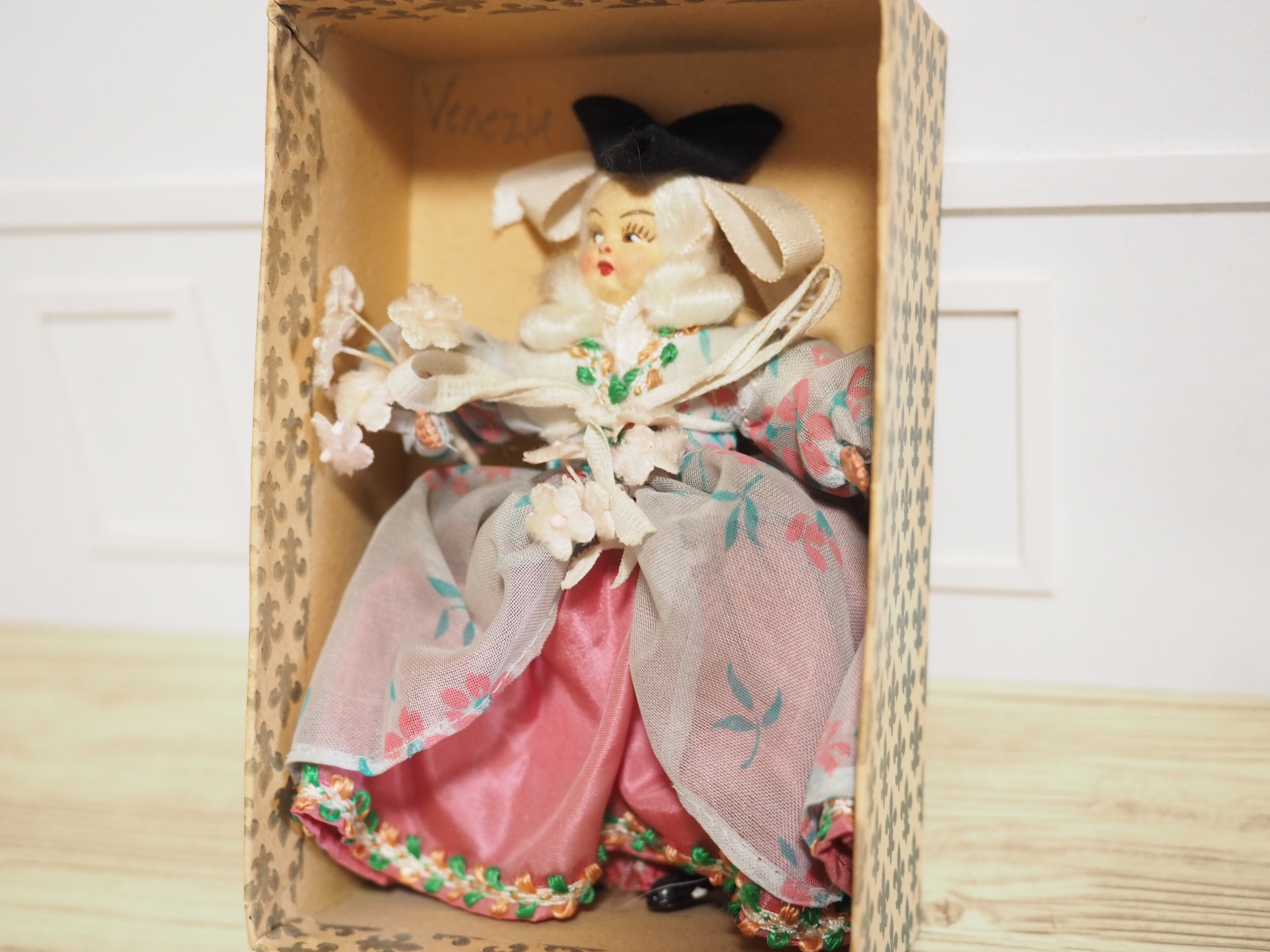 小さなお人形と箱もビンテージな風合いでかわいらしく、このまま飾って頂いても素敵です。